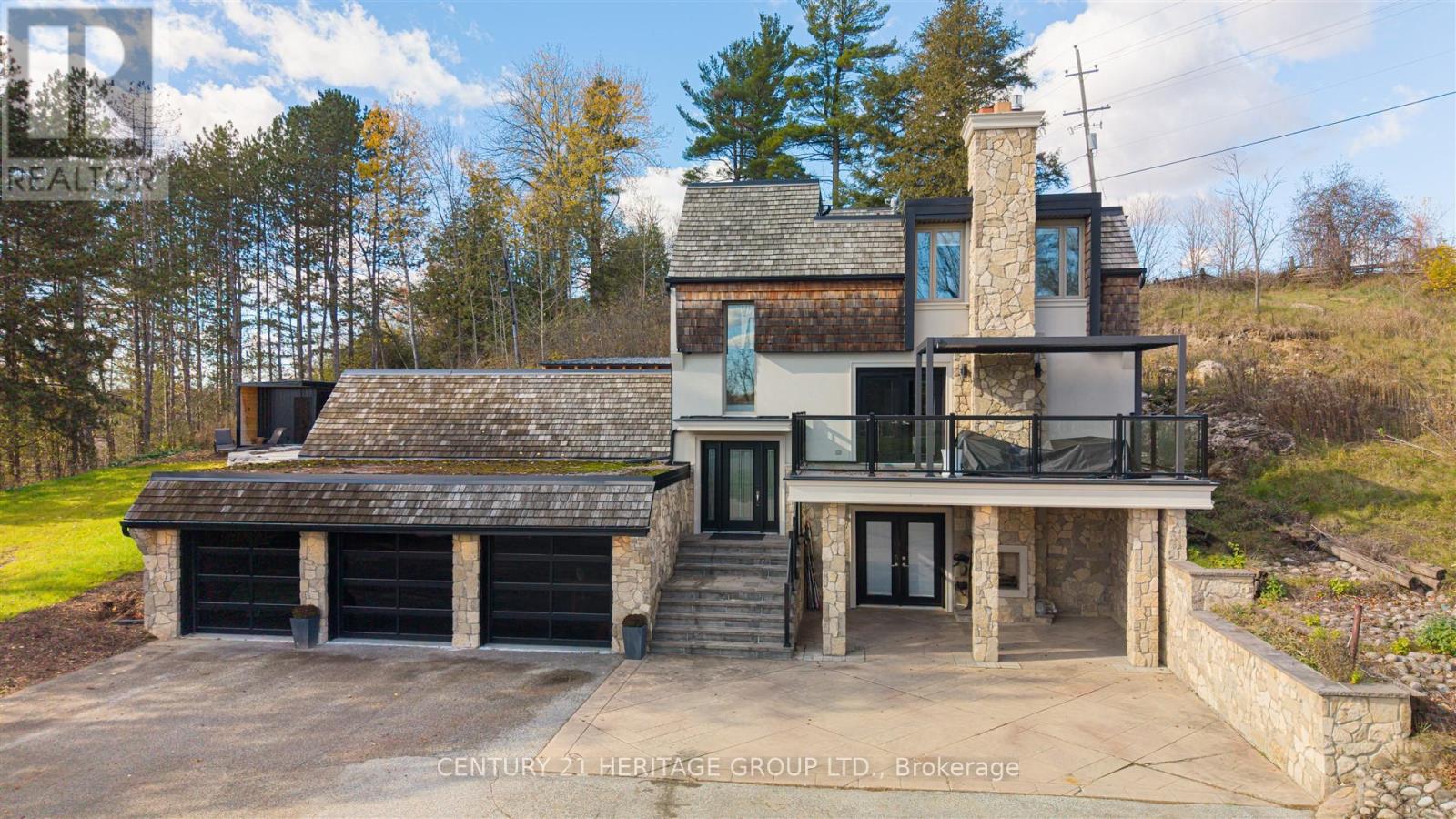 Perched high atop a scenic hill with breathtaking four-season panoramic countryside views, this exceptional residence sits on a private 2.35-acre parcel and has been fully renovated inside and out with top-tier finishes. Offering 5 bedrooms and a 3-car garage, the home is ideally suited for multi-generational living and those seeking space, privacy, and refined comfort. Thoughtfully designed, the home features 7-inch wide plank flooring, two chef-inspired kitchens complete with built-in appliances, quartz countertops, and oversized breakfast islands, and an abundance of natural light throughout. The stunning primary retreat boasts floor-to-ceiling windows, custom built-in and walk-in closets, and a spa-inspired five-piece ensuite with heated floors, glass shower, floating vanities, and elegant finishes. Additional highlights include multiple fireplaces, solid interior doors, wrought iron railings, smooth ceilings with pot lighting, exposed natural beams, and multiple walkouts leading to expansive outdoor spaces, including a glass-railed balcony ideal for enjoying the views. Wellness features include an indoor sauna, while major upgrades such as a newer roof, windows, and garage doors provide peace of mind. Conveniently located minutes to Highway 404, Warden Avenue, and all amenities, this is a rare opportunity to own a turnkey luxury estate combining privacy, lifestyle, and accessibility. Custom chicken coop featuring a secure indoor roost, automatic door for easy access, and attached playpen with built-in feeders-perfectly set up for convenient, low-maintenance backyard poultry keeping (id:4555)