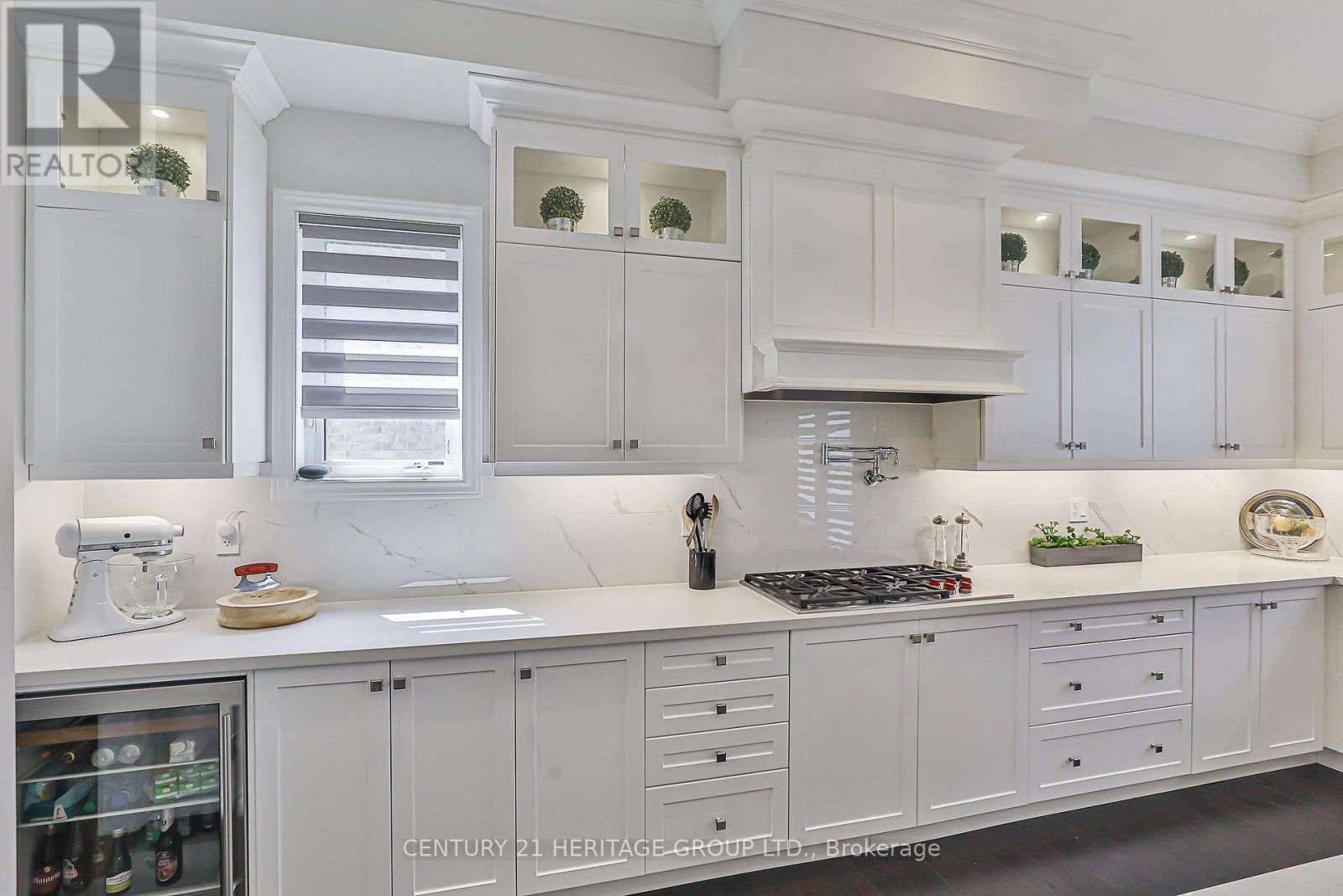 Luxury awaits in prestigious Sharon Village! Quality built estate home boasts over 3850 square feet of upscale living. With a rare three car garage and finished walk-out basement, this home is located on an oversized premium pie-shaped lot overlooking community schools, parks and other estate homes. With 10' ceilings on the main floor, and 9' ceilings upstairs, this home boasts 5 bedrooms and 5 washrooms. The incredible chef's kitchen is a show-stopper, featuring Subzero and Wolf appliances, potfiller, drawer microwave and beverage centre. Quartz counters, gleaming backsplash and an expansive breakfast bar are deluxe. With hand scraped wood floors throughout, incredible chandeliers sparkle in virtually every room, including the numerous walk in closets. The open concept family room features a gas fireplace, custom millwork and a waffle ceiling with potlights. Wow your guests with the stunning 2-story, open to above dining room with floor to ceiling windows. Upstairs, retreat to the serenity of the primary suite with elegant tray ceiling, expansive double walk in closets and a spa-inspired five piece ensuite.3 well-appointed bedrooms are located upstairs, while a 5th bright bedroom is in the finished lower level. Double doors open onto a brand new (2024) massive composite deck with entertaining, eating and food prep zones. Outdoor living at its best! Watch the little ones walk to school from the comfort of your back deck. A double staircase to ground level maximizes the expansive, flat backyard, and creates a second, shady patio area outside the walkout basement doors. There is also a convenient door to the backyard from the garage. Sharon is one of York Region's most desirable communities, with easy access to the 404, GO station, kilometers of trails, and numerous parks and recreational amenities. Shops and services are also nearby; this is a truly exceptional property to make your next home. (id:4555)