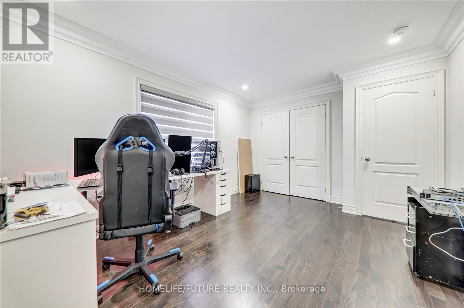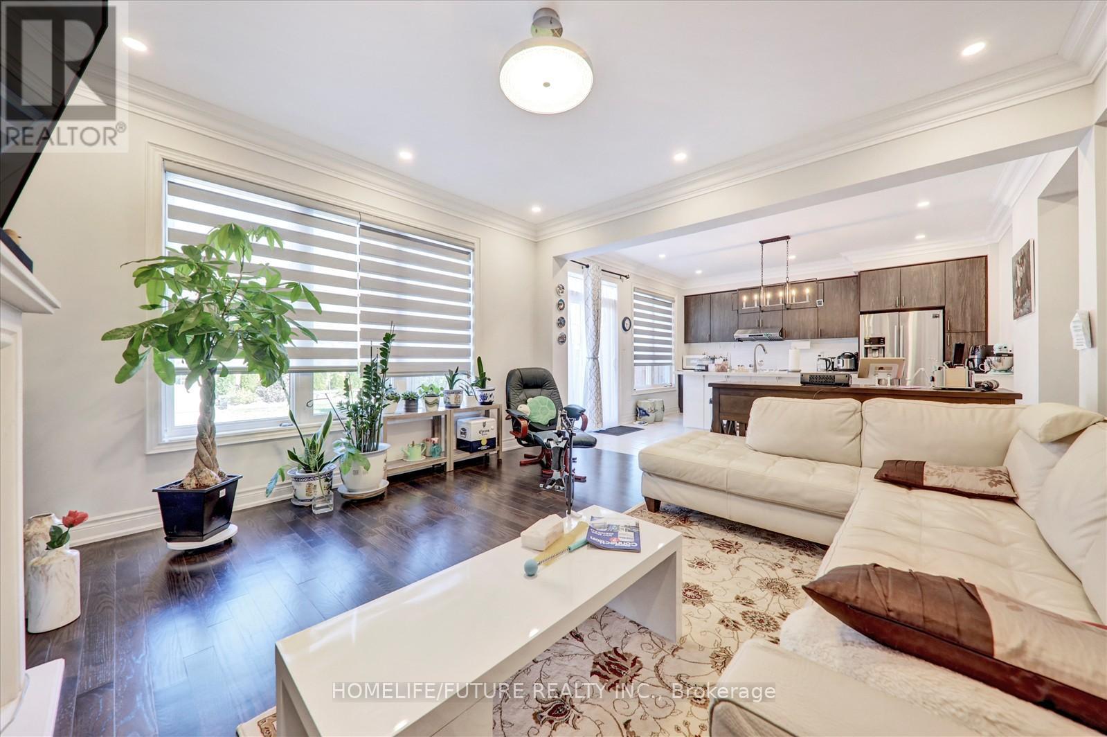 Nestled in a highly sought-after, family-friendly neighbourhood, this meticulously maintained 4-bedroom + loft home offers 3,110 sq. ft. of living space on a rare oversized pie-shaped lot. The property features stunning stone landscaping and beautiful curb appeal. The open-concept main floor boasts a formal dining area and a gourmet kitchen with quartz countertops and a walkout to a sun-filled backyard. The inviting family room showcases a cozy gas fireplace, while the bonus main-floor office with a large picture window is ideal for working from home. Hardwood floors, crown moulding, wainscoting, and pot lights are found throughout. The private, fully fenced yard is perfect for relaxing or entertaining family and friends. Located close to all major amenities, including Costco, movie theatres, Upper Canada Mall, restaurants, shopping plazas, and with easy access to Highways 404 and 400. (id:4555)