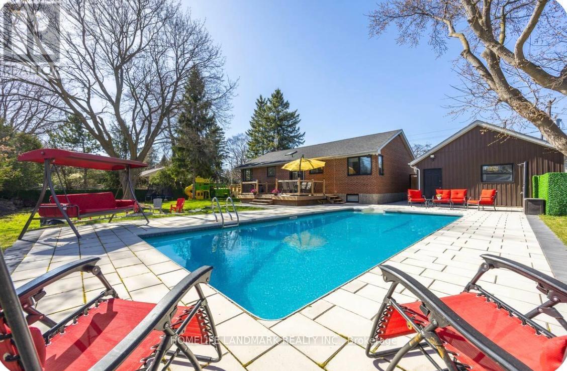 This exquisitely renovated home offers a perfect blend of modern luxury and timeless elegance, ideally situated on a rare and vast 122 x 123 ft lot. Every detail has been thoughtfully curated from the rich hardwood flooring on the main level, the stunning 36x36 tile flooring throughout the foyer and kitchen to the sleek laminate in the fully finished basement. Freshly painted interiors are complemented by smooth ceilings and recessed pot lights, creating a bright and sophisticated ambiance throughout. The custom-designed kitchen features under-mount lighting, illuminated ceiling, stainless steel appliances and premium finishes, while the spa-inspired bathrooms on the main floor have been completely reimagined for comfort and style. Additional upgrades include all-new electrical wiring, built-in speakers throughout the home and backyard, a cutting-edge surveillance camera system, zebra blinds with partial automation, and a custom-organized closet for enhanced functionality. Step outside into your own private resort. The professionally landscaped grounds are enhanced by elegant interlock stonework in both the front and backyard. A fully renovated pool with a new liner and ambient lighting serves as the centerpiece of this outdoor sanctuary perfect for entertaining or unwinding in total privacy with playing green space or just sitting back on the deck for a morning coffee. Ideally located just minutes from the GO Train and Highway 404, and within walking distance to shops, parks, and schools. (id:4555)