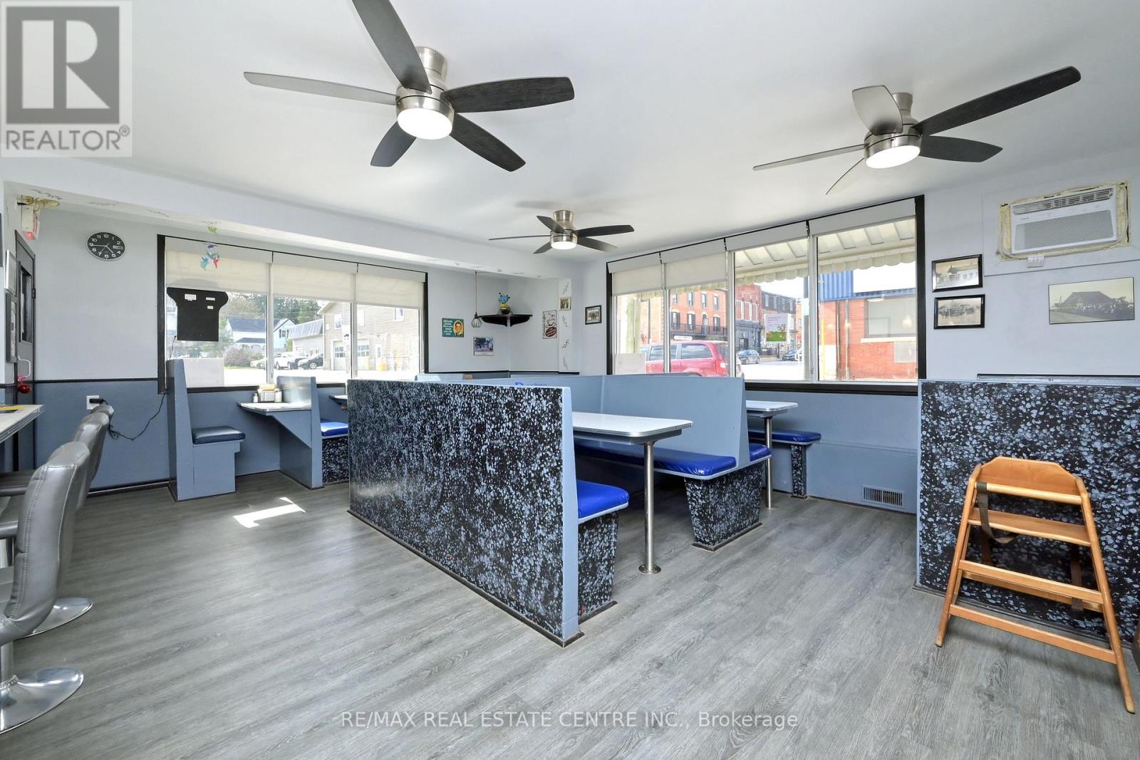 Excellent opportunity to be your own boss in this multi use commercial/residential building. High profile location on busy Main Street Grand Valley. Bring your ideas and imagination. Ideal for laundry, restaurant, retail store, gym and so much more. Lots of parking on street. Easy access to major highways. Previously operated as a Family Diner but easily adaptable to your specific needs and ideas. All restaurant equipment (on site) and chattels included. Upper level has two bedrooms and a 4 piece bath and laundry facilities. New furnace in december 2024. Small wired building in side yard was used for ice cream sales. Outside storage buildings. Main Floor features diner area, dining room, cook area and prep area and 2 -2 piece baths. Well maintained. Ideal set up for upper level living space to live and work from home. Private building parking (2). (id:4555)