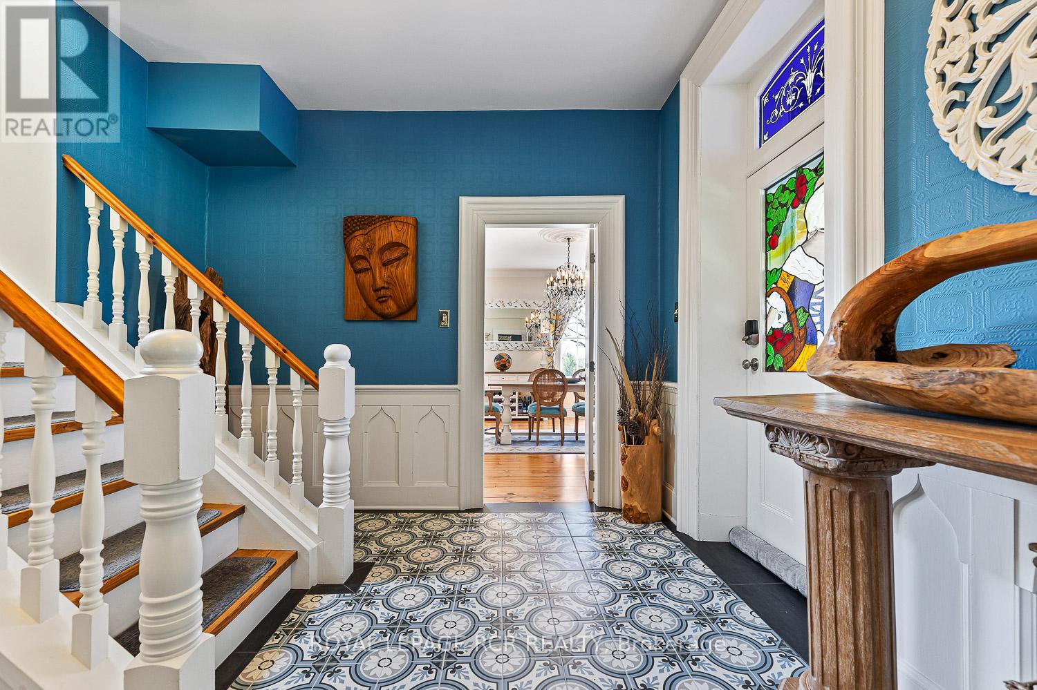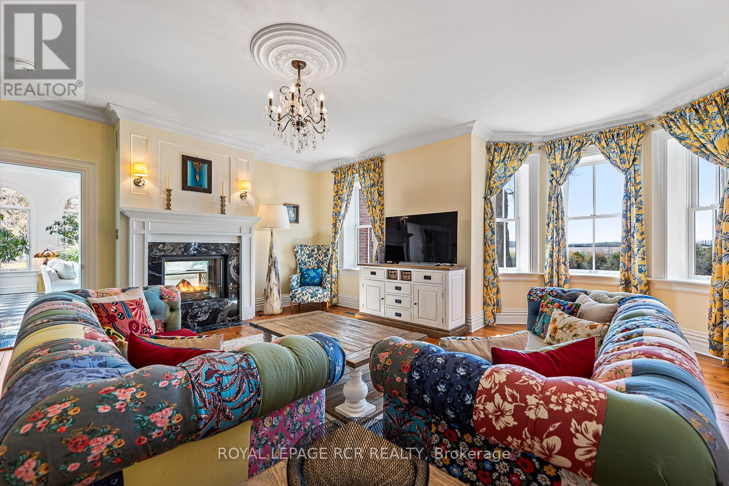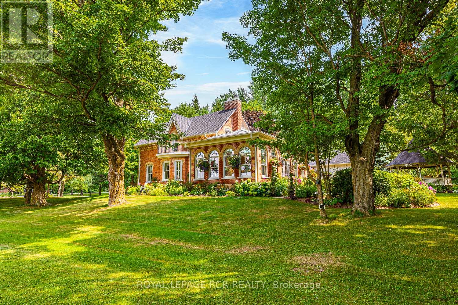 This beautiful historic country retreat sits on 9.3 pristine acres of stunning formal gardens, wildflower meadows, natural woodland, ponds, Grand River frontage, a fenced fruit and raised vegetable gardens as well as manicured trails to enable full enjoyment of this tranquil paradise. The main house built in 1890 offers 3,817 sqft of meticulously and luxuriously renovated living space, including a stunning 4 season 600 sqft sunroom addition providing wonderful views across the gardens and countryside beyond. A separate coach house, divided into 2 apartments, provides an additional 1,585 sqft of accommodation for multi-generational living or revenue potential. A geothermal ground source heat pump provides optimal heating and cooling to the main house, with additional underfloor heating to tiled areas for that sumptuous touch during the colder months. High-efficiency wood burning fireplaces provide the finishing touch of home comfort luxury. Several outbuildings include a 1680 sqft 3 car garage with car lift, EV charger and an attached heated studio/workshop. A separate 1,150 sqft barn provides additional workshop and storage, whilst a converted silo with spiral staircase and a rooftop viewing platform is the ultimate spot for those sundowner cocktails amongst the treetops away from it all. All this just a few minutes from the quaint town of Grand Valley with all the essentials of daily life, 60 minutes to downtown Brampton, 60 minutes to Pearson and 15 minutes to Orangeville. Please see the attached feature sheet and video for all this stunning property has to offer. * Please note in Description and Measurement to separate the main house from the coach house I have used the words In Between and Ground as the floor levels* (id:4555)