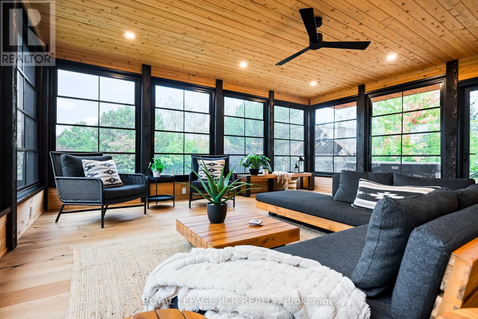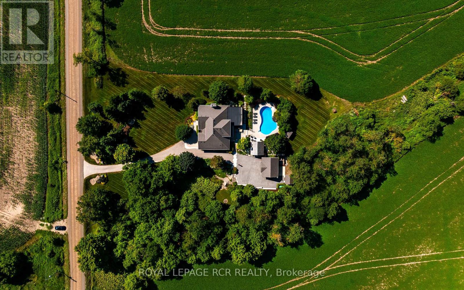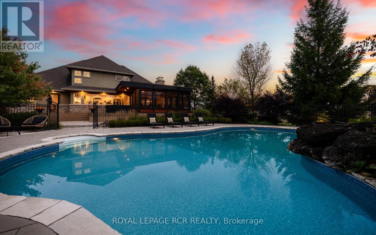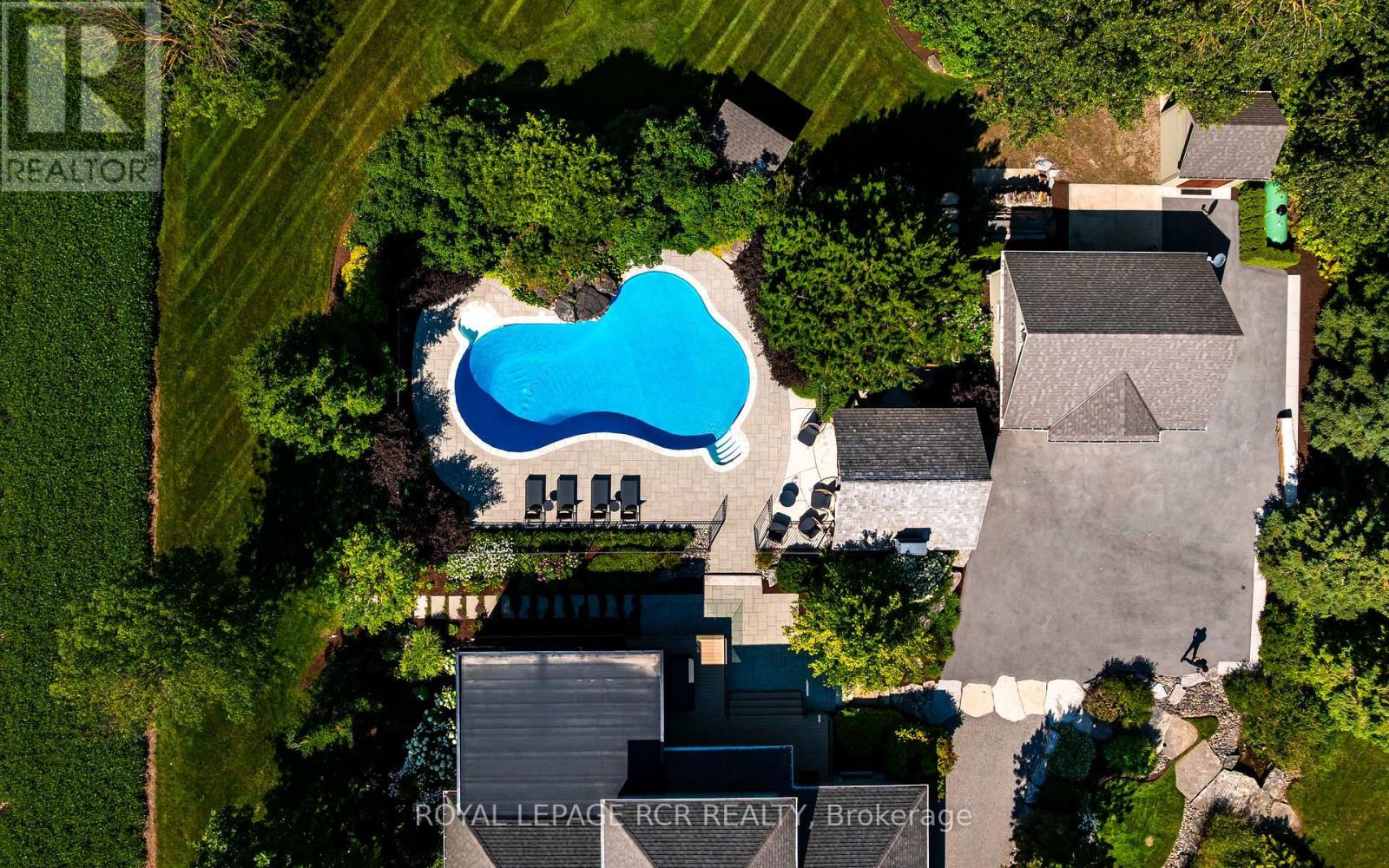 Set on 1.33 acres of private, thoughtfully landscaped grounds, this custom-built home is truly one-of-a-kind. The main floor offers a light-filled, open concept design with engineered hardwood floors throughout. The kitchen itself is a showpiece with counter-to-ceiling windows overlooking the backyard. It's complete with quartz waterfall countertops, custom cabinetry, high-end appliances, a spacious island, a butler's pantry, and a glass-panel wine room for the wine enthusiasts. The dining area flows into the living room with 17-foot ceilings and a limestone wood-burning fireplace (paired with a built-in elevator that delivers firewood right to your living space). The recent addition of a three-season screened room creates a seamless transition outdoors. The custom laundry room with built-in drying drawers adds to the main levels thoughtful design. Moving upstairs, the primary suite includes a walk-in closet and a beautiful ensuite, while the two additional bedrooms share an updated 4-piece bathroom. The finished lower level provides even more living space, has in-floor heating, two large bedrooms, a full bathroom, and an expansive recreation room ideal for family or guests. Take a step outside and entertain in the cedar cabana with built-in BBQ, or splash into the inground pool, or relax in the hot tub, or cozy up beside the propane fireplace. With a hydraulic lift, elevator to loft storage, and its very own built-in retractable bar, the detached workshop truly earns the title 'The Ultimate Mancave'. Surrounded by mature gardens and featuring a carefully updated, meticulously maintained indoors, this property has been loved in every way and is ready to welcome its new owners. (id:4555)