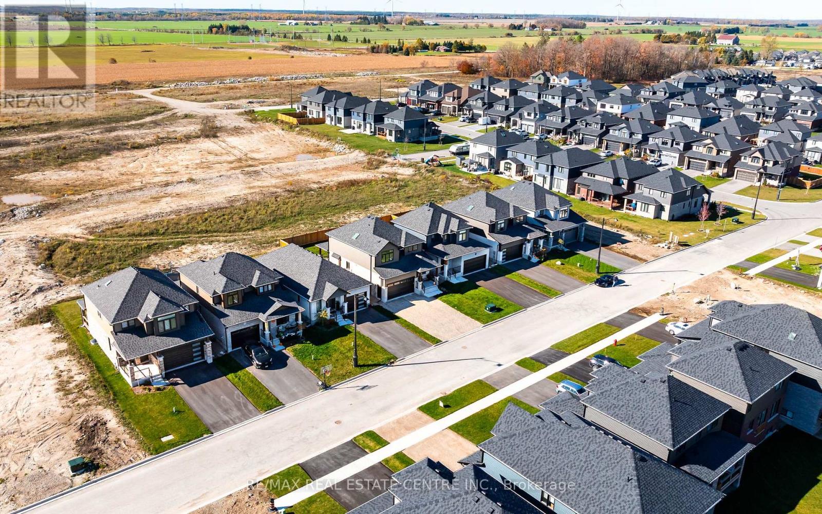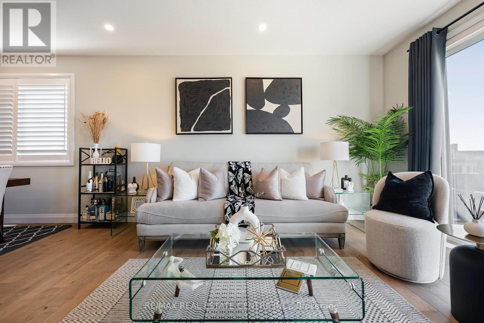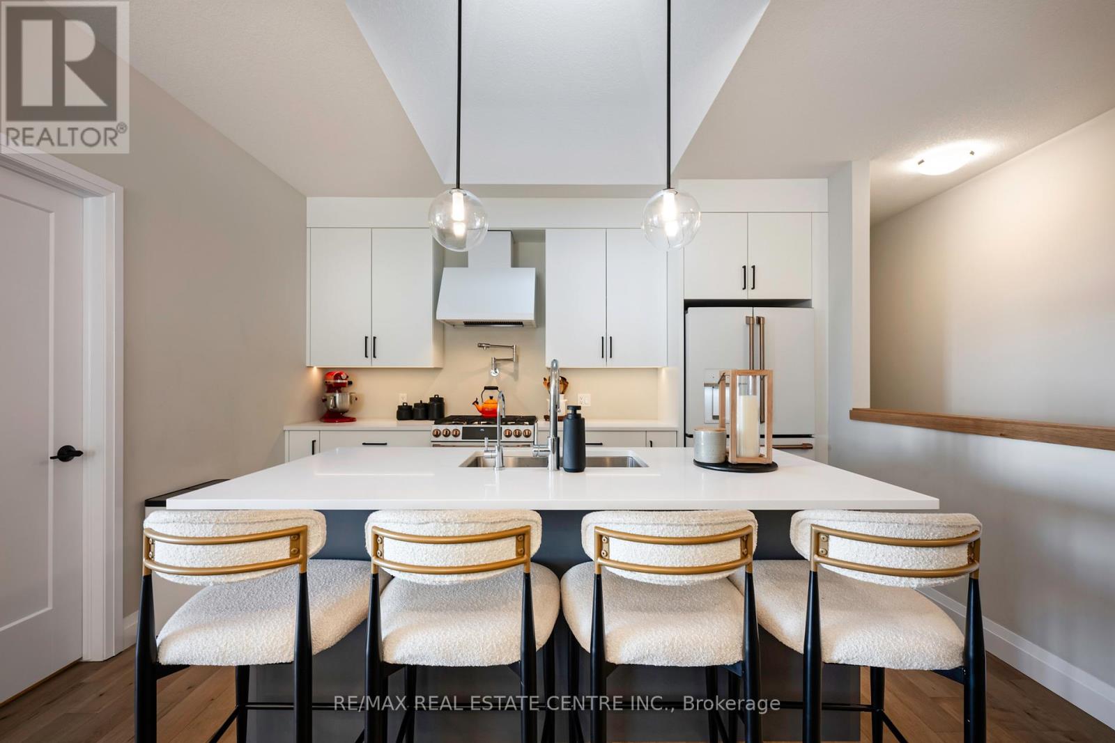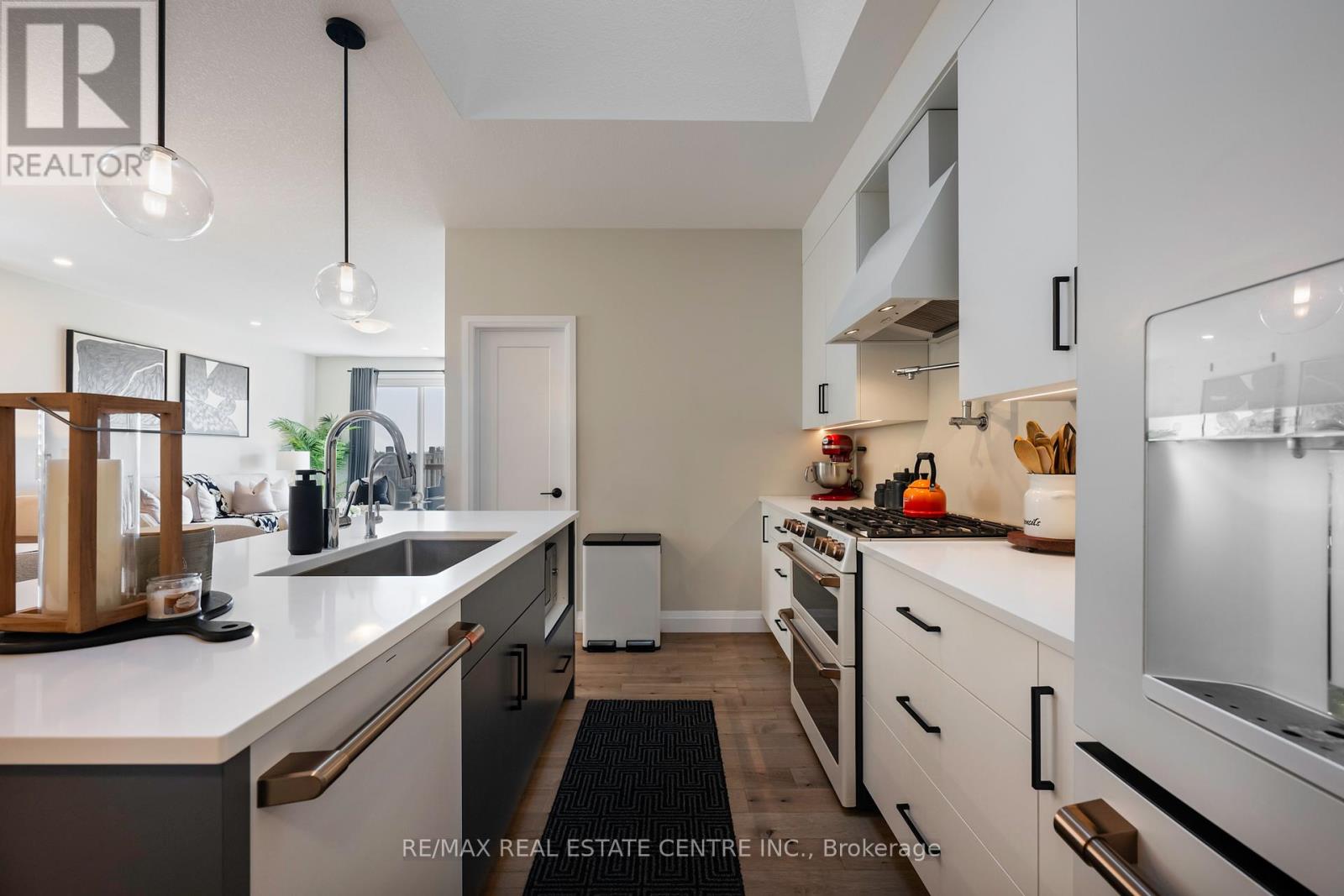 Welcome to Mayberry Hill, one of Grand Valley's most welcoming communities by Thomasfield Homes. This recently built Paisley model bungalow sits on a 38-foot lot and blends clean, classic style with a layout that simply works. Inside, the home feels open and bright thanks to large windows and a smart floor plan that makes the most of every inch. The kitchen is a standout-crisp white cabinetry, a contrasting island, under-cabinet lighting, and a pantry for everyday storage. Matte white GE Cafe appliances with brushed gold accents, including a 30-inch gas range with double oven, counter-depth French-door refrigerator, and ultra-quiet dishwasher, tie everything together with a premium finish. Timeless white quartz counters and soft lighting add to the clean, inviting feel. The main living area flows naturally to the backyard deck-perfect for morning coffee or quiet evenings outdoors. Both bedrooms are spacious, with the primary offering a walk-in closet and private ensuite featuring double vanities and upgraded tile. The main floor laundry with LG WashTower keeps chores simple and efficient. Engineered hardwood and ceramic floors, upgraded fixtures, quartz counters, and thoughtful lighting bring an elevated touch throughout. The large, open basement with big windows is ready for your ideas-whether you need more living space, a gym, or a guest suite. With its welcoming front porch, bright interiors, and functional design, this home delivers easy living in one of Grand Valley's most loved neighbourhoods. Perfect for first-time buyers or those looking to downsize without compromise. (id:4555)