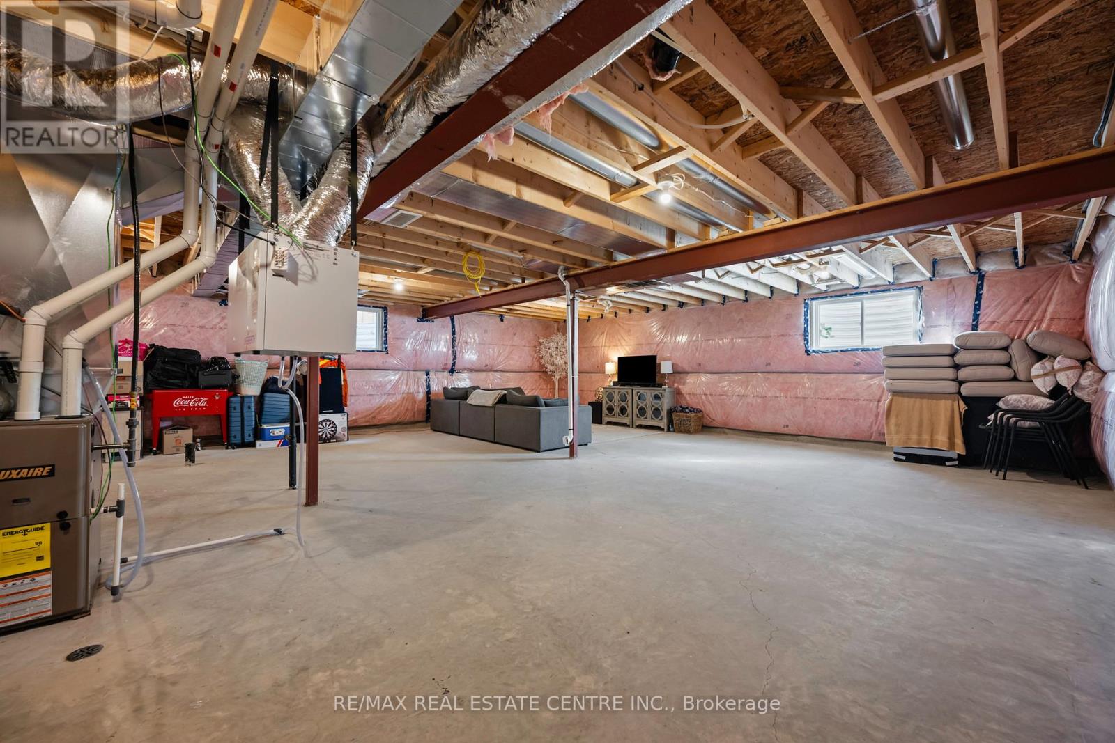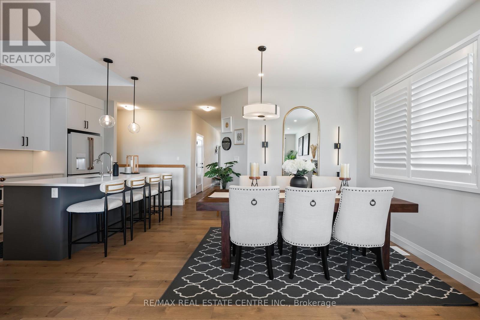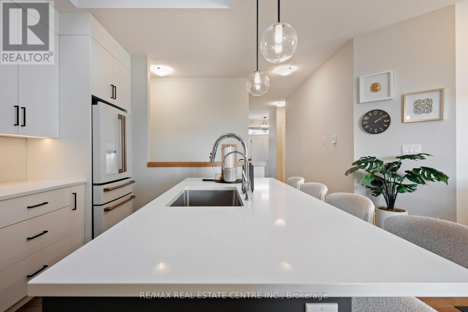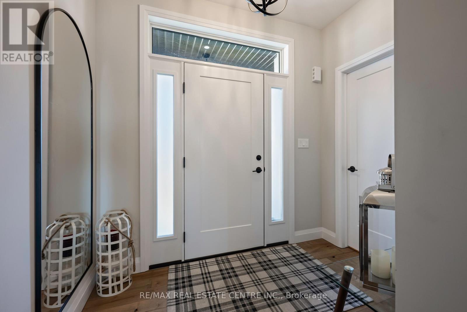 Welcome to Mayberry Hill, one of Grand Valley's most welcoming communities by Thomasfield Homes. This recently built Paisley model bungalow sits on a 38-foot lot and blends clean, classic style with a layout that simply works. Inside, the home feels open and bright thanks to large windows and a smart floor plan that makes the most of every inch. The kitchen is a standout-crisp white cabinetry, a contrasting island, under-cabinet lighting, and a pantry for everyday storage. Matte white GE Cafe appliances with brushed gold accents, including a 30-inch gas range with double oven, counter-depth French-door refrigerator, and ultra-quiet dishwasher, tie everything together with a premium finish. Timeless white quartz counters and soft lighting add to the clean, inviting feel. The main living area flows naturally to the backyard deck-perfect for morning coffee or quiet evenings outdoors. Both bedrooms are spacious, with the primary offering a walk-in closet and private ensuite featuring double vanities and upgraded tile. The main floor laundry with LG WashTower keeps chores simple and efficient. Engineered hardwood and ceramic floors, upgraded fixtures, quartz counters, and thoughtful lighting bring an elevated touch throughout. The large, open basement with big windows is ready for your ideas-whether you need more living space, a gym, or a guest suite. With its welcoming front porch, bright interiors, and functional design, this home delivers easy living in one of Grand Valley's most loved neighbourhoods. Perfect for first-time buyers or those looking to downsize without compromise. (id:4555)