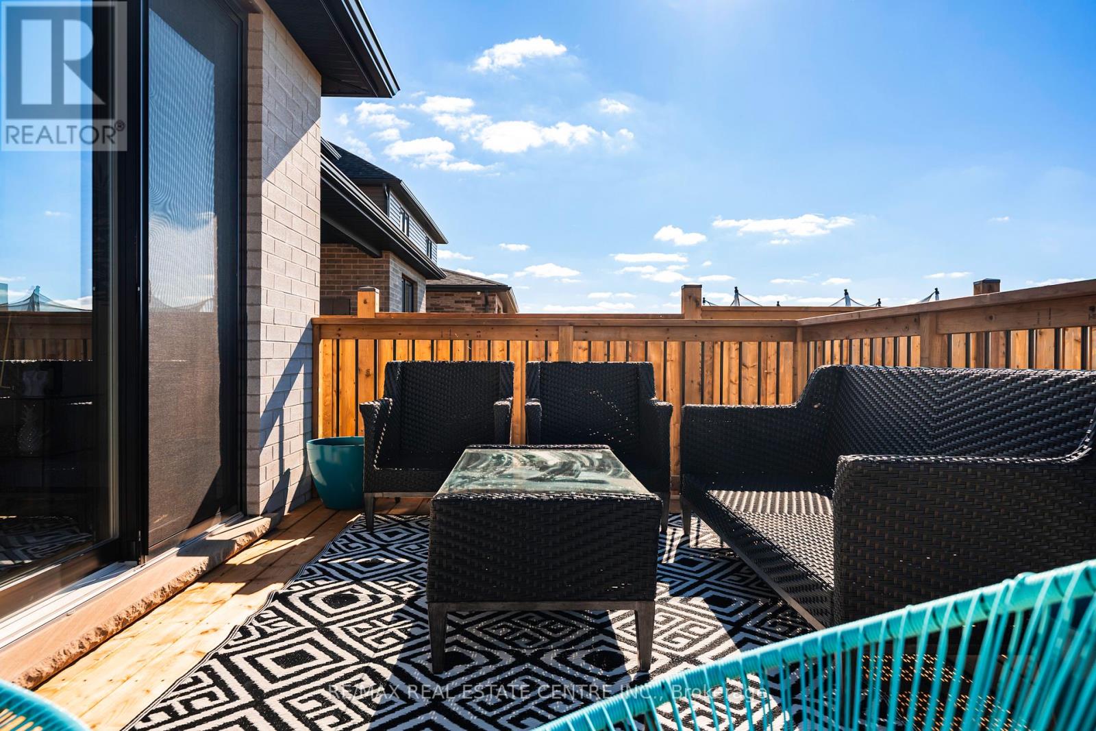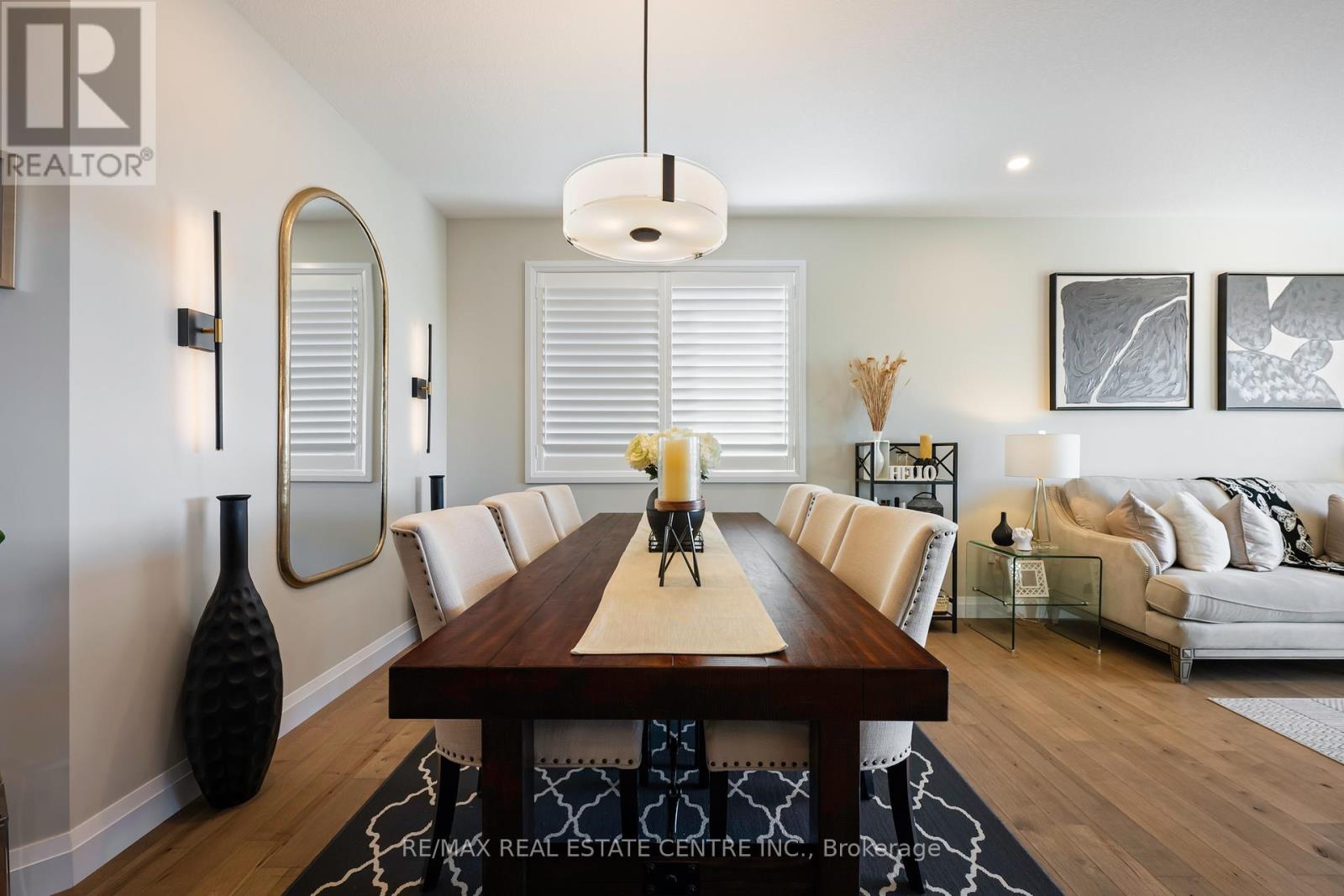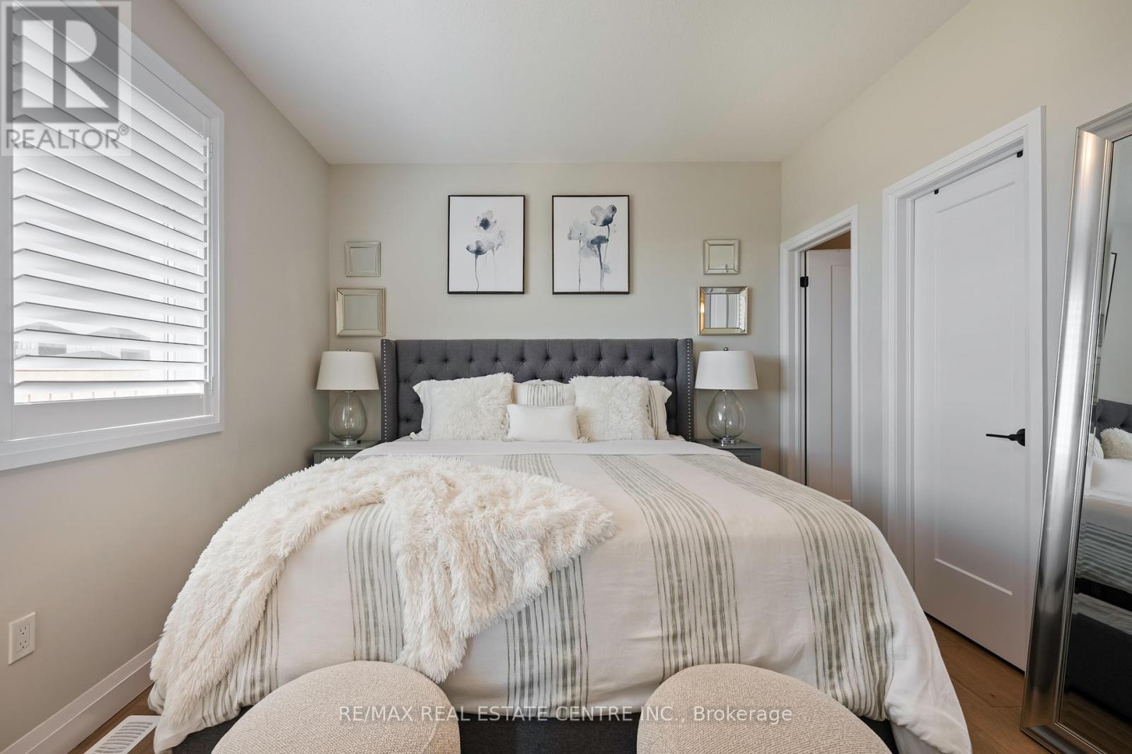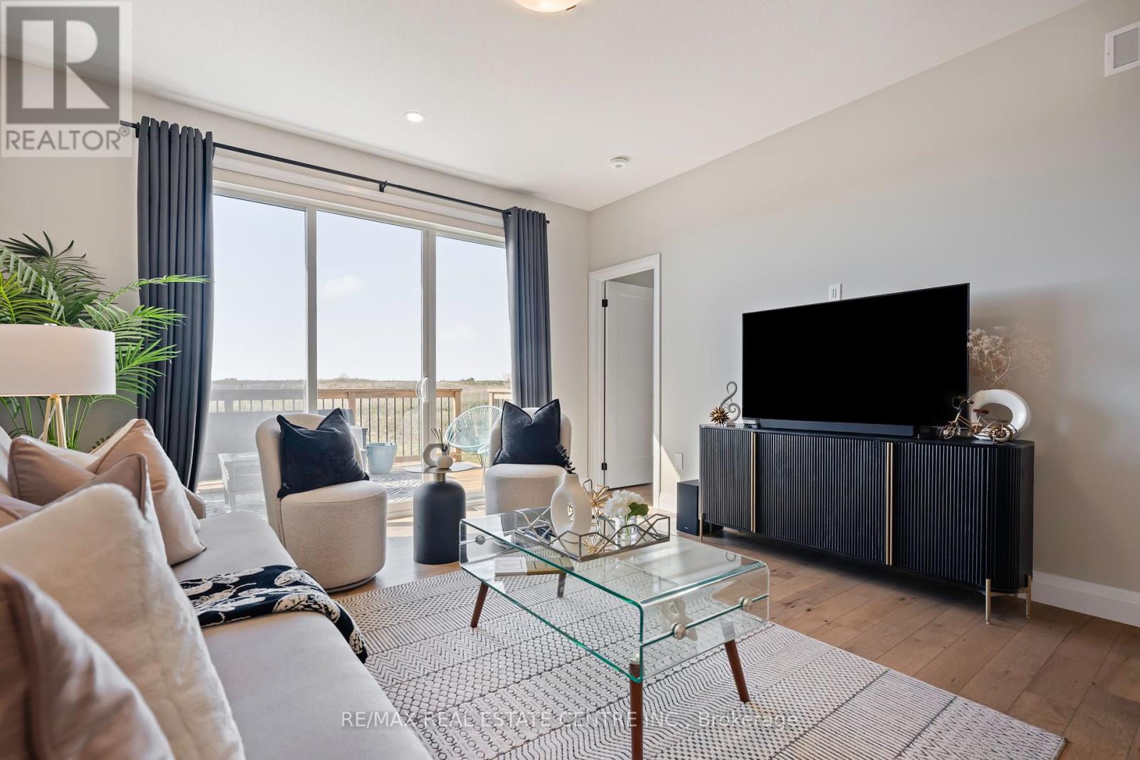 Welcome to Mayberry Hill, one of Grand Valley's most welcoming communities by Thomasfield Homes. This recently built Paisley model bungalow sits on a 38-foot lot and blends clean, classic style with a layout that simply works. Inside, the home feels open and bright thanks to large windows and a smart floor plan that makes the most of every inch. The kitchen is a standout-crisp white cabinetry, a contrasting island, under-cabinet lighting, and a pantry for everyday storage. Matte white GE Cafe appliances with brushed gold accents, including a 30-inch gas range with double oven, counter-depth French-door refrigerator, and ultra-quiet dishwasher, tie everything together with a premium finish. Timeless white quartz counters and soft lighting add to the clean, inviting feel. The main living area flows naturally to the backyard deck-perfect for morning coffee or quiet evenings outdoors. Both bedrooms are spacious, with the primary offering a walk-in closet and private ensuite featuring double vanities and upgraded tile. The main floor laundry with LG WashTower keeps chores simple and efficient. Engineered hardwood and ceramic floors, upgraded fixtures, quartz counters, and thoughtful lighting bring an elevated touch throughout. The large, open basement with big windows is ready for your ideas-whether you need more living space, a gym, or a guest suite. With its welcoming front porch, bright interiors, and functional design, this home delivers easy living in one of Grand Valley's most loved neighbourhoods. Perfect for first-time buyers or those looking to downsize without compromise. (id:4555)