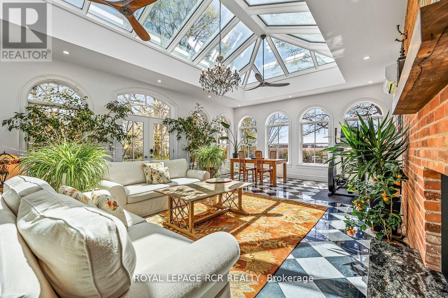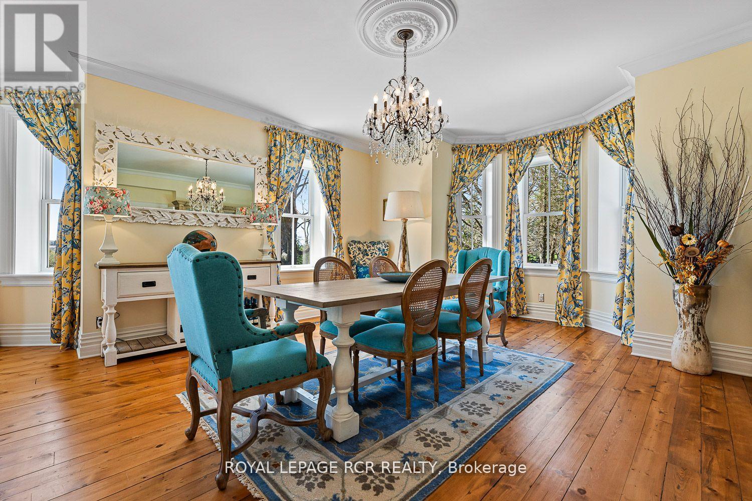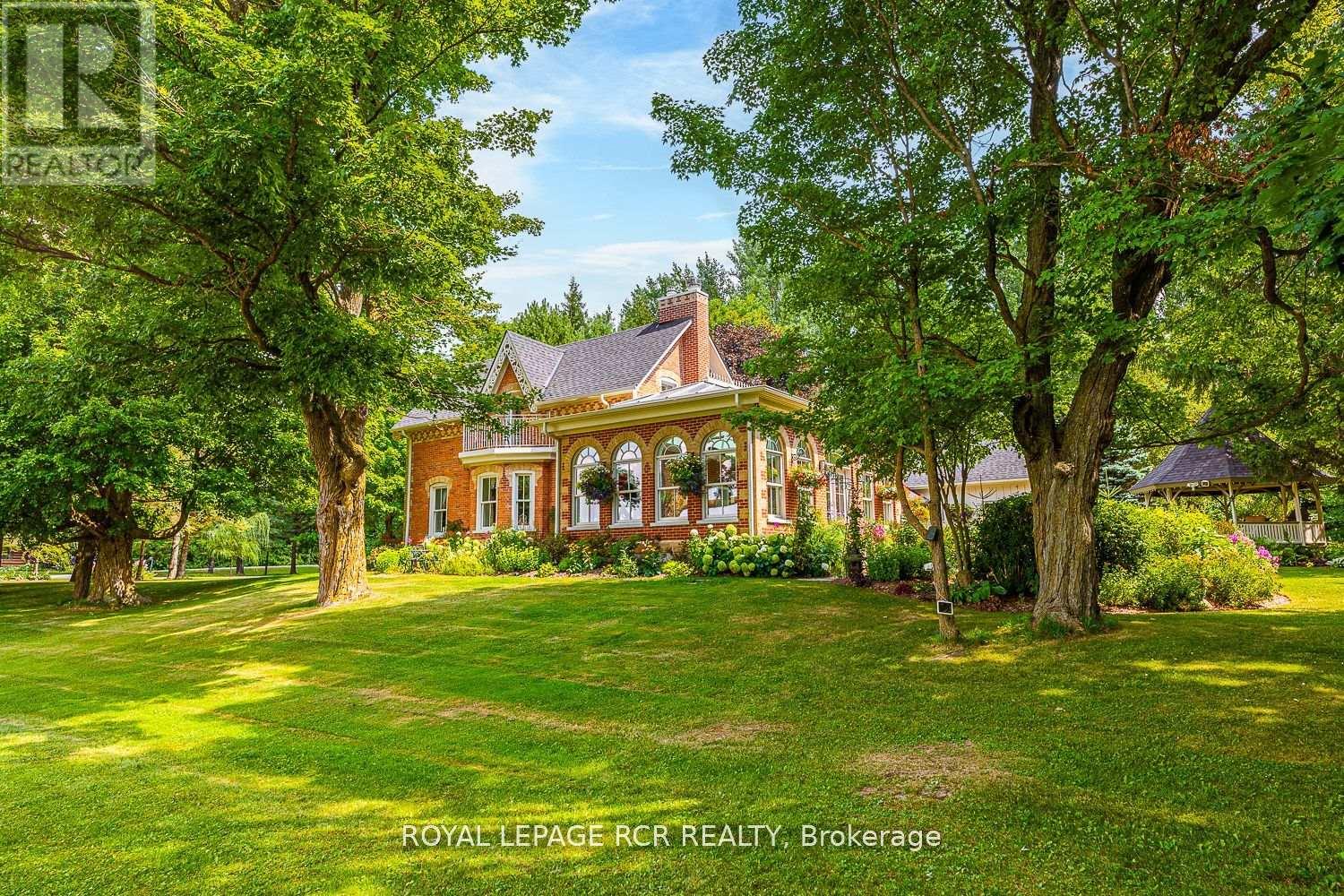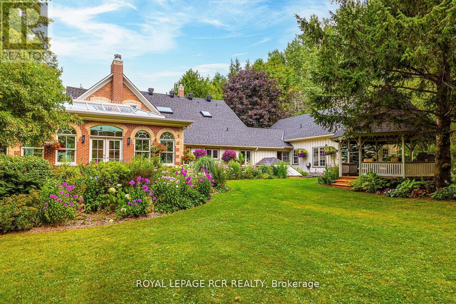 This beautiful historic country retreat sits on 9.3 pristine acres of stunning formal gardens, wildflower meadows, natural woodland, ponds, Grand River frontage, a fenced fruit and raised vegetable gardens as well as manicured trails to enable full enjoyment of this tranquil paradise. The main house built in 1890 offers 3,817 sqft of meticulously and luxuriously renovated living space, including a stunning 4-season, 600 sqft sunroom addition providing wonderful views across the gardens and countryside beyond. A separate coach house, divided into 2 apartments, provides an additional 1,585 sqft of accommodation for multi-generational living or revenue potential. A geothermal ground source heat pump provides optimal heating and cooling to the main house, with additional underfloor heating to tiled areas for that sumptuous touch during the colder months. High-efficiency wood burning fireplaces provide the finishing touch of home comfort luxury. Several outbuildings include a 1680 sqft 3 car garage with car lift, EV charger and an attached heated studio/workshop. A separate 1,150 sqft barn provides additional workshop and storage, whilst a converted silo with spiral staircase and a rooftop viewing platform is the ultimate spot for those sundowner cocktails amongst the treetops away from it all. All this just a few minutes from the quaint town of Grand Valley with all the essentials of daily life, 60 minutes to downtown Brampton, 60 minutes to Pearson and 15 minutes to Orangeville. Please see the attached feature sheet and video for all this stunning property has to offer. * Please note: In the Description and Measurement sections, I have used the words "In Between" and "Ground" to separate the floor levels of the main house from the coach house. * Please Note Water Frontage is an estimation only- sourced from Geo Warehouse (id:4555)