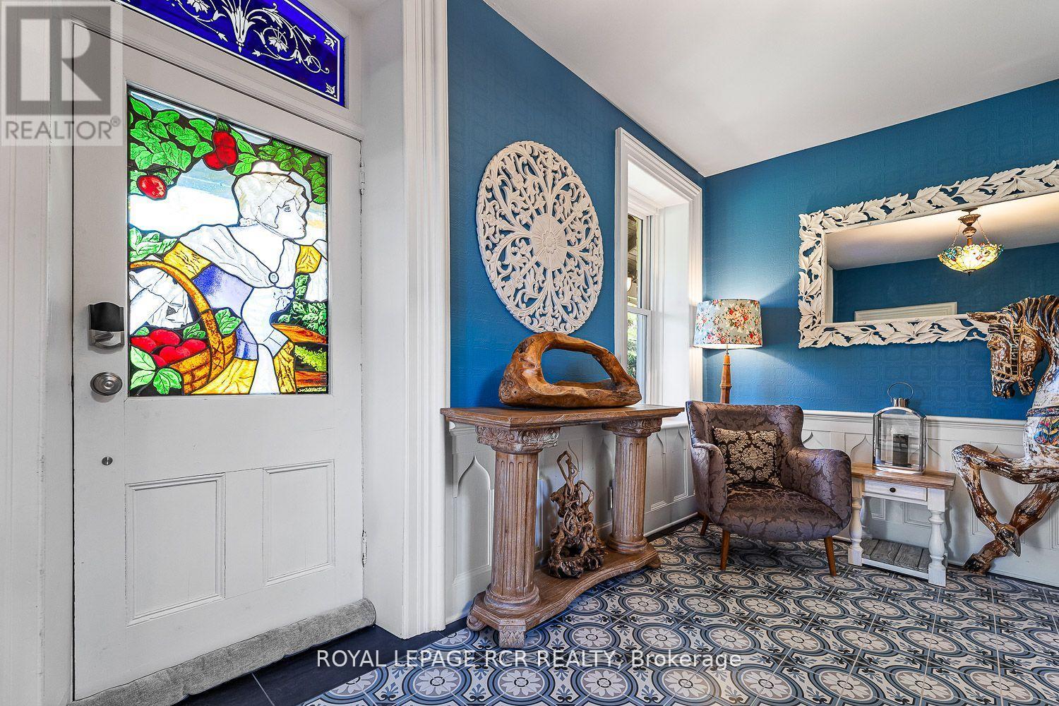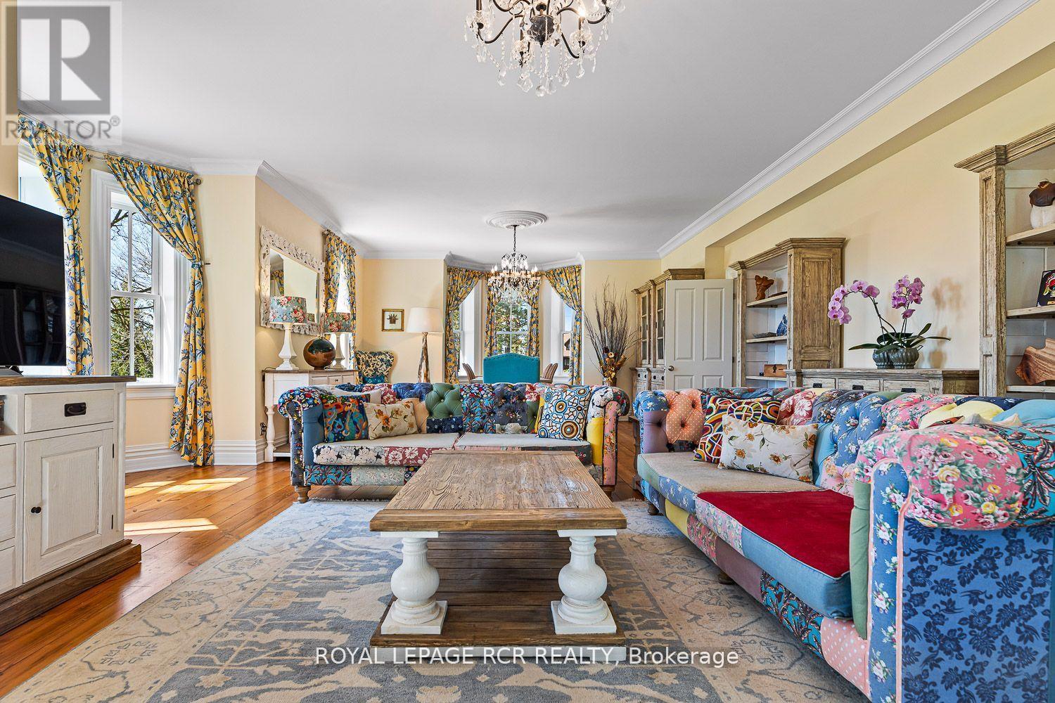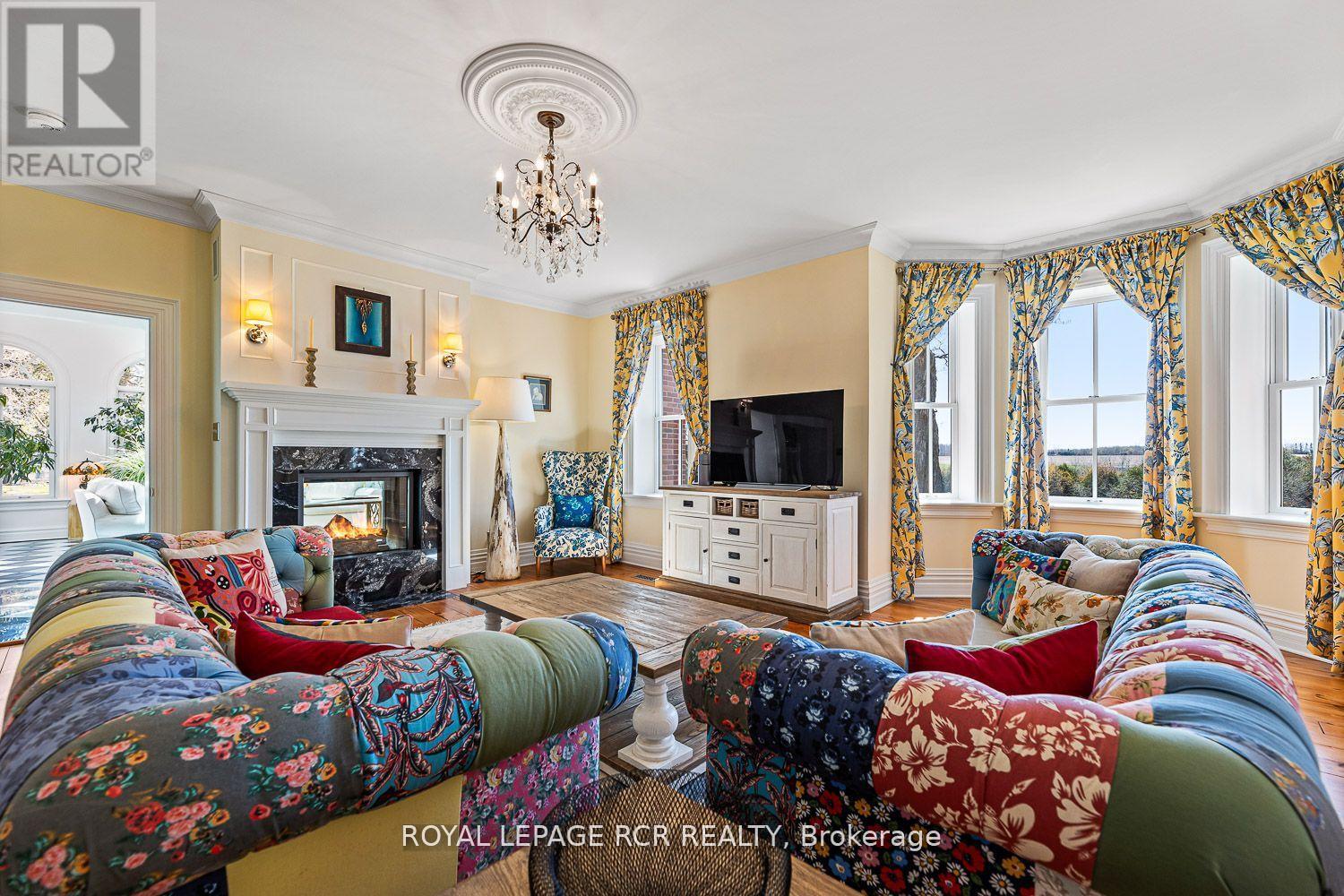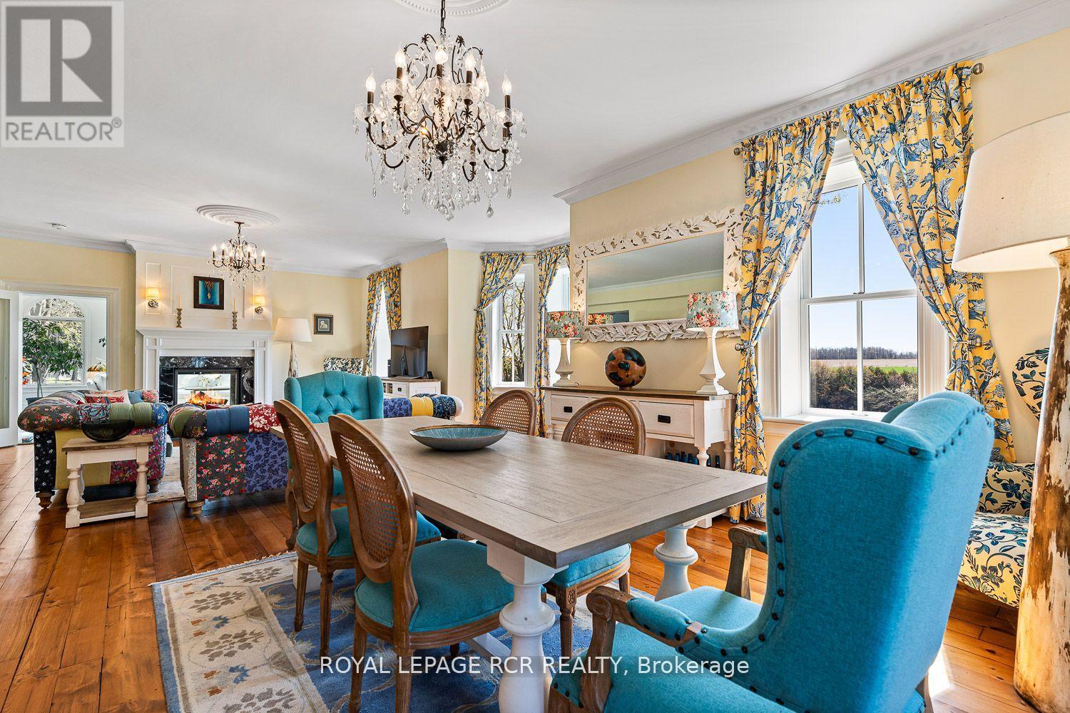 This beautiful historic country retreat sits on 9.3 pristine acres of stunning formal gardens, wildflower meadows, natural woodland, ponds, Grand River frontage, a fenced fruit and raised vegetable gardens as well as manicured trails to enable full enjoyment of this tranquil paradise. The main house built in 1890 offers 3,817 sqft of meticulously and luxuriously renovated living space, including a stunning 4-season, 600 sqft sunroom addition providing wonderful views across the gardens and countryside beyond. A separate coach house, divided into 2 apartments, provides an additional 1,585 sqft of accommodation for multi-generational living or revenue potential. A geothermal ground source heat pump provides optimal heating and cooling to the main house, with additional underfloor heating to tiled areas for that sumptuous touch during the colder months. High-efficiency wood burning fireplaces provide the finishing touch of home comfort luxury. Several outbuildings include a 1680 sqft 3 car garage with car lift, EV charger and an attached heated studio/workshop. A separate 1,150 sqft barn provides additional workshop and storage, whilst a converted silo with spiral staircase and a rooftop viewing platform is the ultimate spot for those sundowner cocktails amongst the treetops away from it all. All this just a few minutes from the quaint town of Grand Valley with all the essentials of daily life, 60 minutes to downtown Brampton, 60 minutes to Pearson and 15 minutes to Orangeville. Please see the attached feature sheet and video for all this stunning property has to offer. * Please note: In the Description and Measurement sections, I have used the words "In Between" and "Ground" to separate the floor levels of the main house from the coach house. * Please Note Water Frontage is an estimation only- sourced from Geo Warehouse (id:4555)