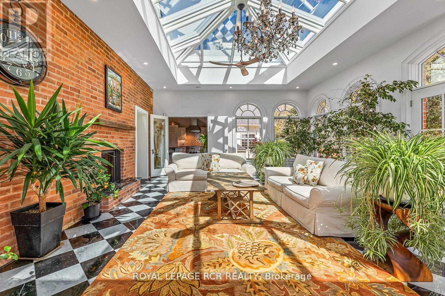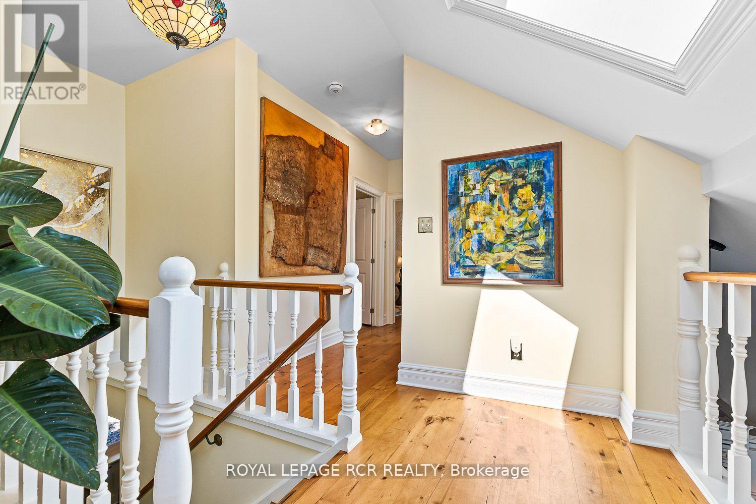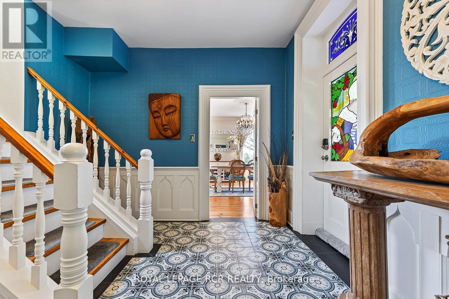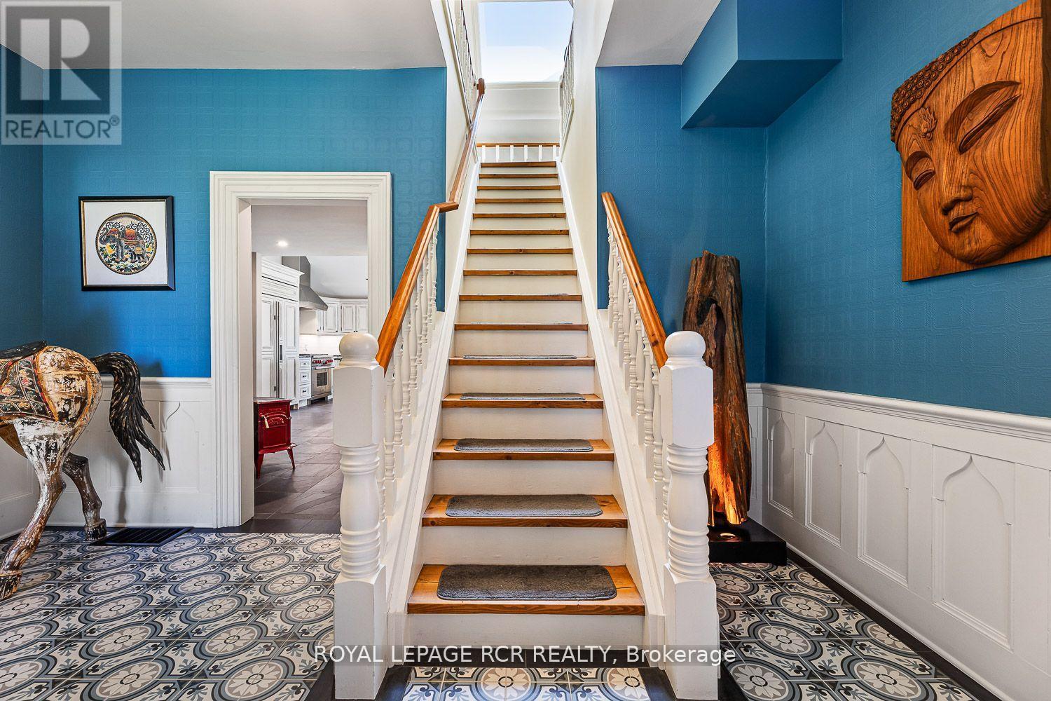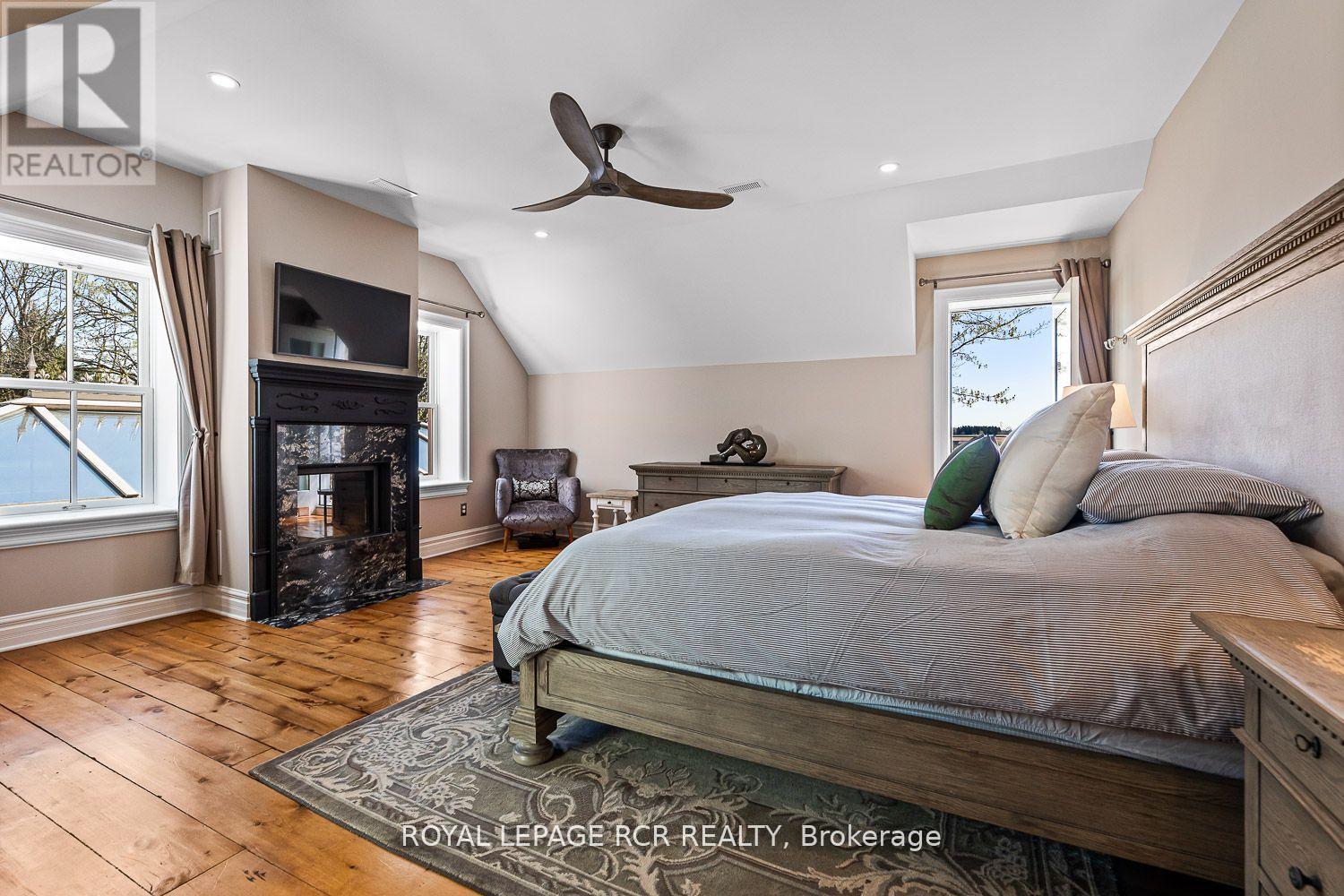 This beautiful historic country retreat sits on 9.3 pristine acres of stunning formal gardens, wildflower meadows, natural woodland, ponds, Grand River frontage, a fenced fruit and raised vegetable gardens as well as manicured trails to enable full enjoyment of this tranquil paradise. The main house built in 1890 offers 3,817 sqft of meticulously and luxuriously renovated living space, including a stunning 4-season, 600 sqft sunroom addition providing wonderful views across the gardens and countryside beyond. A separate coach house, divided into 2 apartments, provides an additional 1,585 sqft of accommodation for multi-generational living or revenue potential. A geothermal ground source heat pump provides optimal heating and cooling to the main house, with additional underfloor heating to tiled areas for that sumptuous touch during the colder months. High-efficiency wood burning fireplaces provide the finishing touch of home comfort luxury. Several outbuildings include a 1680 sqft 3 car garage with car lift, EV charger and an attached heated studio/workshop. A separate 1,150 sqft barn provides additional workshop and storage, whilst a converted silo with spiral staircase and a rooftop viewing platform is the ultimate spot for those sundowner cocktails amongst the treetops away from it all. All this just a few minutes from the quaint town of Grand Valley with all the essentials of daily life, 60 minutes to downtown Brampton, 60 minutes to Pearson and 15 minutes to Orangeville. Please see the attached feature sheet and video for all this stunning property has to offer. * Please note: In the Description and Measurement sections, I have used the words "In Between" and "Ground" to separate the floor levels of the main house from the coach house. * Please Note Water Frontage is an estimation only- sourced from Geo Warehouse (id:4555)