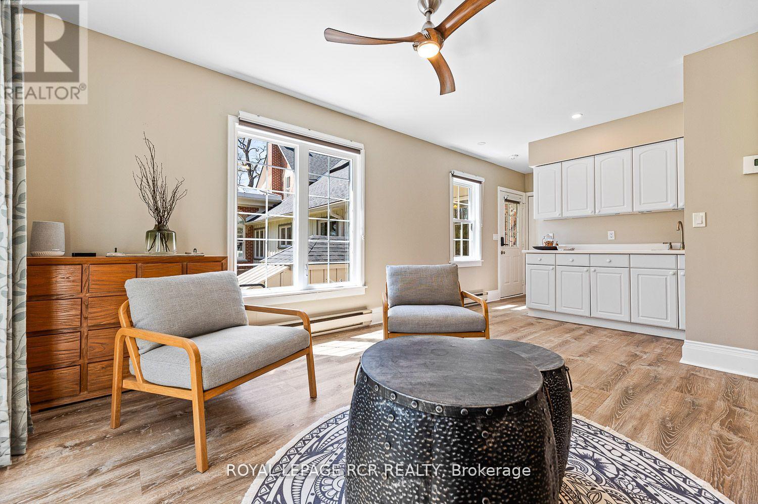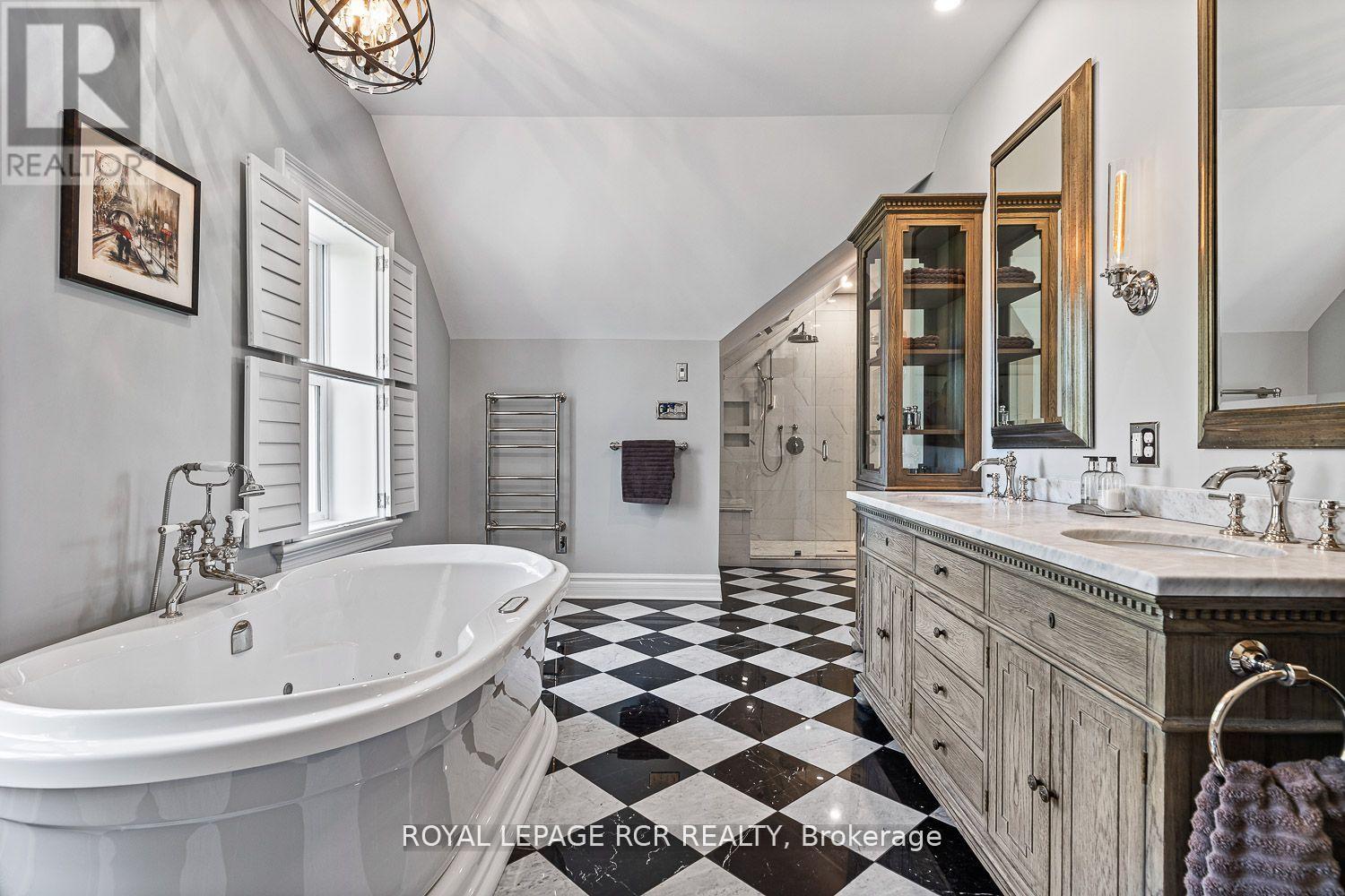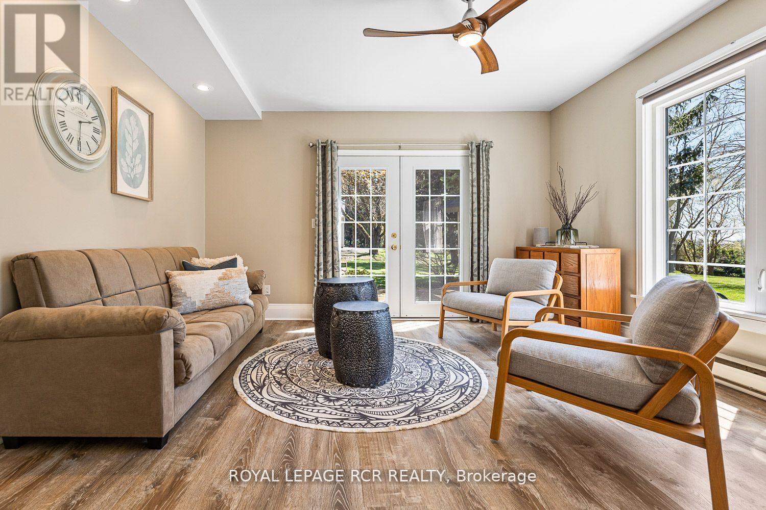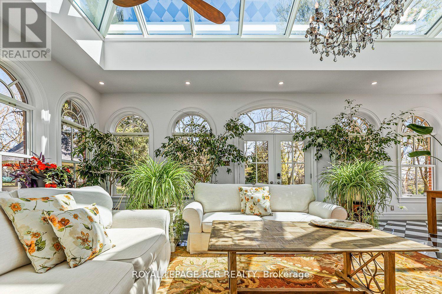 This beautiful historic country retreat sits on 9.3 pristine acres of stunning formal gardens, wildflower meadows, natural woodland, ponds, Grand River frontage, a fenced fruit and raised vegetable gardens as well as manicured trails to enable full enjoyment of this tranquil paradise. The main house built in 1890 offers 3,817 sqft of meticulously and luxuriously renovated living space, including a stunning 4-season, 600 sqft sunroom addition providing wonderful views across the gardens and countryside beyond. A separate coach house, divided into 2 apartments, provides an additional 1,585 sqft of accommodation for multi-generational living or revenue potential. A geothermal ground source heat pump provides optimal heating and cooling to the main house, with additional underfloor heating to tiled areas for that sumptuous touch during the colder months. High-efficiency wood burning fireplaces provide the finishing touch of home comfort luxury. Several outbuildings include a 1680 sqft 3 car garage with car lift, EV charger and an attached heated studio/workshop. A separate 1,150 sqft barn provides additional workshop and storage, whilst a converted silo with spiral staircase and a rooftop viewing platform is the ultimate spot for those sundowner cocktails amongst the treetops away from it all. All this just a few minutes from the quaint town of Grand Valley with all the essentials of daily life, 60 minutes to downtown Brampton, 60 minutes to Pearson and 15 minutes to Orangeville. Please see the attached feature sheet and video for all this stunning property has to offer. * Please note: In the Description and Measurement sections, I have used the words "In Between" and "Ground" to separate the floor levels of the main house from the coach house. * Please Note Water Frontage is an estimation only- sourced from Geo Warehouse (id:4555)
