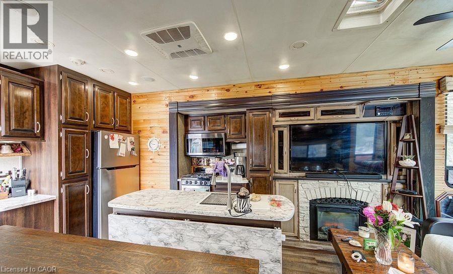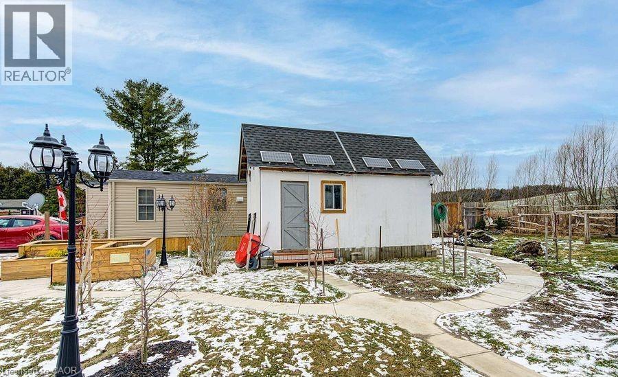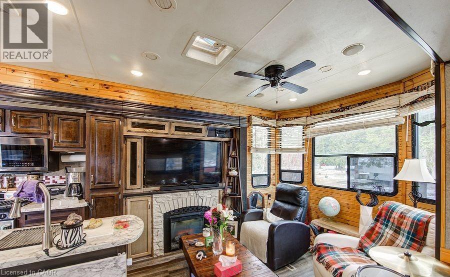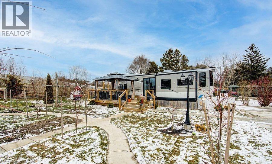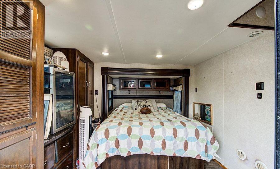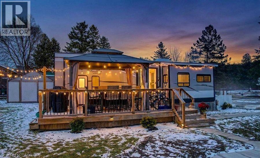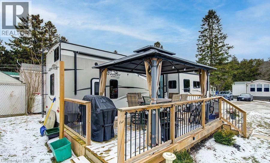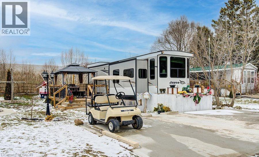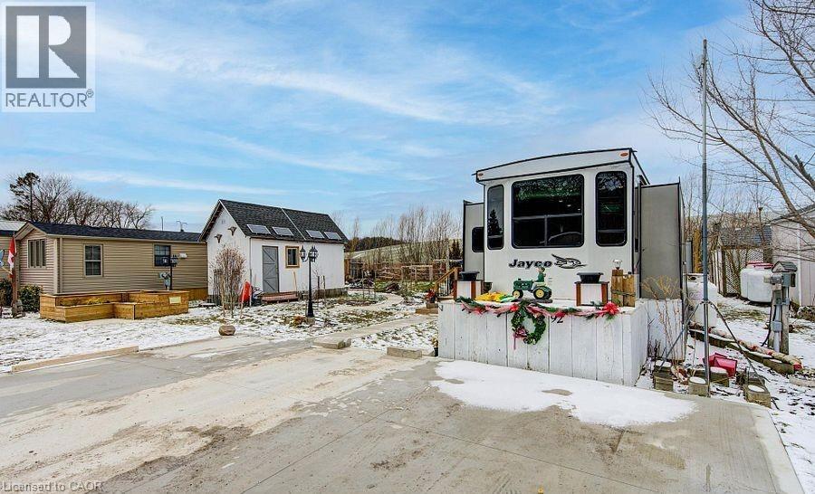 Welcome to Braemar Valley RV Park, a sought-after year-round 50+ adult lifestyle community offering peaceful living with a strong sense of community. This well maintained 2018 Jayco Bungalow 40 Loft model sits on a rare double lot with beautiful landscaping and a concrete driveway with parking for up to 3 vehicles. Enjoy outdoor living on the newer deck, perfect for relaxing or entertaining. Inside, the open concept kitchen and living area features vinyl flooring throughout, a built-in TV and sound system, propane stove, fridge, and microwave. The unit is equipped with propane furnaces and an electric fireplace for comfortable year-round living, along with central air for those warmer months. The loft provides additional sleeping space or convenient storage, while the bedroom includes a closet with washer and dryer hookup. A standout feature is the large 9x18 insulated shed complete with workbench, shelving, and electricity, ideal for storage, hobbies, or seasonal items. Residents enjoy access to a community centre featuring a pool, gym, banquet room, and coin laundry facilities. A great opportunity to enjoy low-maintenance living in a welcoming adult community. (id:4555)