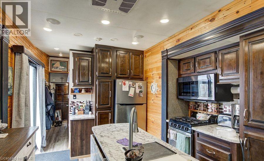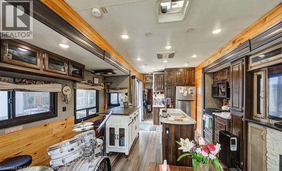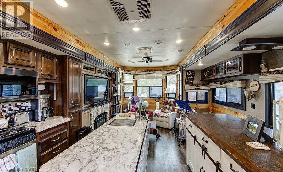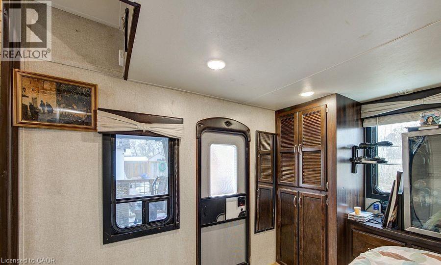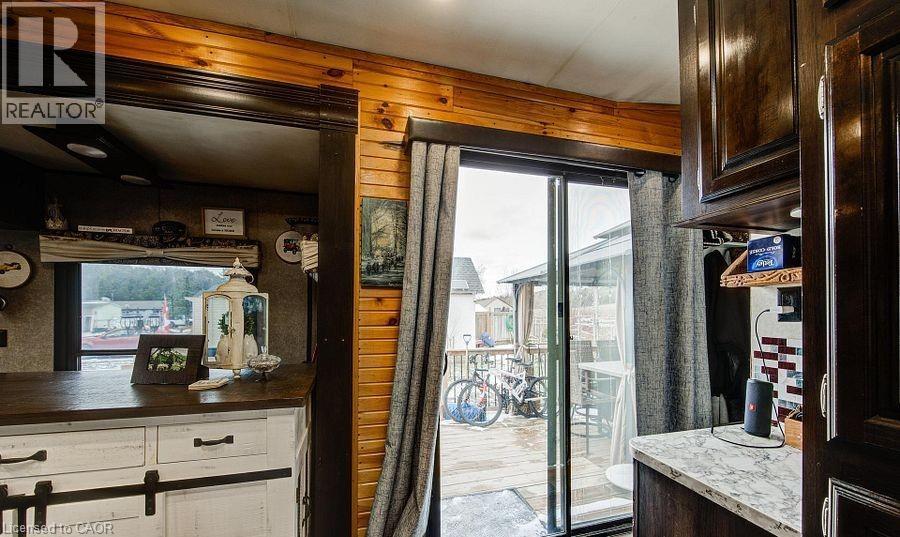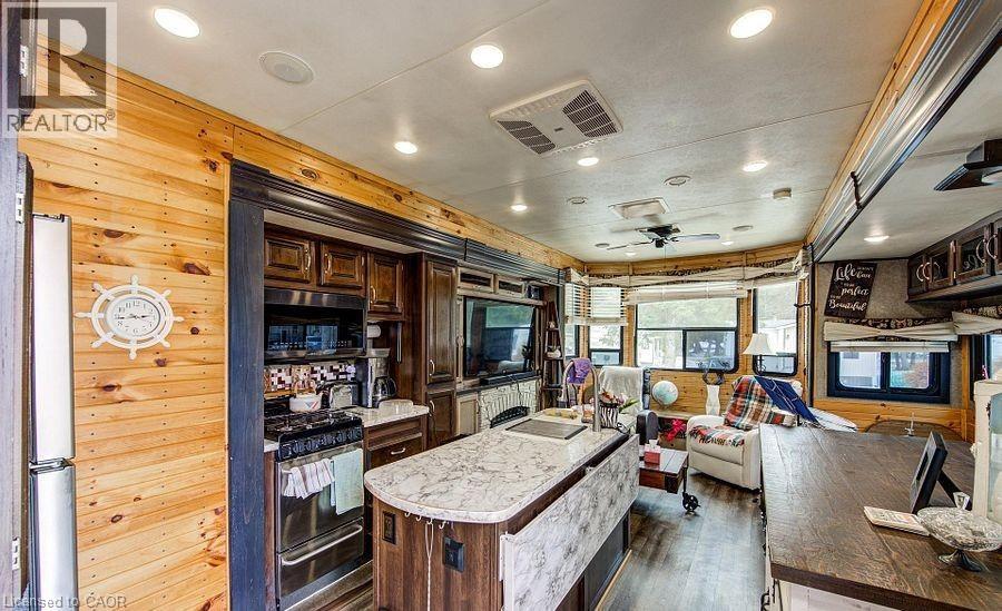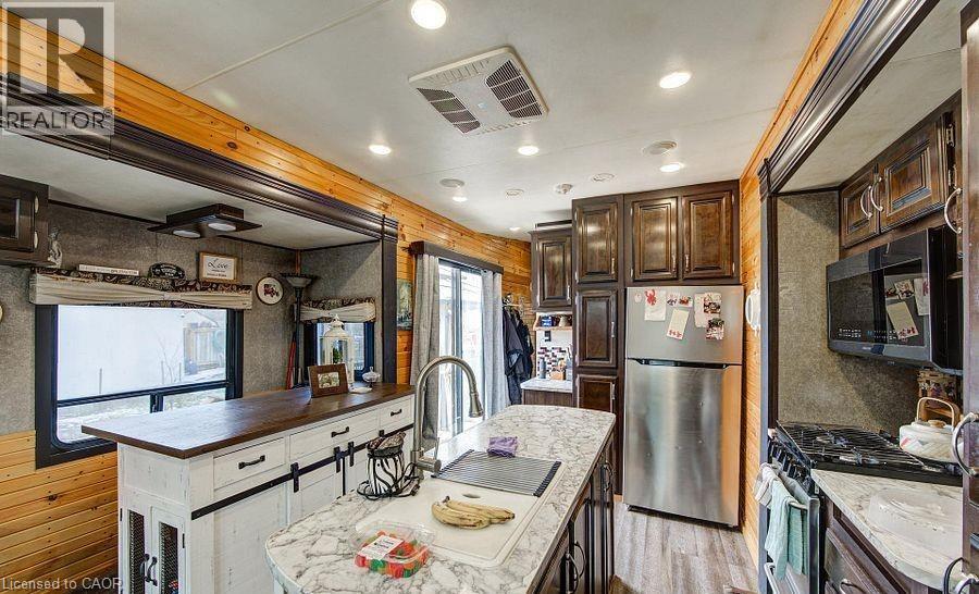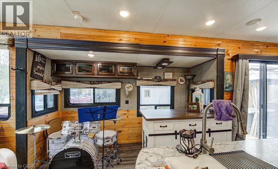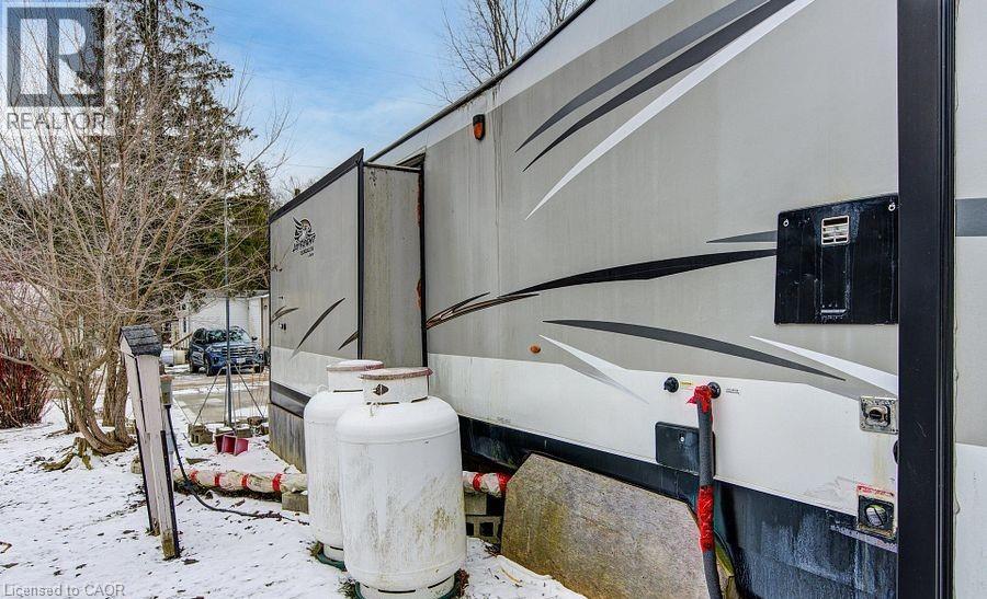 Welcome to Braemar Valley RV Park, a sought-after year-round 50+ adult lifestyle community offering peaceful living with a strong sense of community. This well maintained 2018 Jayco Bungalow 40 Loft model sits on a rare double lot with beautiful landscaping and a concrete driveway with parking for up to 3 vehicles. Enjoy outdoor living on the newer deck, perfect for relaxing or entertaining. Inside, the open concept kitchen and living area features vinyl flooring throughout, a built-in TV and sound system, propane stove, fridge, and microwave. The unit is equipped with propane furnaces and an electric fireplace for comfortable year-round living, along with central air for those warmer months. The loft provides additional sleeping space or convenient storage, while the bedroom includes a closet with washer and dryer hookup. A standout feature is the large 9x18 insulated shed complete with workbench, shelving, and electricity, ideal for storage, hobbies, or seasonal items. Residents enjoy access to a community centre featuring a pool, gym, banquet room, and coin laundry facilities. A great opportunity to enjoy low-maintenance living in a welcoming adult community. (id:4555)