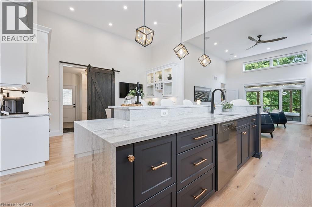 SPECTACULAR ONE OF A KIND HOME! Welcome to this stunning, energy efficient, smart home with $422k in owner upgrades and $250k in builder upgrades! This executive style 1+1 bed bungalow, located just outside Waterloo, in Elmira, provides the conveniences you didn't know you needed. Enjoy your very own home technology assistant (AKA Josh) which controls the lights, fireplaces, speaker system, custom electric blinds and much more. This home offers owned solar panels which generate enough power to cover the majority of your hydro costs, year round and a comprehensive Tesla generator system is in place as back up, should you need it. Stepping into the home you'll be amazed by the soaring 13.5 ft high ceilings in the main living space. An entertainers dream Kitchen, living and dining area, all centered around the floor to ceiling porcelain surround fireplace and exquisite kitchen hood range and cabinetry. Many unique features enjoyed in this main kitchen and dining space including a pot filler at your coffee bar, a bar area with wine cooler, high end appliances and stunning quartz countertops. The oversized primary bedroom features a massive ensuite with walk in porcelain shower & large walk in closet. Doors off the living room and primary bedroom lead to your very own private backyard oasis with covered deck, luxury hot tub and underneath the deck you'll find a workshop fully enclosed in concrete. The 2 car garage enjoys heated epoxy floors, 2 electric EV chargers, high end cabinets & an additional heater for your convenience. The basement provides great inlaw potential or additional living space, perfect for entertaining, with in floor heating, a custom wet bar/ kitchenette open onto a large living room with built in electric fireplace, space for dining or games and tons of storage. A bedroom with a walk-in closet and a 3 piece bathroom complete this level. There is so much to see with this thoughtfully designed & fully custom home. Book your private tour today! (id:4555)