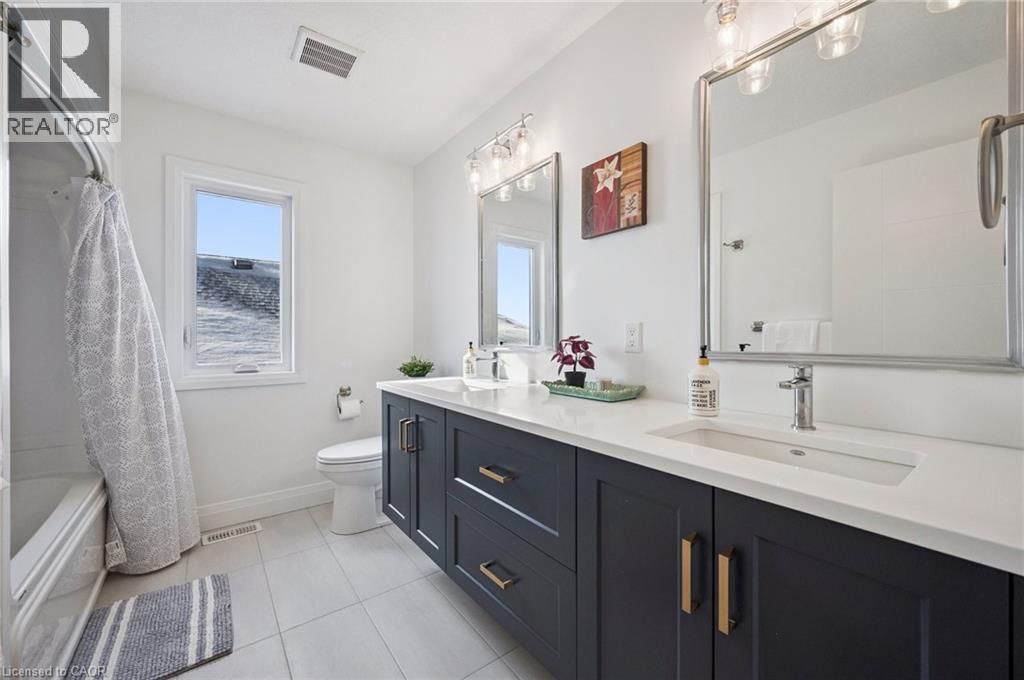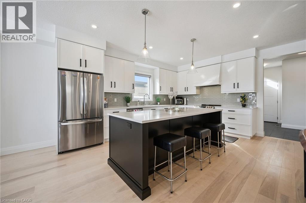 Built in 2021, this beautiful 4-bedroom, 4-bathroom modern family home is located in desirable Southwood Park in Elmira. A spacious foyer with a soaring two-storey ceiling welcomes you inside, highlighted by a stunning chandelier. The rest of the open-concept main floor features 9-foot ceilings and is filled with natural light. The gourmet kitchen boasts a large island, stainless steel appliances, and soft-closing drawers and cupboard doors. Enjoy gorgeous backyard views through the large living and dining room windows, or step out from the dining room door onto the covered deck during the warmer months. Upstairs, you’ll find three generously sized bedrooms and two full bathrooms. The primary bedroom retreat features a cathedral ceiling, a spacious walk-in closet, and a luxurious 5-piece ensuite complete with a glass shower and separate soaking tub. The walk-out basement offers a spacious recreation room with home gym potential, a fourth bathroom, and a fourth bedroom or home office with a large window—ideal for guests or remote work. The beautiful backyard with a sizable patio, perfect for entertaining family and friends, hosting BBQs, or enjoying peaceful gardening time in the warm seasons. 4 parking spaces including double car garage and interlock driveway. Conveniently located within walking distance to amenities including Park Manor Senior Public School, shopping, Tim Hortons, the Lions Ring Trail, and Lions Park. Just a 10-minute drive to Waterloo and the famous St. Jacobs Farmers' Market. This exceptional home offers the perfect blend of modern design, comfort, and location—an ideal place to call home. (id:4555)