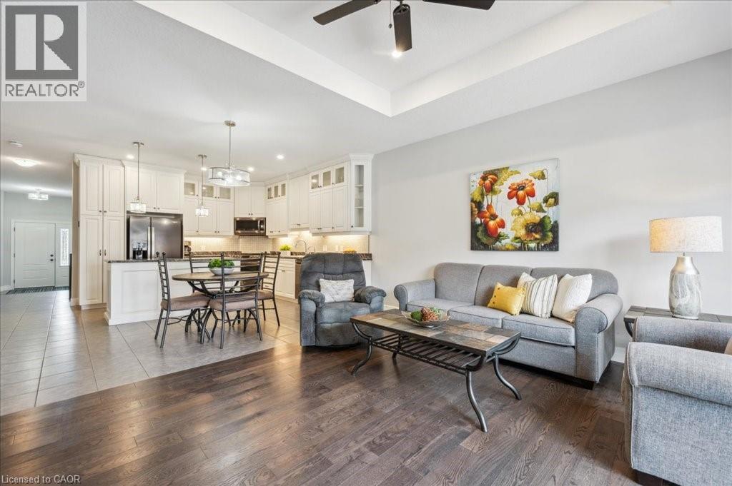 **OPEN HOUSE SAT. APR. 11 from 2-4pm** Welcome to 28 Bur Oak Drive - Bungalow townhouse with no condo fees! This lovely move-in ready townhouse offers a main floor primary bedroom, 2 car parking and is located close to shopping and amenities in Elmira. With 2,440 sq ft of total finished living space, this townhouse has 2+1 bedrooms and 3 bathrooms. Enter through the front foyer, past the front bedroom/den and the adjacent 4 piece bathroom and into the open concept kitchen and living room . The white kitchen has ample cupboard space, a large island and dinette, a great spot for your morning cup of coffee! The living room features a tray ceiling, hardwood floors and a gas fireplace. The primary bedroom has a tray ceiling, a walk-in closet and a 4 piece ensuite with shower and double sinks, no need to share your space! Also found on the main floor is the laundry room and access to the garage. Downstairs you will find an extra large rec room, an additional bedroom and a 3 piece bathroom. Have pets? This home has a pet washing station under the stairs! The backyard is a summer oasis! The fully fenced landscaped yard has a deck with pergola with built-in bench. This home is in a great location with easy access to shopping, HWY 85, and walking trails along the Lions Ring Trail. (id:4555)