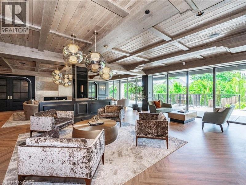 Luxury Living at The Elora Mill Residences! Introducing a turn-key luxury, corner suite in one of the most prestigious locations in the region. Professionally designed and furnished (all included), this fantastic residence offers a bright, airy open-concept layout with wraparound floor-to-ceiling windows, with custom privacy screening, stunning views of the Grand River and the Elora Mill, with three walkouts to an extraordinary 734 sq ft private wraparound terrace! The expansive modern kitchen features custom cabinetry, a huge waterfall-edge island with seating, and top-tier appliances including KitchenAid and a Fisher & Paykel built-in fridge/freezer. A stylish dining area flows seamlessly into the living room, complete with an elegant fireplace feature. The luxurious primary suite offers a large walk-in closet + second closet, and a spa-inspired ensuite with heated floors, double vanity, walk-in shower, and soaker tub. A second bedroom and full bathroom (also with heated floors) make the perfect retreat for guests. Additional features include in-suite laundry (Whirlpool), electric custom blinds, EV parking, and a storage locker. Enjoy resort-style amenities: concierge, lobby coffee bar, residents’ lounge, private dining room, gym, yoga studio, fire-pit patios, and a spectacular outdoor pool and sun deck. Steps to Elora’s shops, cafés, restaurants, trails, and parks, this rare ground-level suite with walkout terrace delivers unmatched luxury, convenience, and views - a truly exceptional offering in the heart of Elora. (id:4555)
