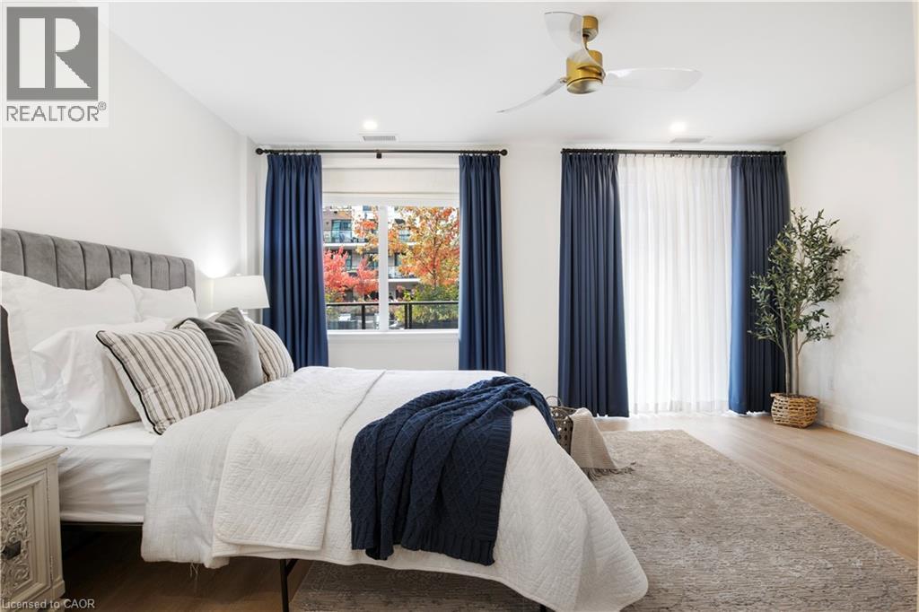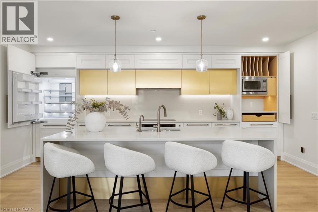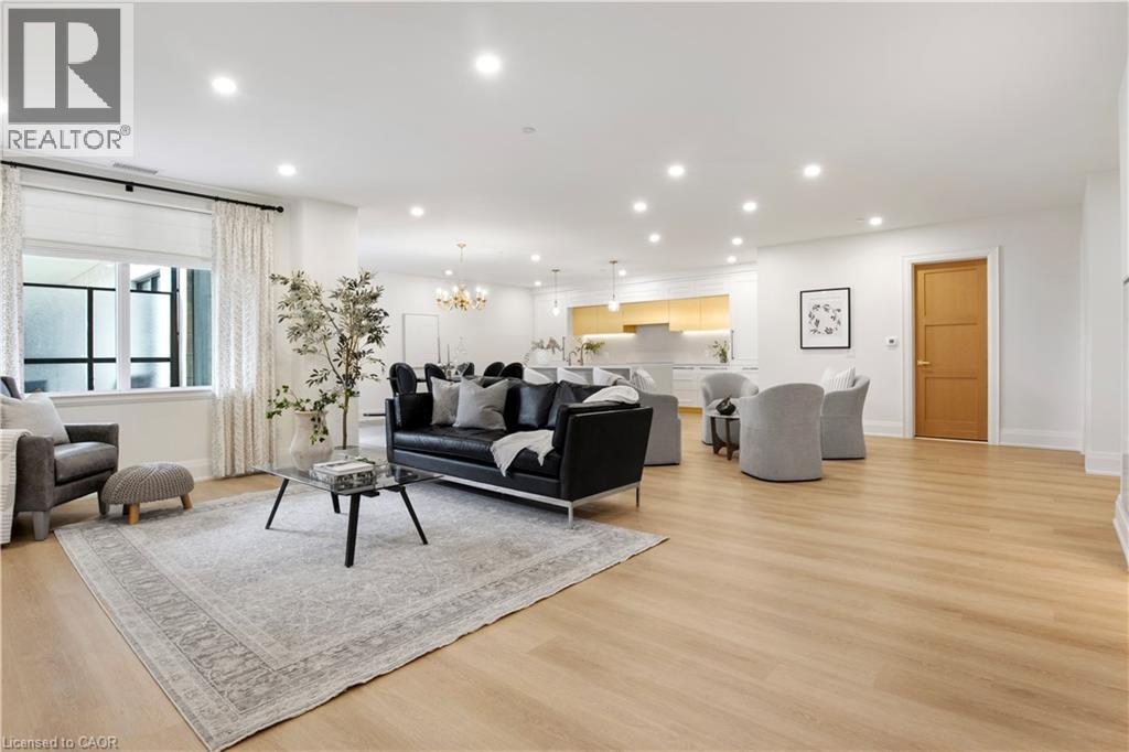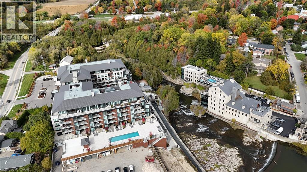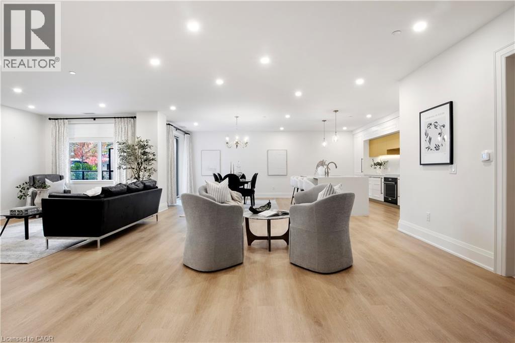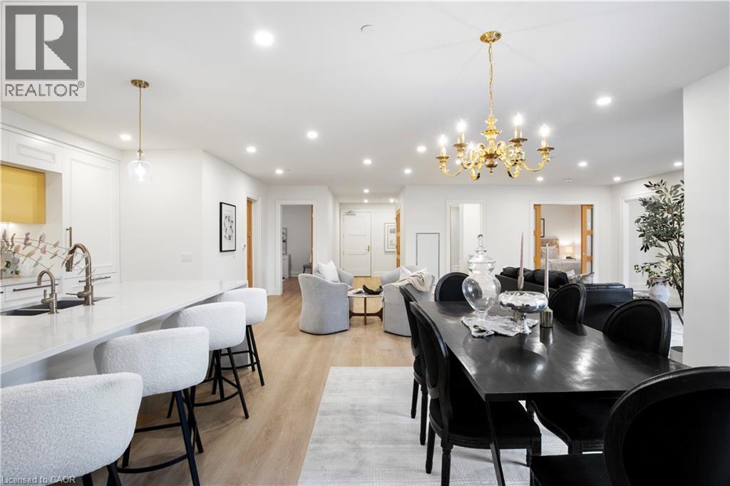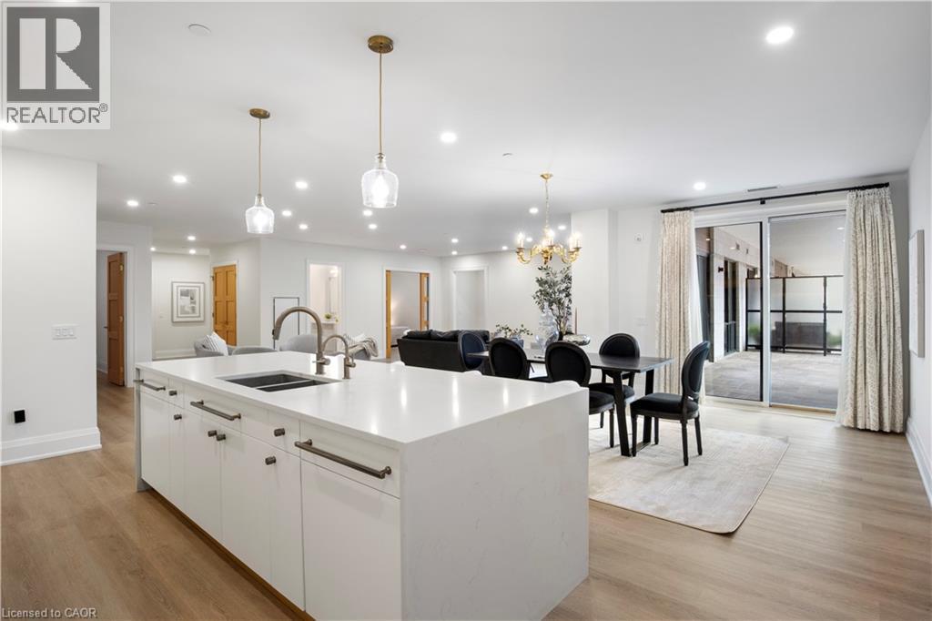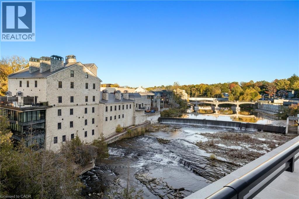 This Luxury suite was designed for those looking to downsize without compromise. 2,098 Sqft of thoughtfully designed living space, this stunning first-floor residence combines the ease of Condo Living with the space and comfort of a Detached Home. This open concept layout has incredible flexibility, allowing you to tailor the space to suit your needs. The expansive dining area comfortably accommodates a full sized dining table, perfect for hosting dinner parties or cherished family gatherings, with room to bring your heirloom set. The living room is ideal for entertaining or relaxing with multiple seating areas and direct access to a sprawling 247 sqft Terrace, perfect for outdoor dining or enjoying your morning coffee. The designer kitchen, complete with an oversized island, with seamless integration into the living and dining areas. Tucked away the primary suite is a true retreat, accessed by a separate hallway and features a spa-inspired ensuite bath and generous walk-in closets. A second spacious bedroom, ideal for family or guests with a large closet & the 3rd bonus room provides added versatility, easily used as a home office, media room or even a 3rd bedroom for visitors. The full-size laundry room offers additional storage and convenience. Located on the ground floor, this suite offers direct views of the Terrace and across the river to the Elora Mill. Perfect for pet owners or those who prefer to avoid elevators. Start your mornings with a short stroll to the resident lounge to enjoy coffee and fresh pastries from the Elora Mill. This suite includes one underground parking space, a locker, and offers access to resort-style amenities: Fitness centre, Yoga studio, Lounge and Lobby Coffee Bar, Outdoor Terrace, and a Pool with Spectacular River Views!! Experience refined living in one of Ontario's most charming and walkable communities. Just steps away from award winning restaurants, artisan shops, cafes and the natural beauty of Elora. (id:4555)