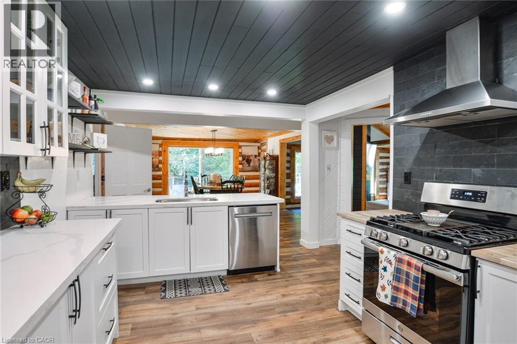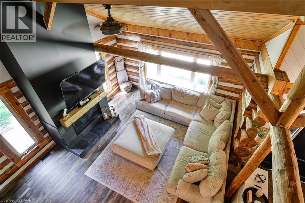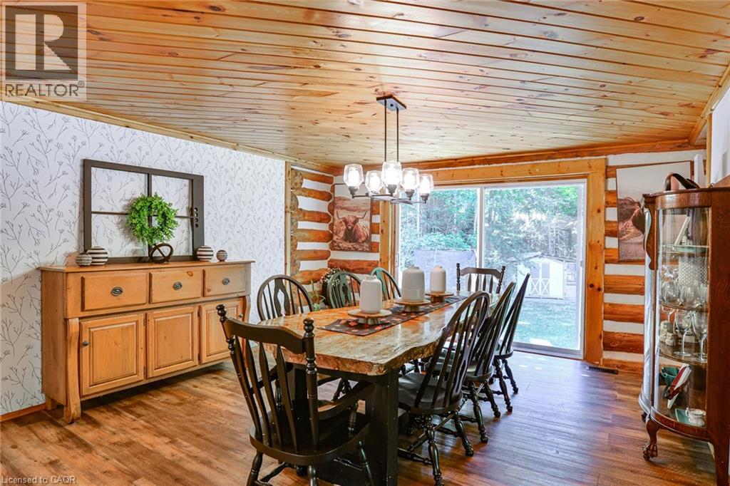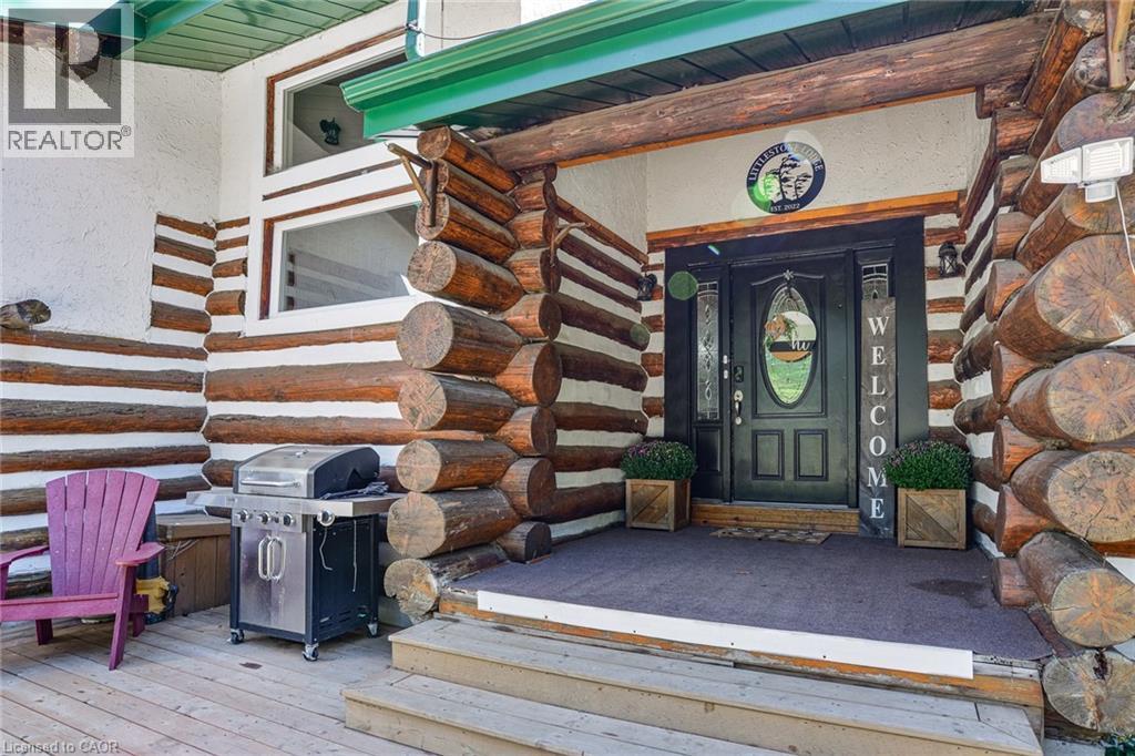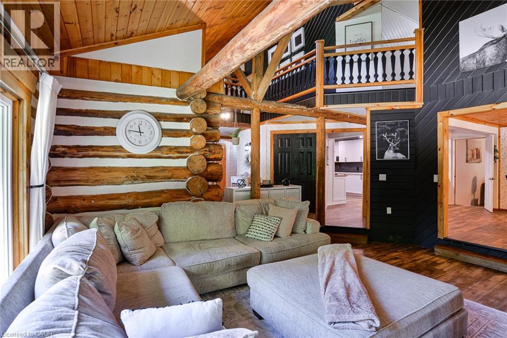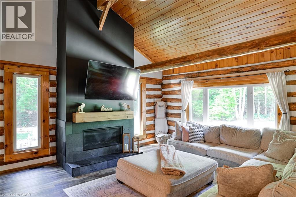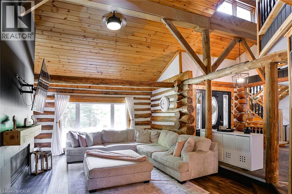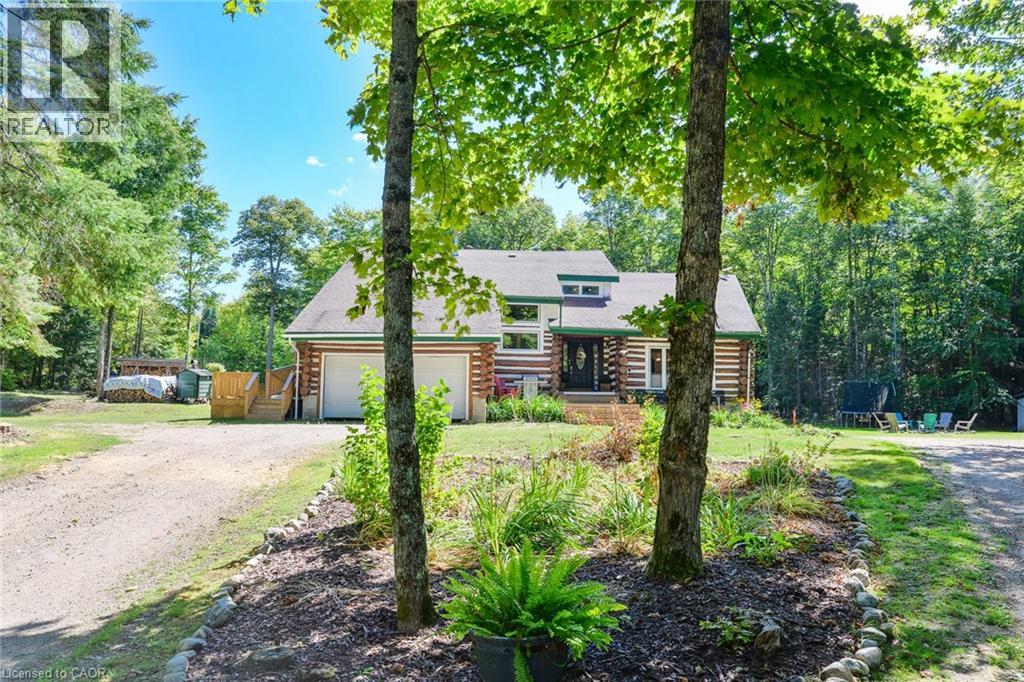 This extraordinary property provides a unique opportunity for multi-generational living within a cozy, log home setting. The finished living spaces of the home were extensively updated in 2023. The layout of the home is well thought out, maximizing the peaceful, cottage country views of the surrounding forest from both the primary and in-law suites. The in-law suite alone offers over 1200 sqft. of finished living space all on one floor. It has a large master bedroom with an ensuite 4pc bathroom, large walk-in closet, and its own laundry. The open concept kitchen and living room area features a signature fireplace and large windows overlooking a private deck. Ramp access to the in-law suite make this very well suited for the seniors in your family. The primary unit’s living spaces are spread out over two floors. The front foyer overlooks the living room with vaulted ceiling, fireplace, and large windows with plenty of natural light. Home chefs will love the substantial new kitchen and separate dining room. The 2nd floor has 3 sizeable bedrooms, a guest room, and a centrally located multi-purpose room well suited for a kids play area, games room, or additional bedroom. The nearly 2700 sqft. basement is partially finished with ample space for work room, rec room, storage, theatre, bedrooms, etc. As spectacular as the house is, what truly makes this property special is the land. The home is surrounded by a sprawling mixed species forest with trails. There are outbuildings, a covered woodshed, and 2 premium 8'x 20' Shelter Logic Garages provided ample additional storage for all your needs! A road splits off the main drive and leads to a large clearing at the back of the property, suitable for camping or trailer storage. Hydro has already been run to the cleared area which offers many possibilities! (id:4555)