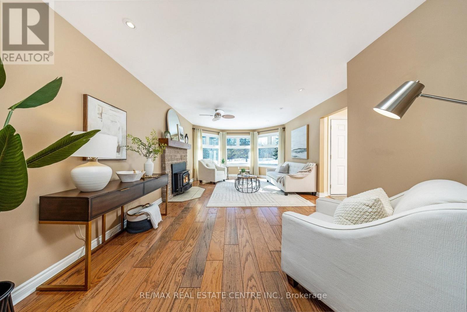 Nestled on a serene 1.985 ACRE lot surrounded by lush forested conservation land and a scenic equine farm, this charming 3 bedroom BUNGALOW is a peaceful retreat that combines comfort and modern design. Upon entering you are greeted by the warmth of stunning WOOD FLOORS that lead you through an open and inviting layout. The expansive living area with FIREPLACE harmoniously flowing to a large kitchen and diningroom with DESIGNER CERAMICS, provides a perfect space for both casual family gatherings and lavishly entertaining guests. Convenience is at your fingertips with a main floor laundry room with access to the garage and basement, simplifying daily tasks and ensuring effortless living. The finished basement offers an abundance of additional living space, perfect for a family room, workshop, play area or home office, allowing you to tailor it to your unique lifestyle needs. Beyond the home's inviting interior, the vast outdoor space beckons with a sense of tranquility and seclusion, while the surrounding conservation land not only enhances the picturesque view but also offers POTENTIAL TAX BENEFITS, making it a wise investment in your future. This bungalow exemplifies a harmonious fusion of modern amenities and inherent natural beauty, offering a remarkable opportunity for elevated living in a peaceful setting. (id:4555)