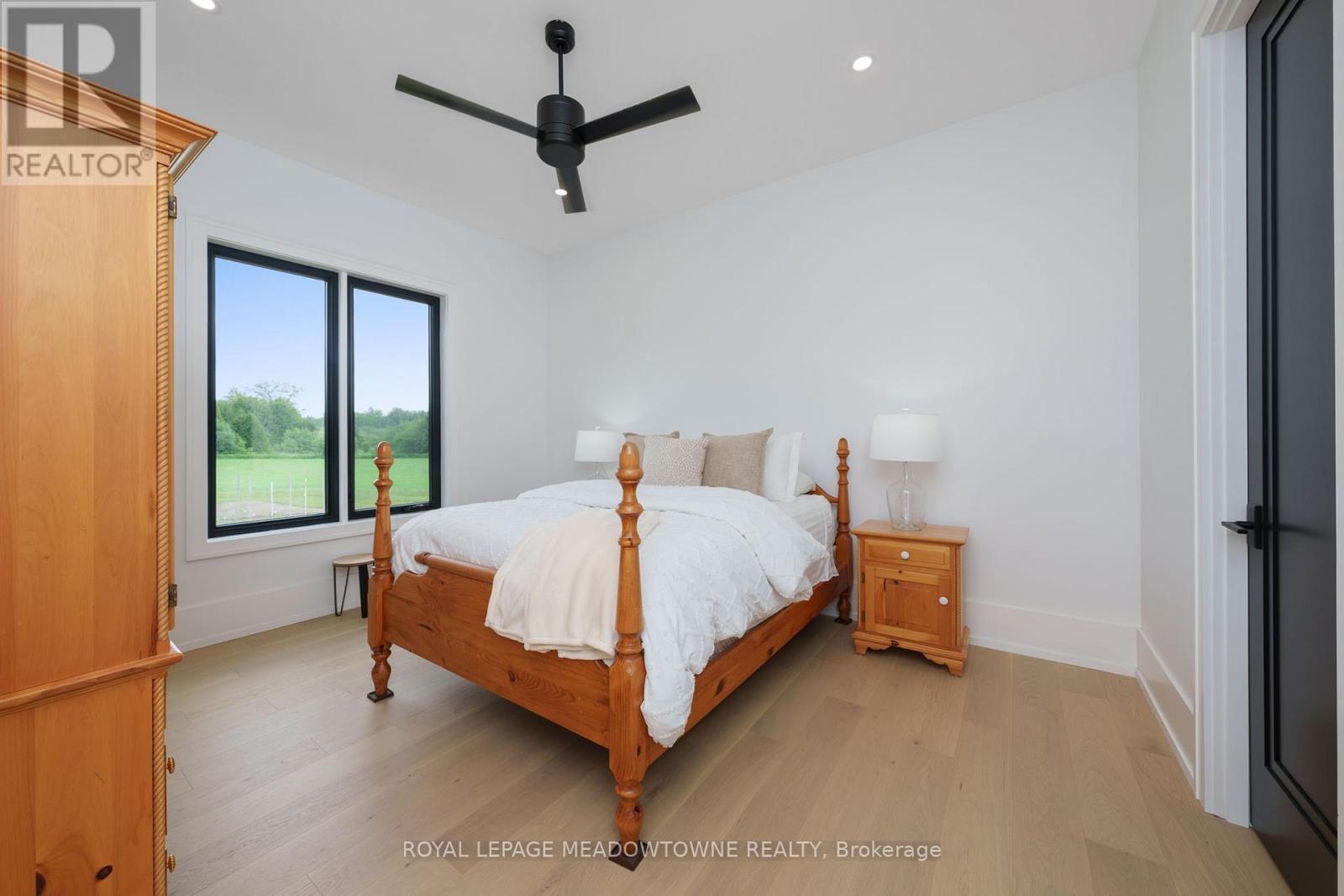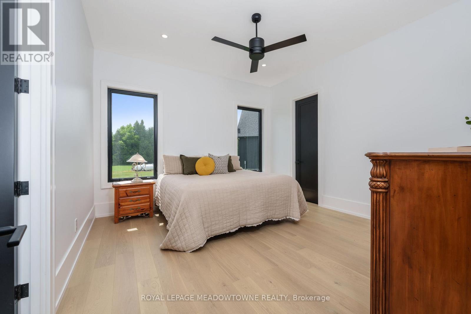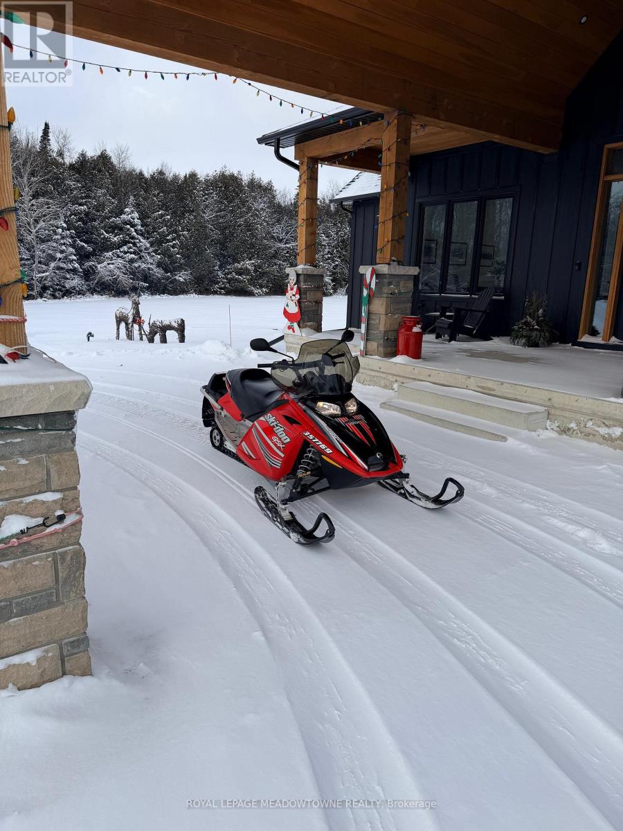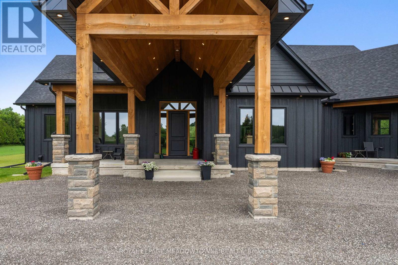 Welcome to an exceptional new custom-built Dramatic country estate offering over 9,000 sq.ft. of refined living space, set on 41 acres of private farmland and mature woods-all just one hour north of downtown Oakville, making country living effortlessly accessible. A long, gated private drive sets the tone for this meticulously crafted residence, where quality construction, thoughtful design, and timeless finishes come together. The dramatic great room showcases soaring ceilings, wide-plank white oak flooring, and a statement fireplace, flowing seamlessly into expansive dining and entertaining spaces. Oversized glass doors open to a covered outdoor living area with a second fireplace, creating a true four-season retreat surrounded by uninterrupted countryside views. At the heart of the home, the CHEF -inspired Prep kitchen features top-tier built in appliances, an oversized walk-in pantry, island for prepping and elegant custom finishes, ideal for both everyday living and large-scale entertaining. The primary suite is a private sanctuary with dual walk-in closets, tranquil views, and a spa-like ensuite. Three additional main-floor bedrooms each offer their own luxury ensuite bathrooms, providing comfort and privacy for family and guests alike. The fully finished lower level delivers exceptional versatility-perfect for extended family living, recreation, or entertaining. A separate self-contained one-bedroom Guest Suite with its own entrance adds flexibility for guests, multigenerational living. Completing the property is an impressive 2,500 sq.ft. heated and insulated attached garage/workshop, ideal for car enthusiasts, hobbyists, or entrepreneurs requiring substantial space. This is a rare opportunity to own a newly built, high-quality estate that delivers absolute privacy without sacrificing convenience-an unparalleled blend of craftsmanship, space, and location. (id:4555)