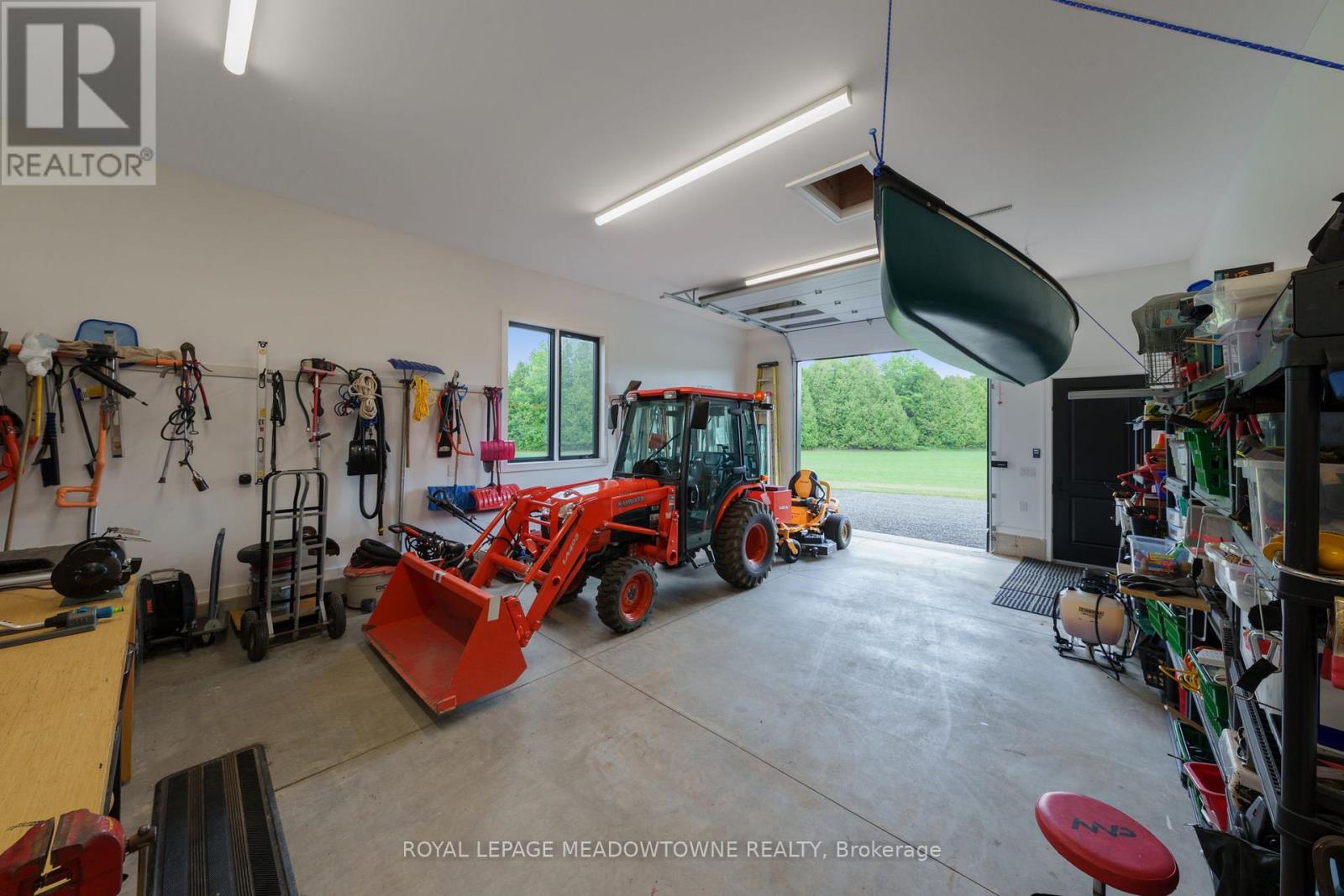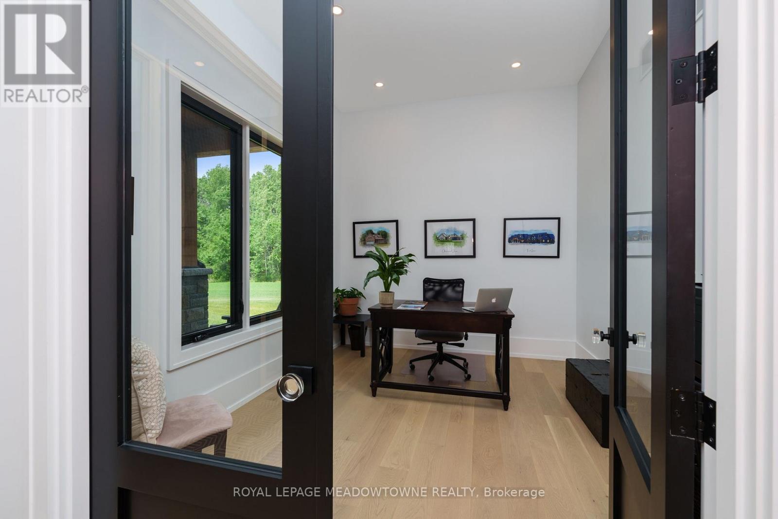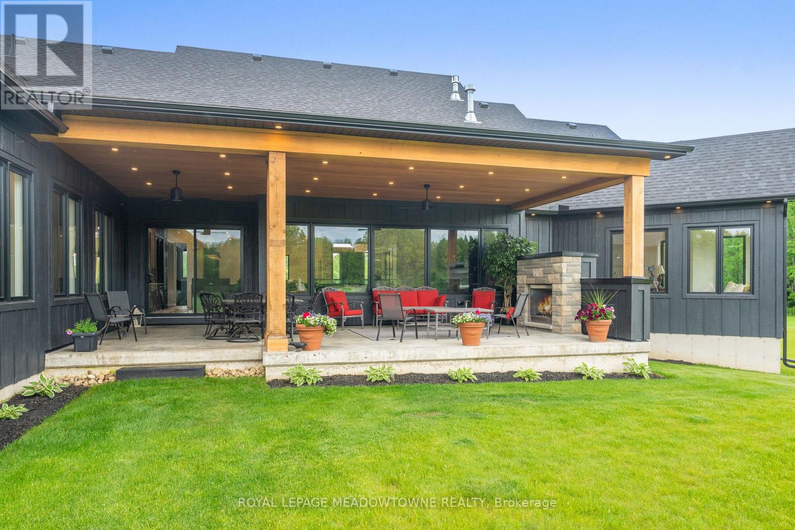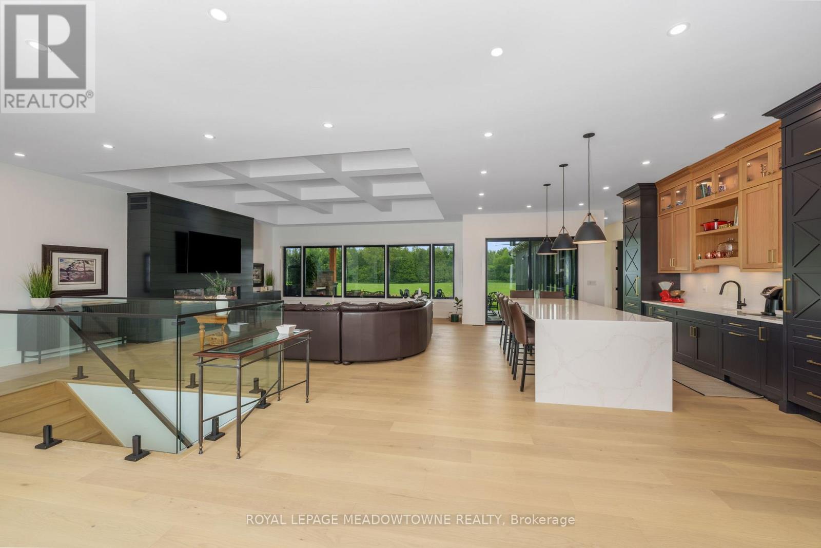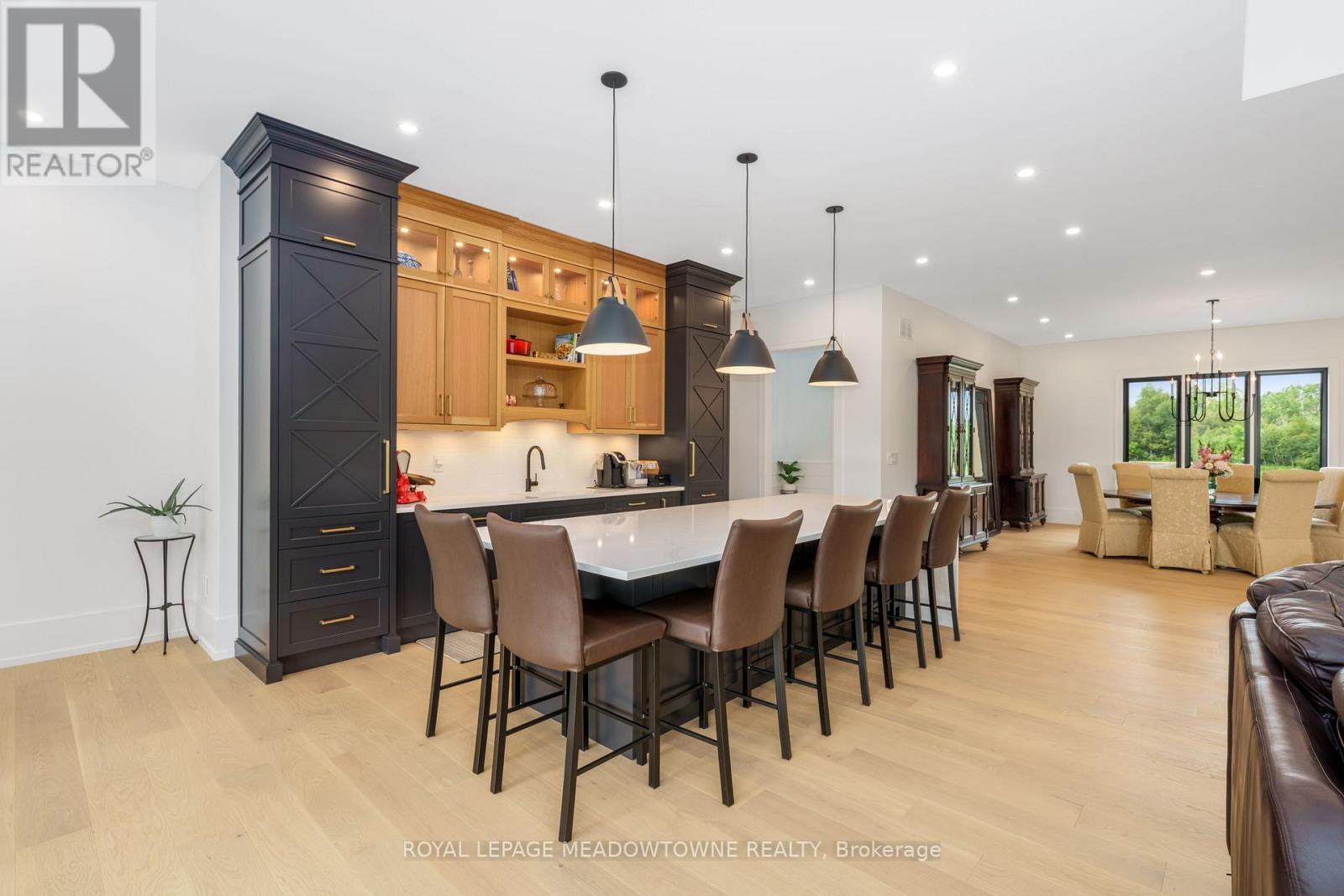 Welcome to an exceptional new custom-built Dramatic country estate offering over 9,000 sq.ft. of refined living space, set on 41 acres of private farmland and mature woods-all just one hour north of downtown Oakville, making country living effortlessly accessible. A long, gated private drive sets the tone for this meticulously crafted residence, where quality construction, thoughtful design, and timeless finishes come together. The dramatic great room showcases soaring ceilings, wide-plank white oak flooring, and a statement fireplace, flowing seamlessly into expansive dining and entertaining spaces. Oversized glass doors open to a covered outdoor living area with a second fireplace, creating a true four-season retreat surrounded by uninterrupted countryside views. At the heart of the home, the CHEF -inspired Prep kitchen features top-tier built in appliances, an oversized walk-in pantry, island for prepping and elegant custom finishes, ideal for both everyday living and large-scale entertaining. The primary suite is a private sanctuary with dual walk-in closets, tranquil views, and a spa-like ensuite. Three additional main-floor bedrooms each offer their own luxury ensuite bathrooms, providing comfort and privacy for family and guests alike. The fully finished lower level delivers exceptional versatility-perfect for extended family living, recreation, or entertaining. A separate self-contained one-bedroom Guest Suite with its own entrance adds flexibility for guests, multigenerational living. Completing the property is an impressive 2,500 sq.ft. heated and insulated attached garage/workshop, ideal for car enthusiasts, hobbyists, or entrepreneurs requiring substantial space. This is a rare opportunity to own a newly built, high-quality estate that delivers absolute privacy without sacrificing convenience-an unparalleled blend of craftsmanship, space, and location. (id:4555)