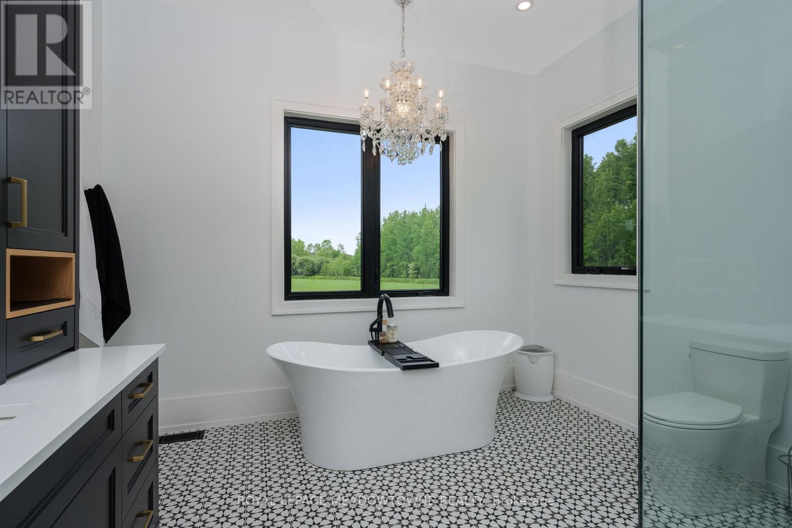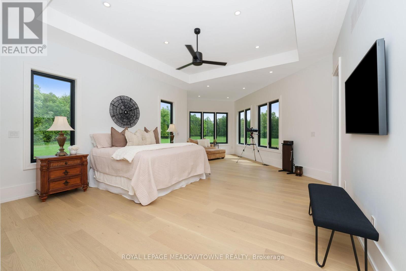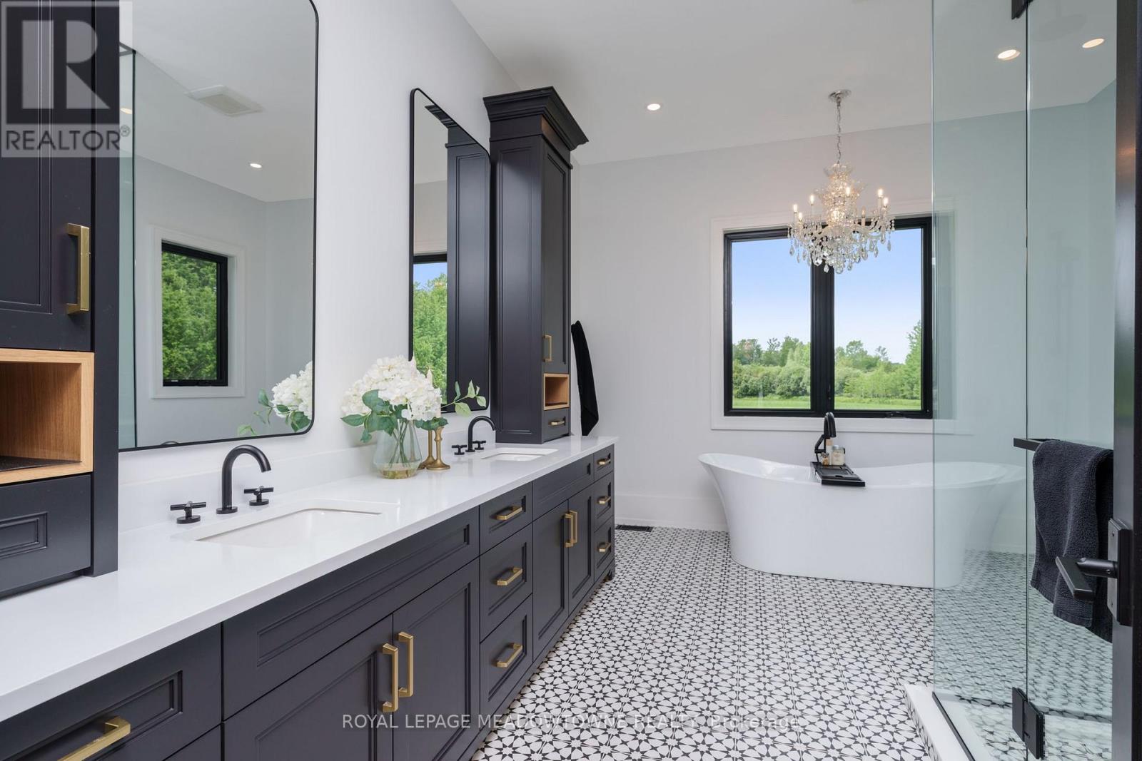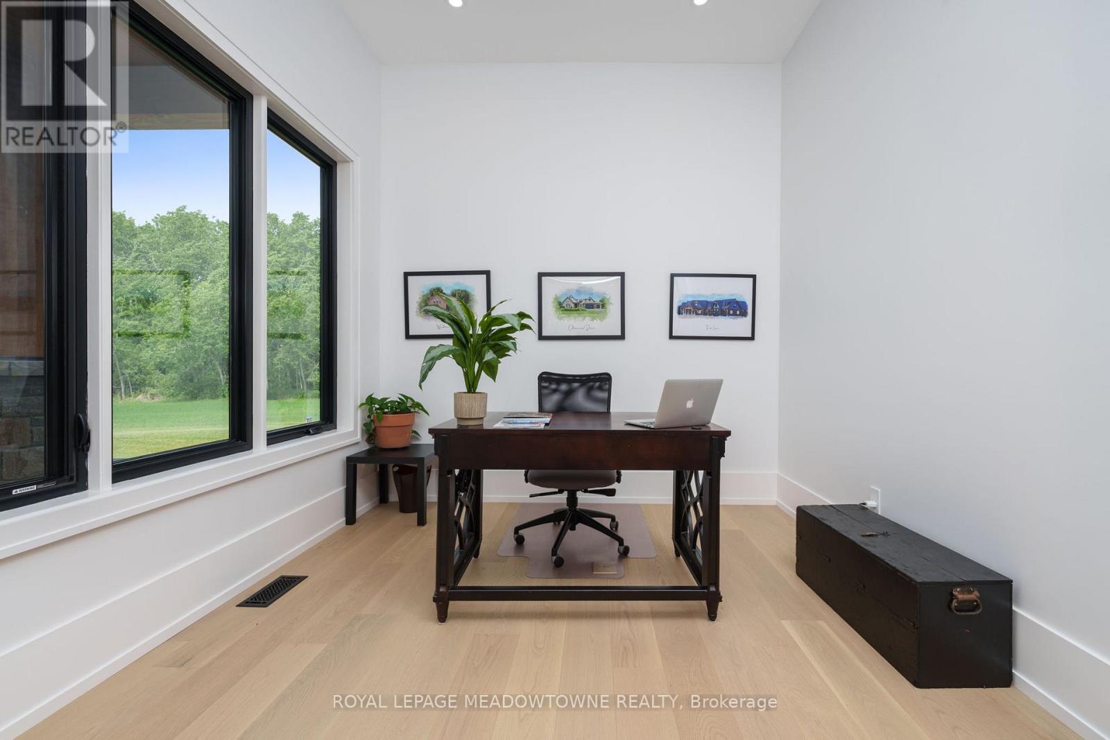 Welcome to an exceptional new custom-built Dramatic country estate offering over 9,000 sq.ft. of refined living space, set on 41 acres of private farmland and mature woods-all just one hour north of downtown Oakville, making country living effortlessly accessible. A long, gated private drive sets the tone for this meticulously crafted residence, where quality construction, thoughtful design, and timeless finishes come together. The dramatic great room showcases soaring ceilings, wide-plank white oak flooring, and a statement fireplace, flowing seamlessly into expansive dining and entertaining spaces. Oversized glass doors open to a covered outdoor living area with a second fireplace, creating a true four-season retreat surrounded by uninterrupted countryside views. At the heart of the home, the CHEF -inspired Prep kitchen features top-tier built in appliances, an oversized walk-in pantry, island for prepping and elegant custom finishes, ideal for both everyday living and large-scale entertaining. The primary suite is a private sanctuary with dual walk-in closets, tranquil views, and a spa-like ensuite. Three additional main-floor bedrooms each offer their own luxury ensuite bathrooms, providing comfort and privacy for family and guests alike. The fully finished lower level delivers exceptional versatility-perfect for extended family living, recreation, or entertaining. A separate self-contained one-bedroom Guest Suite with its own entrance adds flexibility for guests, multigenerational living. Completing the property is an impressive 2,500 sq.ft. heated and insulated attached garage/workshop, ideal for car enthusiasts, hobbyists, or entrepreneurs requiring substantial space. This is a rare opportunity to own a newly built, high-quality estate that delivers absolute privacy without sacrificing convenience-an unparalleled blend of craftsmanship, space, and location. (id:4555)
