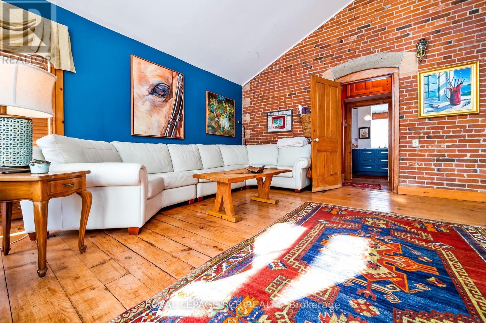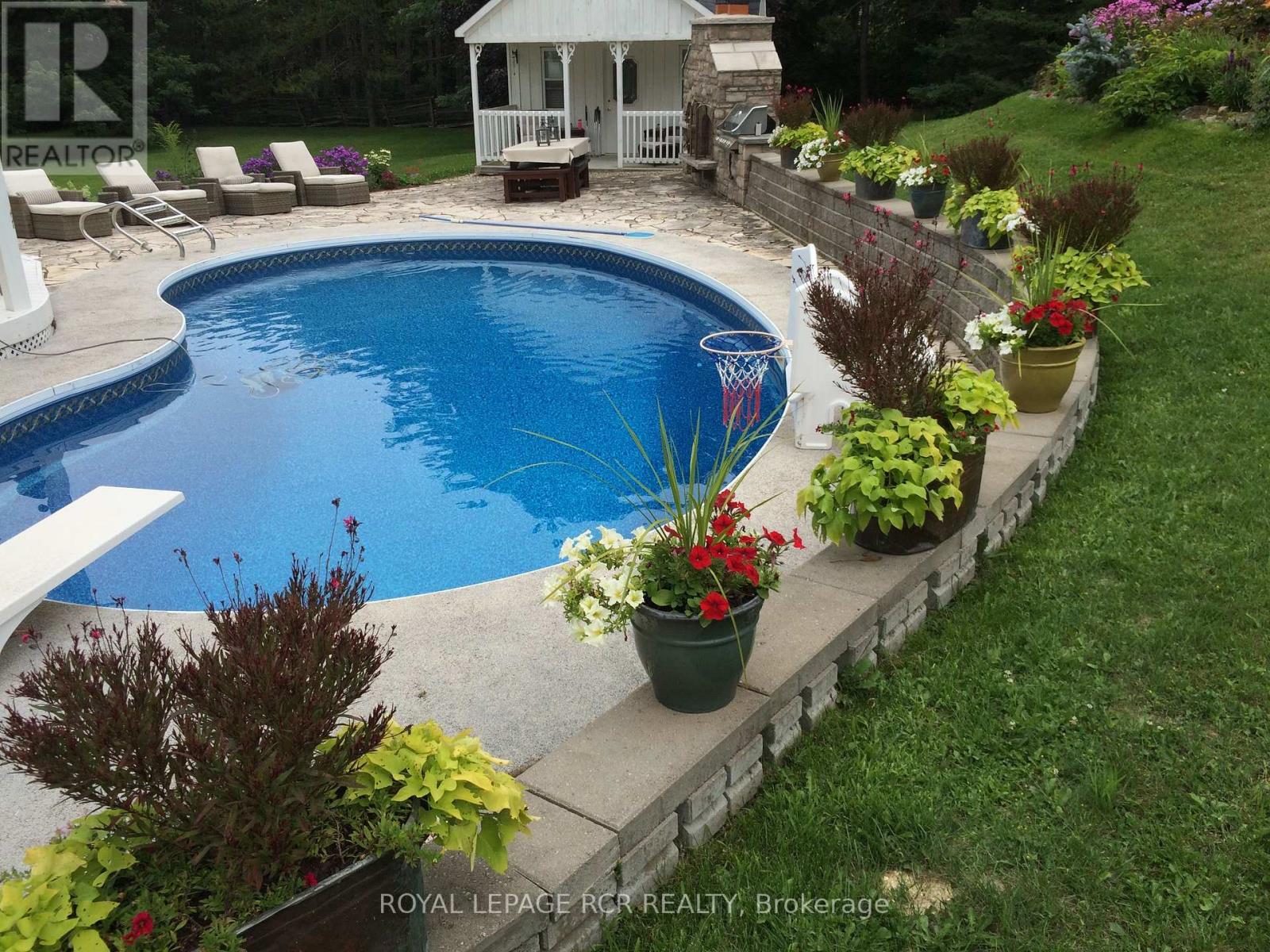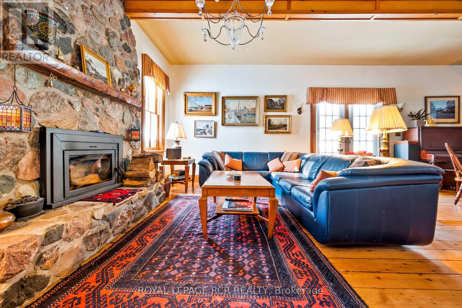 There is an unmistakable sense of romance & quiet artistry woven into this home, a feeling that settles in gently and stays. Painted by Trisha Romance in '83, the property carries a warmth & softness that feels timeless, as though it has always belonged to the land it rests on. Natural light fills the interior, reflecting off wide plank flooring & glowing through custom stained glass accents that add colour, character & a subtle sense of wonder to everyday moments. The home unfolds with an easy rhythm, offering spaces that feel both expansive & intimate, designed for connection, creativity, & calm. An expansive family room with fireplace, built in bar & walkout invites both lively gatherings & quiet evenings. The beautifully updated eat in kitchen features a generous island, JennAir appliances, & a welcoming breakfast nook, flowing into the formal dining room for effortless entertaining. A private office & a separate living room with fireplace & walkout offer peaceful retreats, while main floor laundry & a sixth bed add flexibility to daily life. Upstairs, five beds provide space to gather & unwind, including a serene primary suite with soaker tub, four piece ensuite & walk in cedar closet. Two finished lower levels extend the living space, offering room for recreation, hobbies, or tucked away escapes. Outdoors, the lifestyle truly shines. An inground pool is paired with a pool house that also serves as a charming bunkie, while a pizza oven sets the scene for long evenings under open skies. The property spans over 22 acres, with 19 acres forested & enrolled in the Managed Forest Tax Incentive Program, creating privacy & a deep connection to nature. A classic barn with two stalls, two paddocks, equipped chicken coops, an attached three car garage & a detached workshop with hydro complete this refined rural offering. This is a place where art, nature & daily life intertwine, inviting you to slow down, breathe deeply & imagine a life shaped by beauty & quiet luxury!!! (id:4555)