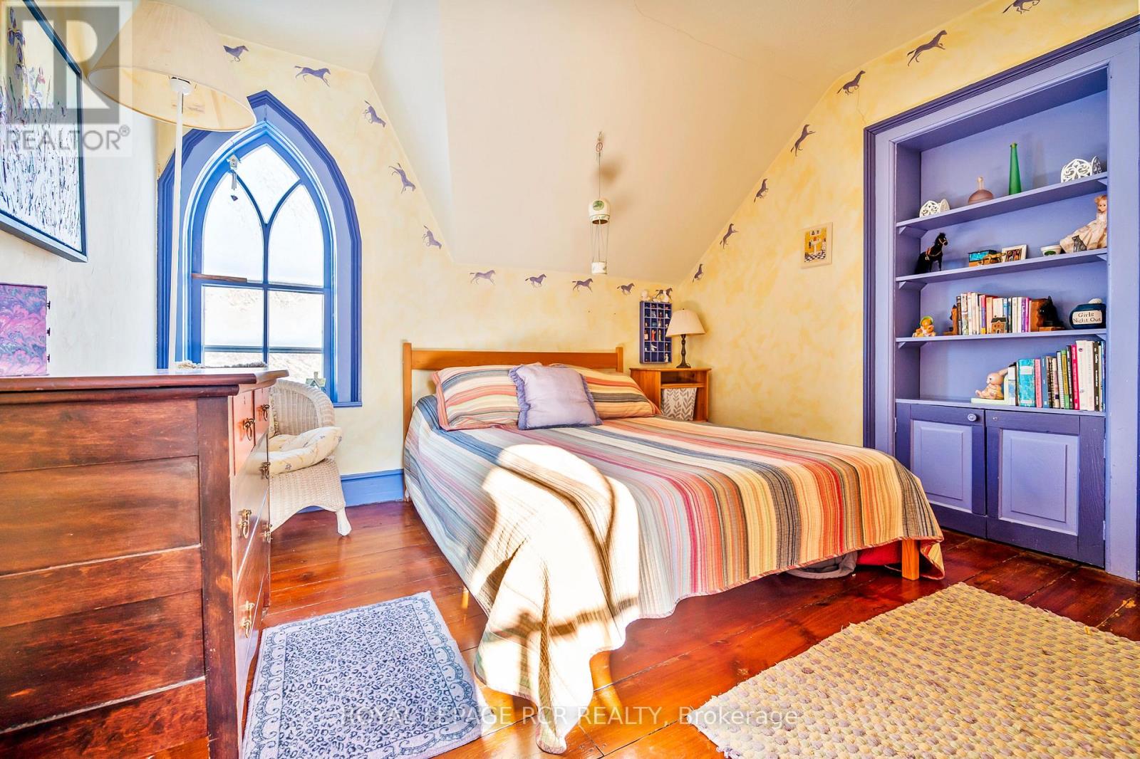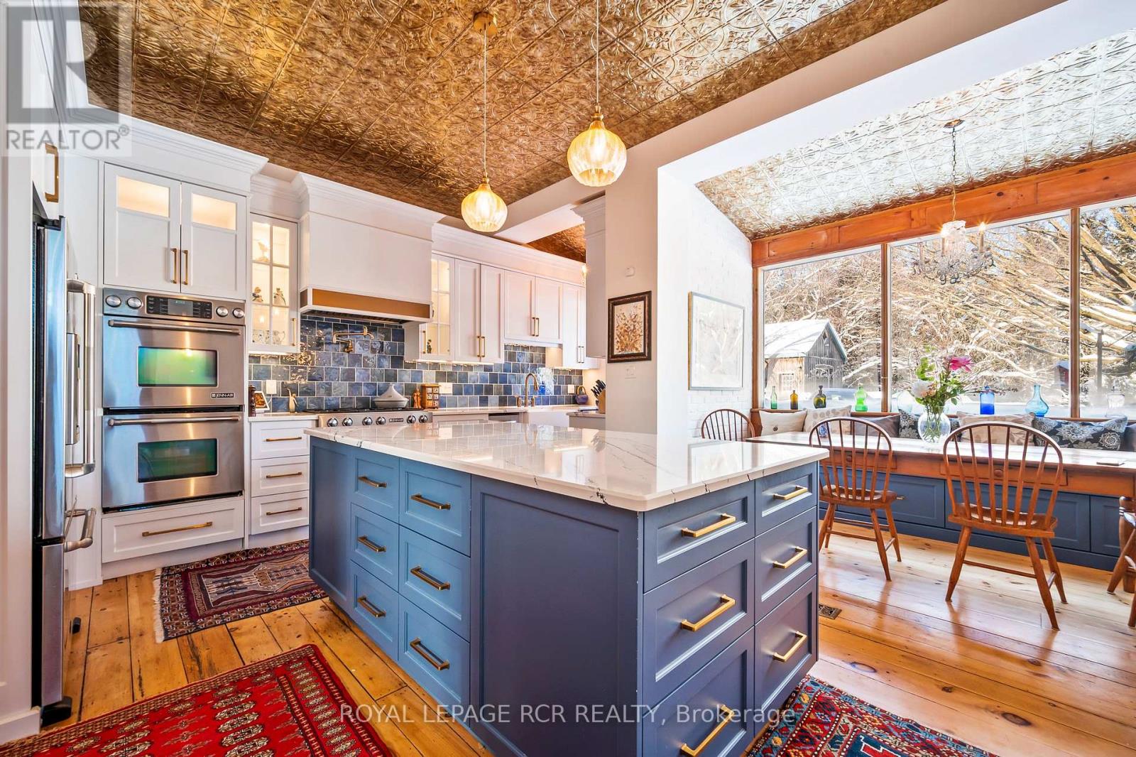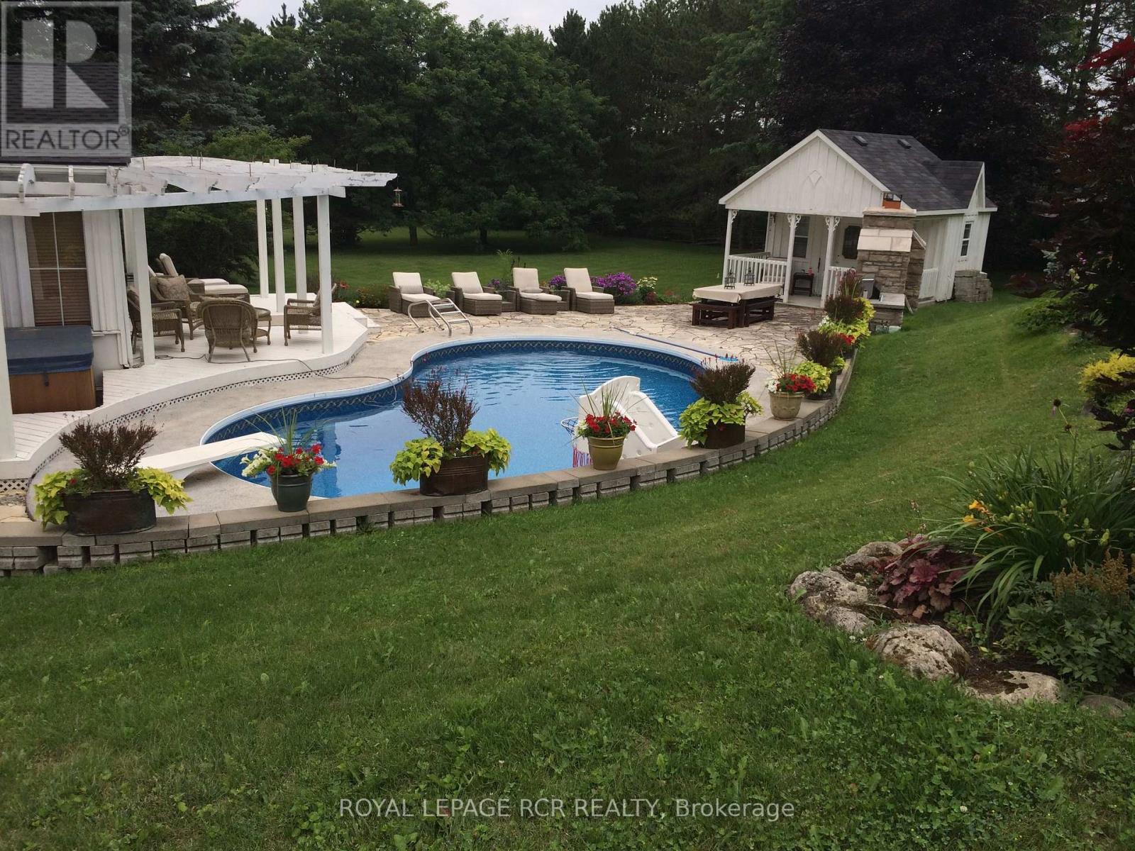 There is an unmistakable sense of romance & quiet artistry woven into this home, a feeling that settles in gently and stays. Painted by Trisha Romance in '83, the property carries a warmth & softness that feels timeless, as though it has always belonged to the land it rests on. Natural light fills the interior, reflecting off wide plank flooring & glowing through custom stained glass accents that add colour, character & a subtle sense of wonder to everyday moments. The home unfolds with an easy rhythm, offering spaces that feel both expansive & intimate, designed for connection, creativity, & calm. An expansive family room with fireplace, built in bar & walkout invites both lively gatherings & quiet evenings. The beautifully updated eat in kitchen features a generous island, JennAir appliances, & a welcoming breakfast nook, flowing into the formal dining room for effortless entertaining. A private office & a separate living room with fireplace & walkout offer peaceful retreats, while main floor laundry & a sixth bed add flexibility to daily life. Upstairs, five beds provide space to gather & unwind, including a serene primary suite with soaker tub, four piece ensuite & walk in cedar closet. Two finished lower levels extend the living space, offering room for recreation, hobbies, or tucked away escapes. Outdoors, the lifestyle truly shines. An inground pool is paired with a pool house that also serves as a charming bunkie, while a pizza oven sets the scene for long evenings under open skies. The property spans over 22 acres, with 19 acres forested & enrolled in the Managed Forest Tax Incentive Program, creating privacy & a deep connection to nature. A classic barn with two stalls, two paddocks, equipped chicken coops, an attached three car garage & a detached workshop with hydro complete this refined rural offering. This is a place where art, nature & daily life intertwine, inviting you to slow down, breathe deeply & imagine a life shaped by beauty & quiet luxury!!! (id:4555)