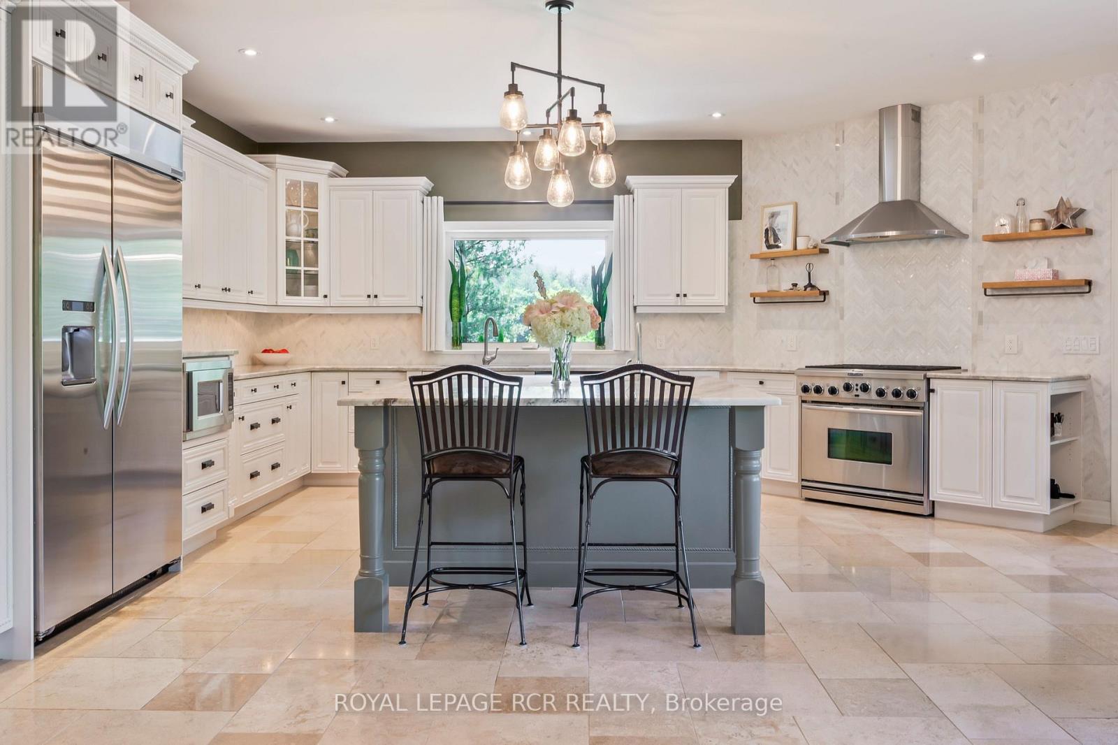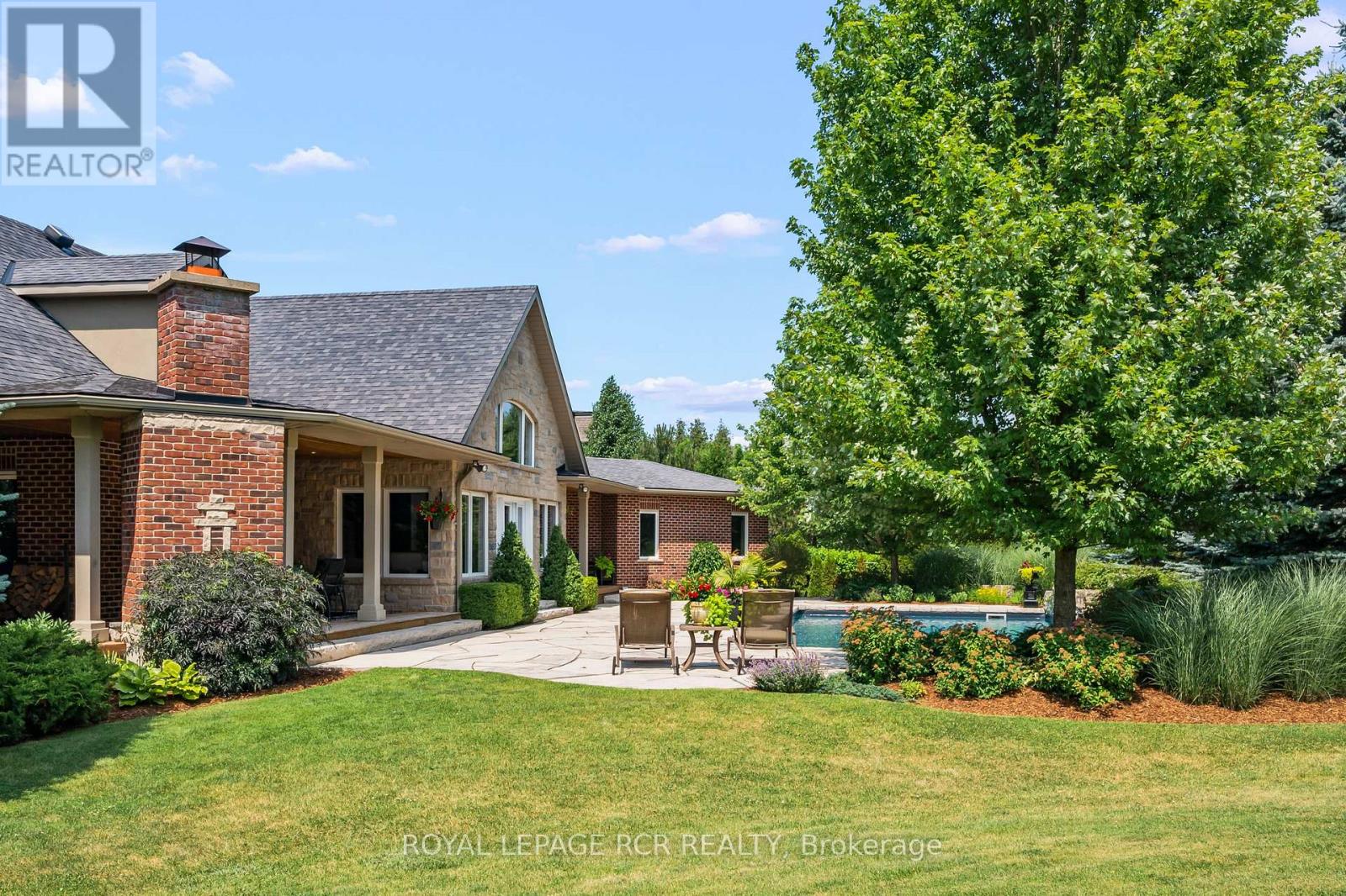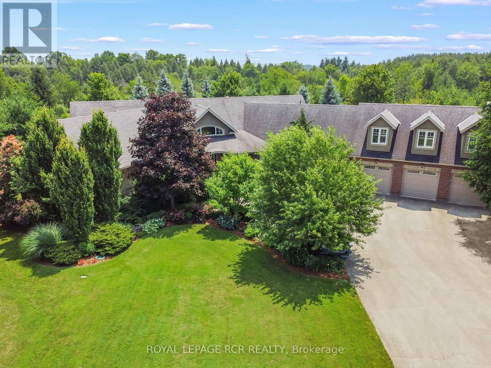 Welcome to your own private paradise just outside of Erin - where luxury, lifestyle, and location converge. This exquisite executive bungalow offers approximately 8,000 sq ft of total finished living space, blending comfort, elegance, and thoughtful design, both inside and out. Set on a beautifully landscaped lot just over an acre, the property is fully fenced and equipped with an in-ground sprinkler system. The backyard is a true oasis for relaxation and entertainment. Dive into the saltwater pool with a cascading waterfall, unwind in the covered hot tub, or host gatherings under the covered porch featuring cedar ceilings, outdoor speakers, a TV, and a wood-burning fireplace for cozy evenings. This outdoor space feels like your private resort, perfect for summer parties or tranquil morning coffees amid lush gardens. Inside, the main floor spans 3,500 sqft with soaring cathedral ceilings in the stunning great room. Durable bamboo flooring and a double- sided fireplace enhance the home's heart, while the eat-in chef-inspired kitchen, updated in 2022, boasts high-end appliances and ample prep space, ideal for daily meals or entertaining. Three generous bedrooms on the main level each offer their own ensuite bathrooms, including the luxurious primary suite with heated floors in both the ensuite and shoe room, a soaker tub beside a fireplace feature, and a walkout to the hot tub. A versatile 1,000 sqft loft above the oversized 3-car garage serves as guest space or a home studio, complete with a three piece bathroom with heated floors. The finished lower level adds approximately 3,500 sqft of living space, featuring heated floors, two bedrooms, two full baths, and a full kitchen. With smart technology and premium finishes, this home is not just a residence; it's a lifestyle. Close to schools, shopping, dining, equestrian centres, golf, and the nearby Elora Cataract Trail, it offers everything you need for a luxurious life. (id:4555)