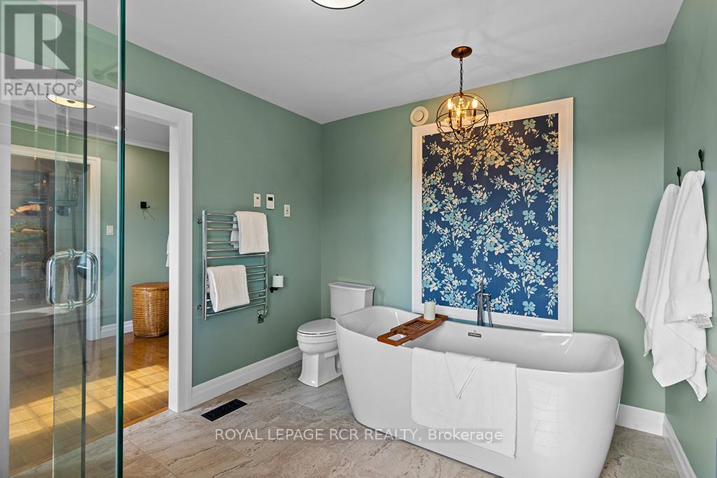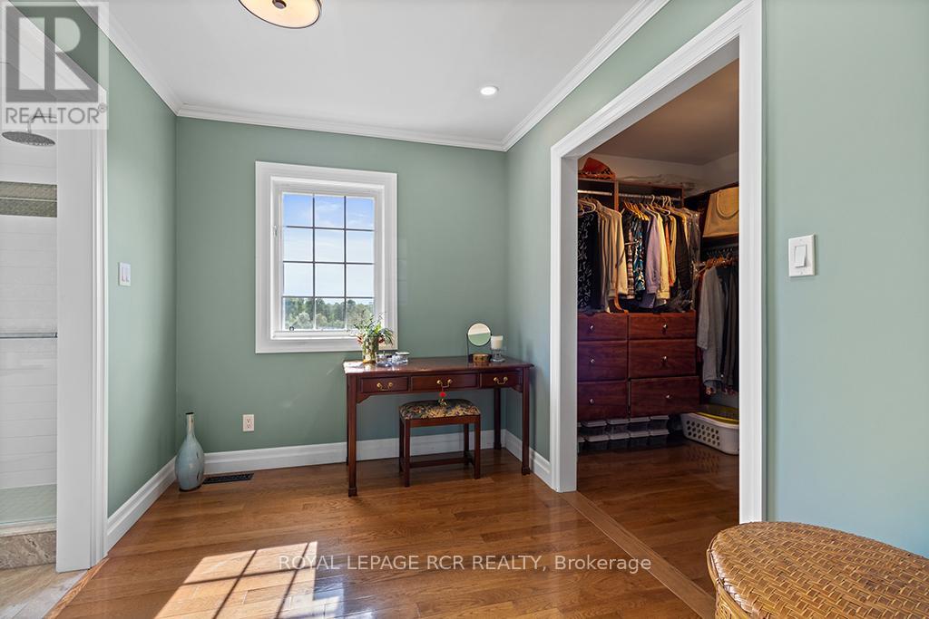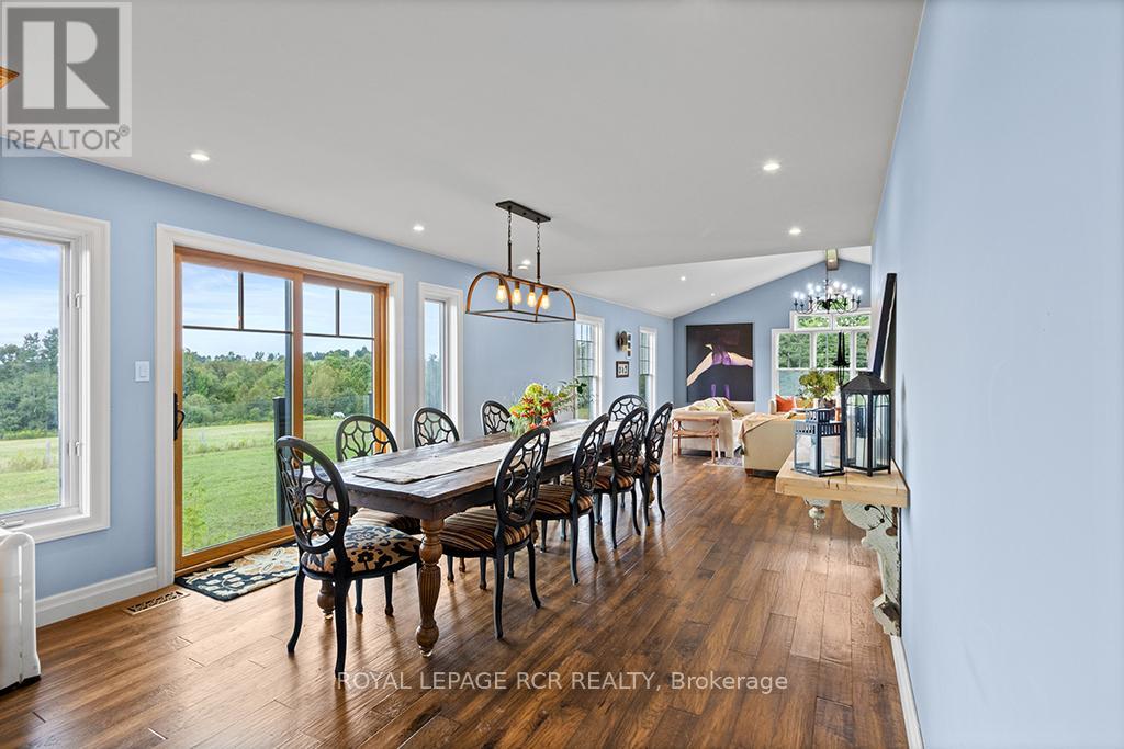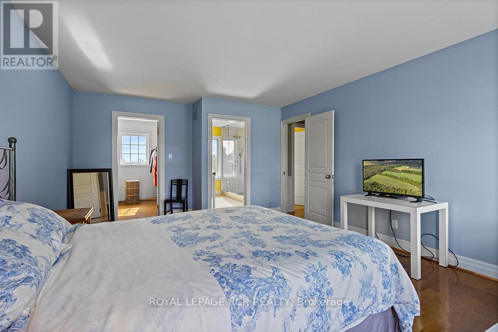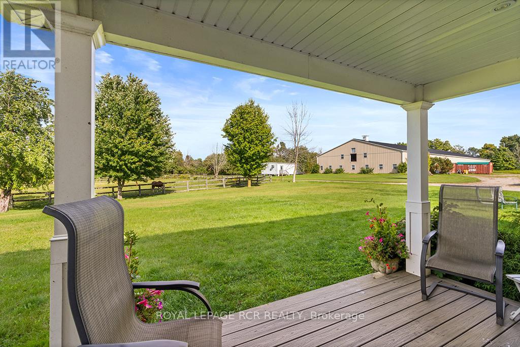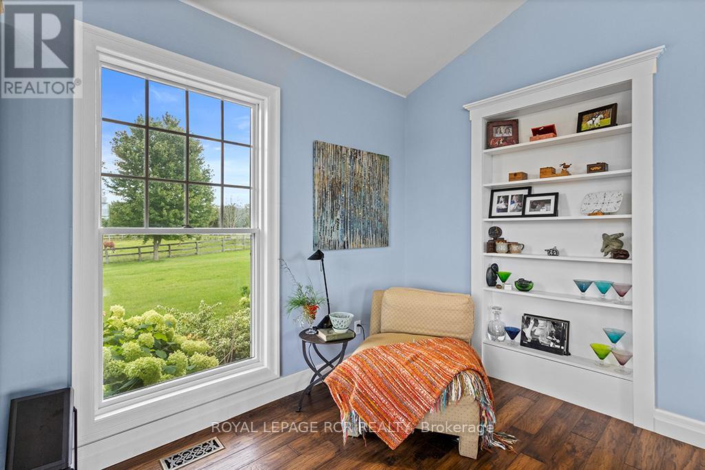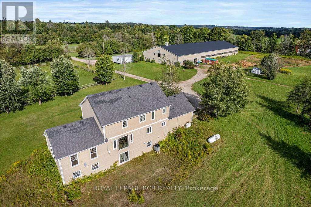 Where Horse, Home, and Heart Align. Set among premier horse farms in elite equestrian country, this exceptional 49-acre estate is designed for those whose days begin in the barn aisle and end planning the next ride. Ten lush paddocks with frost-free hydrants and hydro support seamless, year-round horsekeeping, while the insulated, ventilated 20-stall steel barn features a heated tack room, wash and grooming stalls, feed room, 3-piece bath, & hay storage above with convenient drops - efficient and rider-friendly. The attached 76' x 160' indoor arena with operable windows allows consistent training through every season, perfect for winter miles and polishing flatwork. Outdoors, a large jumping field, 150' x 200' sand ring, and grass dressage field support show-ready schooling to relaxed hacks, while two productive hayfields enhance self-sufficiency. The 1997-built residence offers comfort after long days in boots and breeches, with hand-scraped wide-plank hickory floors, 9' and cathedral ceilings, and abundant natural light. The updated chef's kitchen with Wolf cooktop, leathered granite counters, and generous island opens to the dining area and Great Room with beamed cathedral ceiling. A main-floor bedroom with ensuite adds flexibility; upstairs are three additional bedrooms and updated baths with heated floors and towel warmers. The primary suite includes a dressing room, custom walk-in closet, and spa-inspired ensuite. Walk-out lower level awaits future plans. Upgrades include a 2024 cold-climate heat pump with propane furnace backup, Generac generator supporting essential farm systems, and newer Goodfellow siding. Minutes from Angelstone, Meadowlarke North, and Palgrave-where life with horses feels perfectly in stride. A thoughtful layout keeps routines efficient, from first feed to final night check, with easy flow between barn, arena, & home-ideal for competitors or passionate riders seeking a turnkey property ready to enjoy from day one. Ready to tack up now. (id:4555)