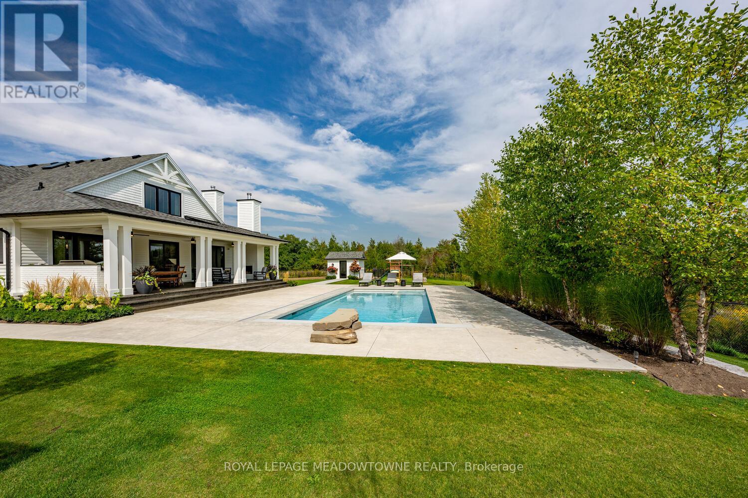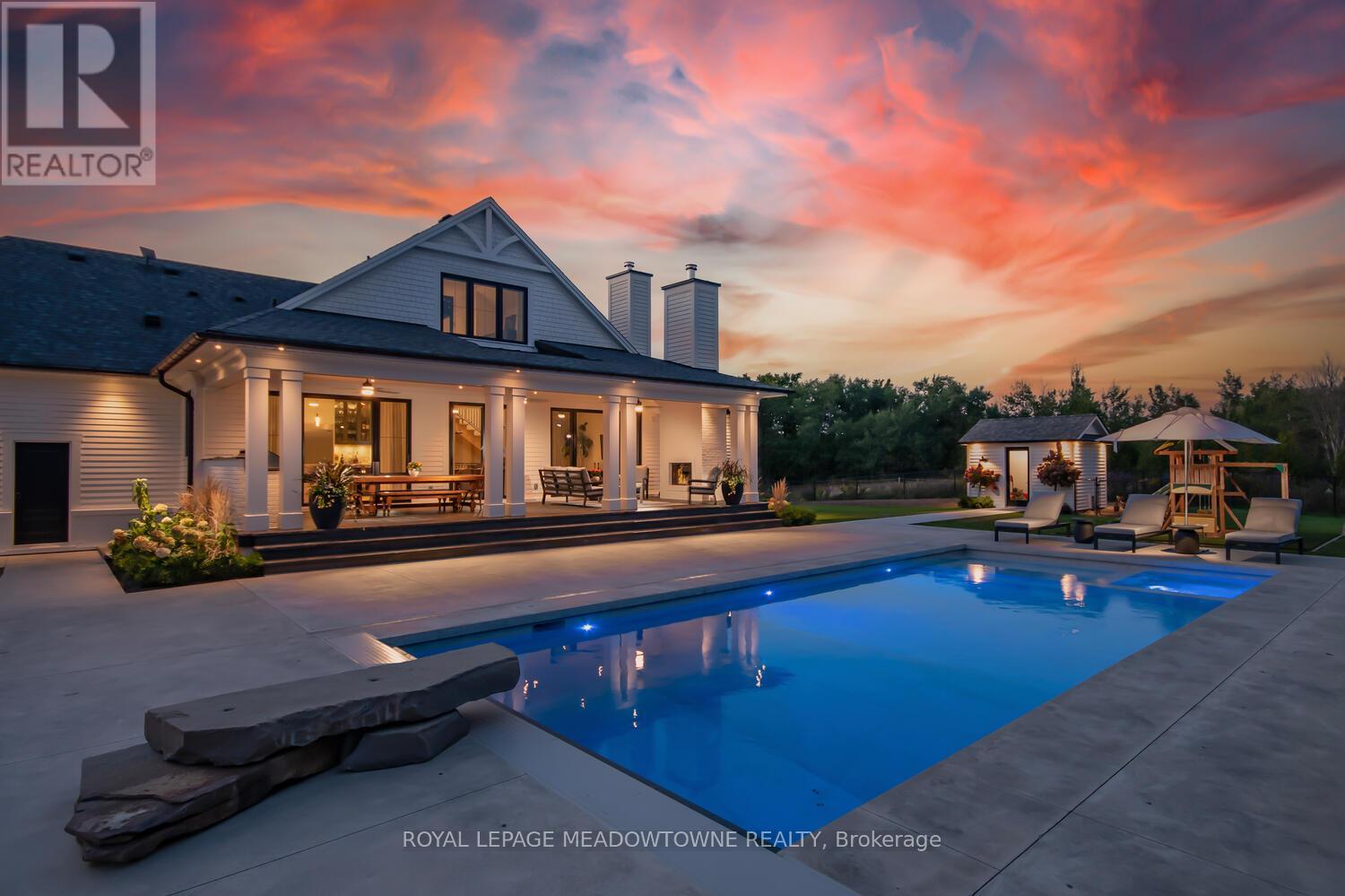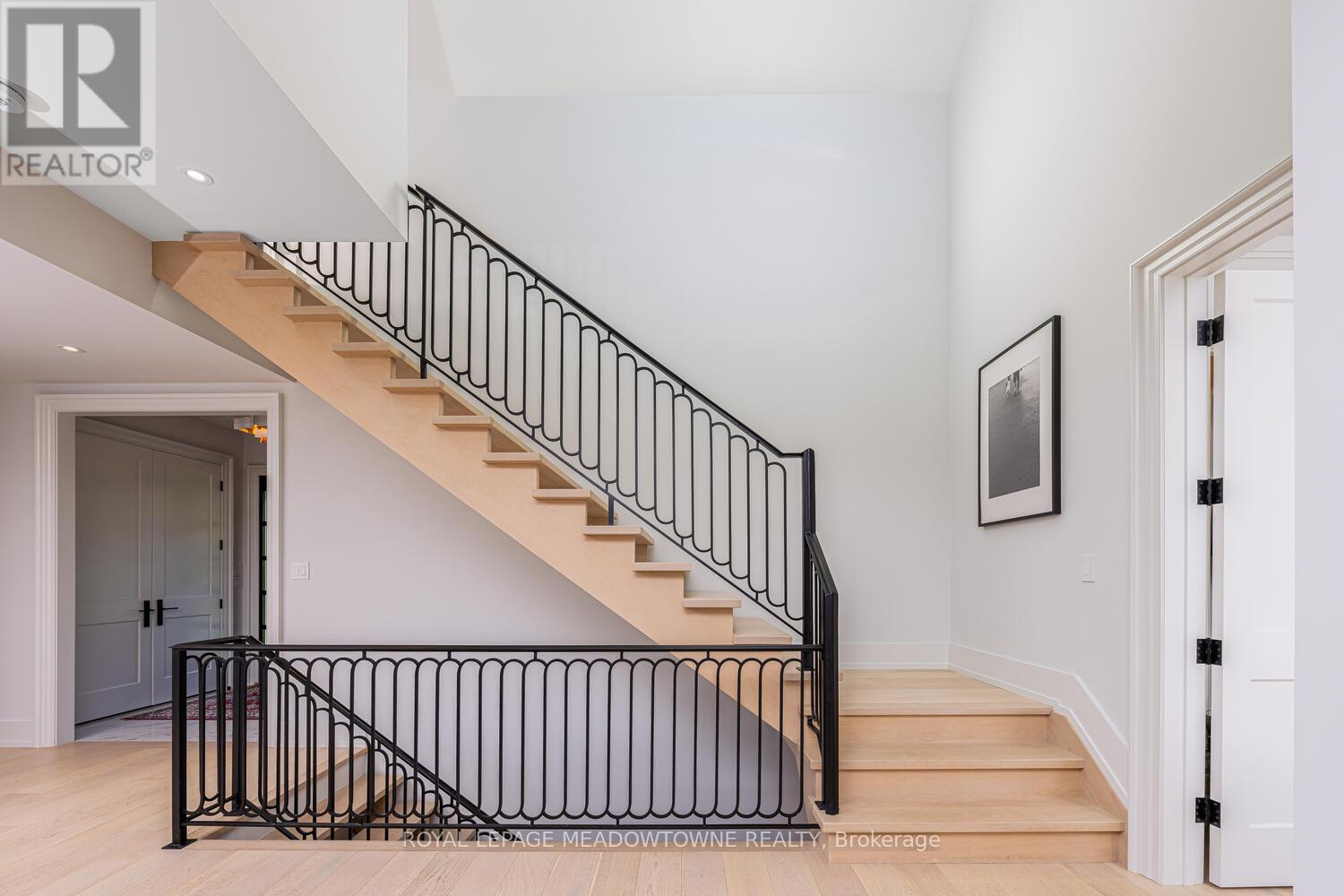 When Home is a Sanctuary: From the moment you drive through the gates of this John Wilmott-designed custom home, every detail speaks of exceptional craftsmanship. The handcrafted modular brick and Cape Cod siding set the tone, while the crushed granite flagstone path leads to a stunning Mahogany entry door. Step inside to soaring 10-ft ceilings, White Oak flooring, custom Poplar trim, and elegant crown mouldings - a home that truly inspires.The heart of the home is thekitchen with marble counters, opening to a covered back porch featuring a brick fireplace, built-in BBQ, concrete pool and spa, and a seamless speaker system - perfect for entertaining year-round.Relax in the main-floor principal bedroom with a spa-like ensuite, curbless shower, and a large walk-in closet. A main-floor office, powder room, and laundry complete the level. Upstairs, two additional bedrooms and a bathroom provide space for family or guests.The lower level boasts a large family room with above-grade windows and fireplace, an additional bedroom and bath, a sizable exercise room with rubber flooring, and ample storage with built-in cupboards.Step outside to thoughtfully designed landscaping for privacy and impact. Park with ease in the oversized 2-car garage with epoxy floors or take advantage of the additional detached garage with heated floors, a 3-piece bath/change room, and a custom wood-burning oven.This isn't just a home - it's a lifestyle of luxury, attention to detail, and timeless design. (id:4555)