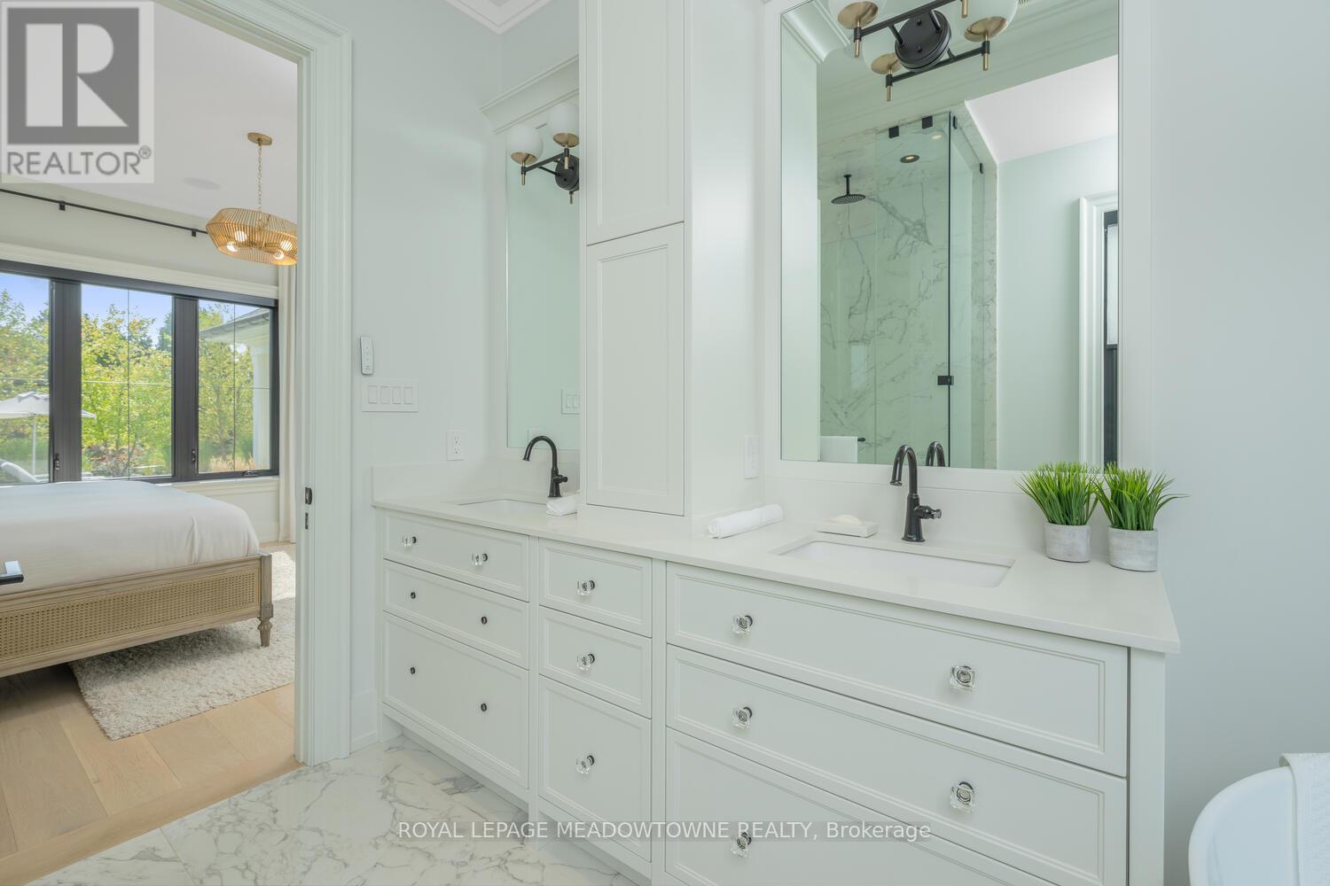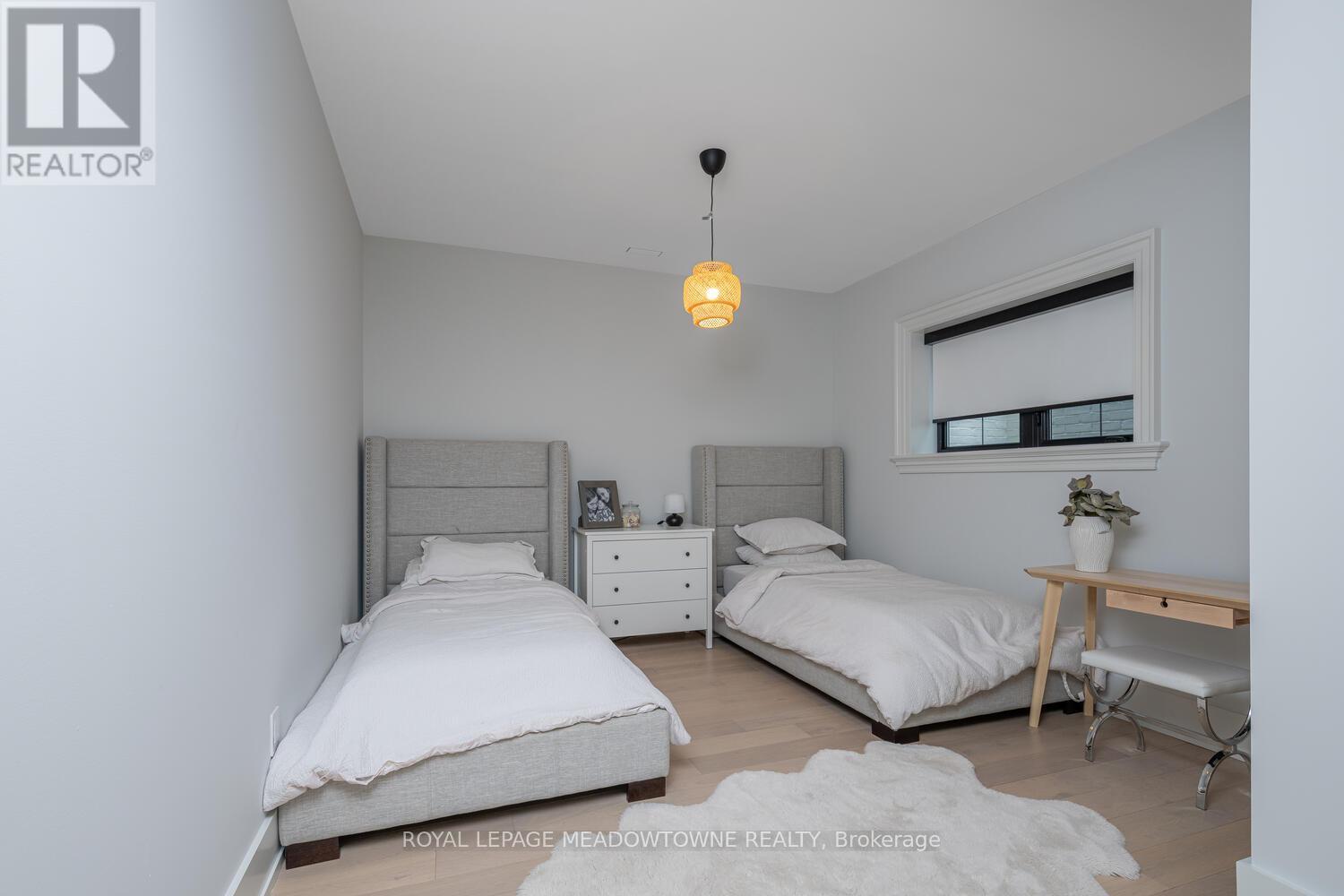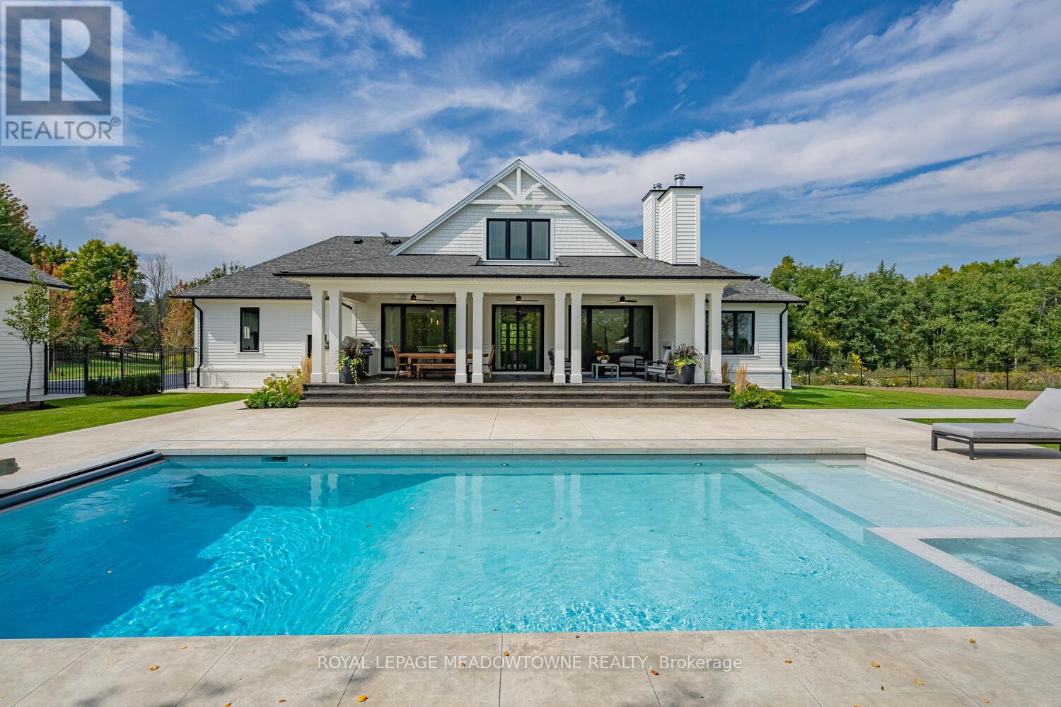 When Home is a Sanctuary: From the moment you drive through the gates of this John Wilmott-designed custom home, every detail speaks of exceptional craftsmanship. The handcrafted modular brick and Cape Cod siding set the tone, while the crushed granite flagstone path leads to a stunning Mahogany entry door. Step inside to soaring 10-ft ceilings, White Oak flooring, custom Poplar trim, and elegant crown mouldings - a home that truly inspires.The heart of the home is thekitchen with marble counters, opening to a covered back porch featuring a brick fireplace, built-in BBQ, concrete pool and spa, and a seamless speaker system - perfect for entertaining year-round.Relax in the main-floor principal bedroom with a spa-like ensuite, curbless shower, and a large walk-in closet. A main-floor office, powder room, and laundry complete the level. Upstairs, two additional bedrooms and a bathroom provide space for family or guests.The lower level boasts a large family room with above-grade windows and fireplace, an additional bedroom and bath, a sizable exercise room with rubber flooring, and ample storage with built-in cupboards.Step outside to thoughtfully designed landscaping for privacy and impact. Park with ease in the oversized 2-car garage with epoxy floors or take advantage of the additional detached garage with heated floors, a 3-piece bath/change room, and a custom wood-burning oven.This isn't just a home - it's a lifestyle of luxury, attention to detail, and timeless design. (id:4555)