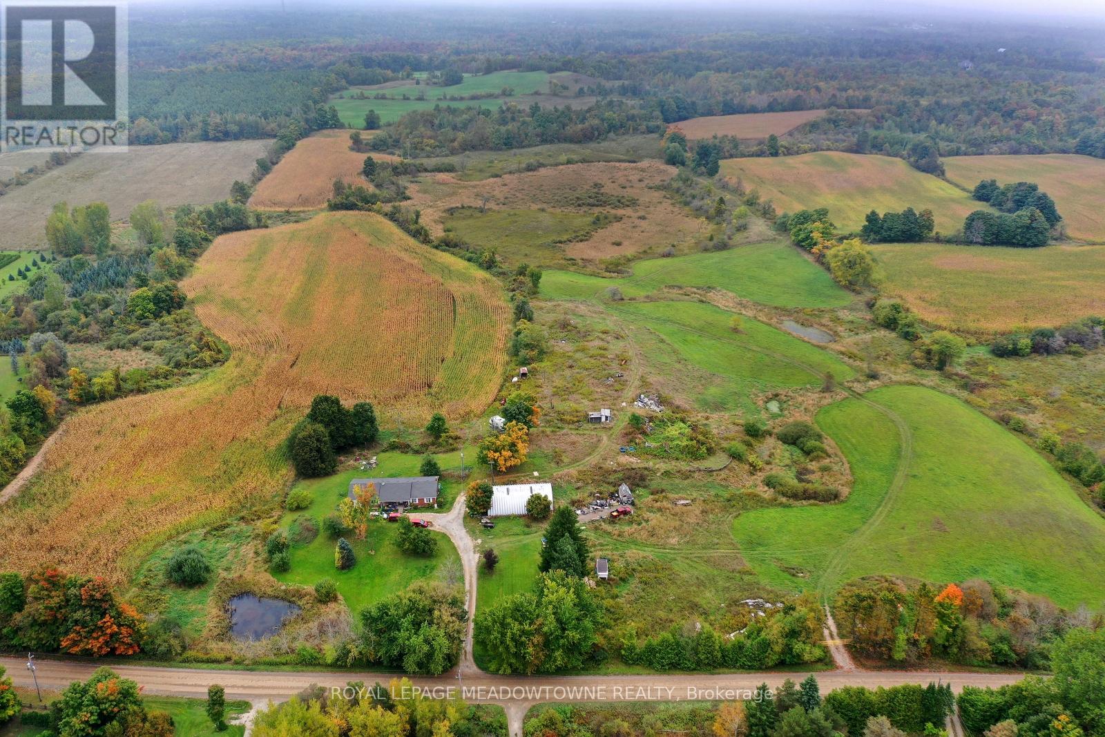 This is one of the most stunning stretches of 99.5 acres of countryside I've ever explored on foot featuring gentle rolling hills and quiet ponds with clusters of trees dotting the landscape. This family bungalow was erected in 1991 and is a custom modular pre-fab home built by Quality Homes.The main floor features 3 good size bedrooms, 2.5 baths, primary ensuite, huge eat in kitchen, family room, dining room and main floor laundry. This spacious layout-1,826 sq ft on the main floor and 1,850 sq ft in the unfinished basement is waiting your personal touch and in need of TLC. Welcome to 5167 Fifth Line located in the south central rural portion of Erin Township on a gravel road. The property is located just north of paved Wellington Road 50 with easy access to Trafalgar Road. Close to Guelph, Georgetown and the 401. Whether you're envisioning a private retreat or an entrepreneurial venture, this location offers endless possibilities. The property features 55 workable/farmed acres currently planted in corn. With an attached single-car garage, there is room to create something special here. The essentials are in place-forced air gas furnace (2011), well, septic pumped and inspected in 2024, 200-amp breaker panel plus a pony panel to service the steel Quonset outbuilding measuring 55'x38' sitting on a concrete pad. This building adds to the functionality of the property, perfect for storage or a workshop. Raise your family in the country with a slower pace of life and school bus pick up at your driveway. Located in a serene rural setting, yet close enough to town, this property is a rare find. With some land clearing and tile drainage, there's potential to expand the workable land by another 15 acres. Spend time by the pond and enjoy the sounds of Sandhill Cranes, Deer, Turkey, Ducks and Geese. If you're seeking a peaceful lifestyle with room to grow, this could be your perfect match. (id:4555)