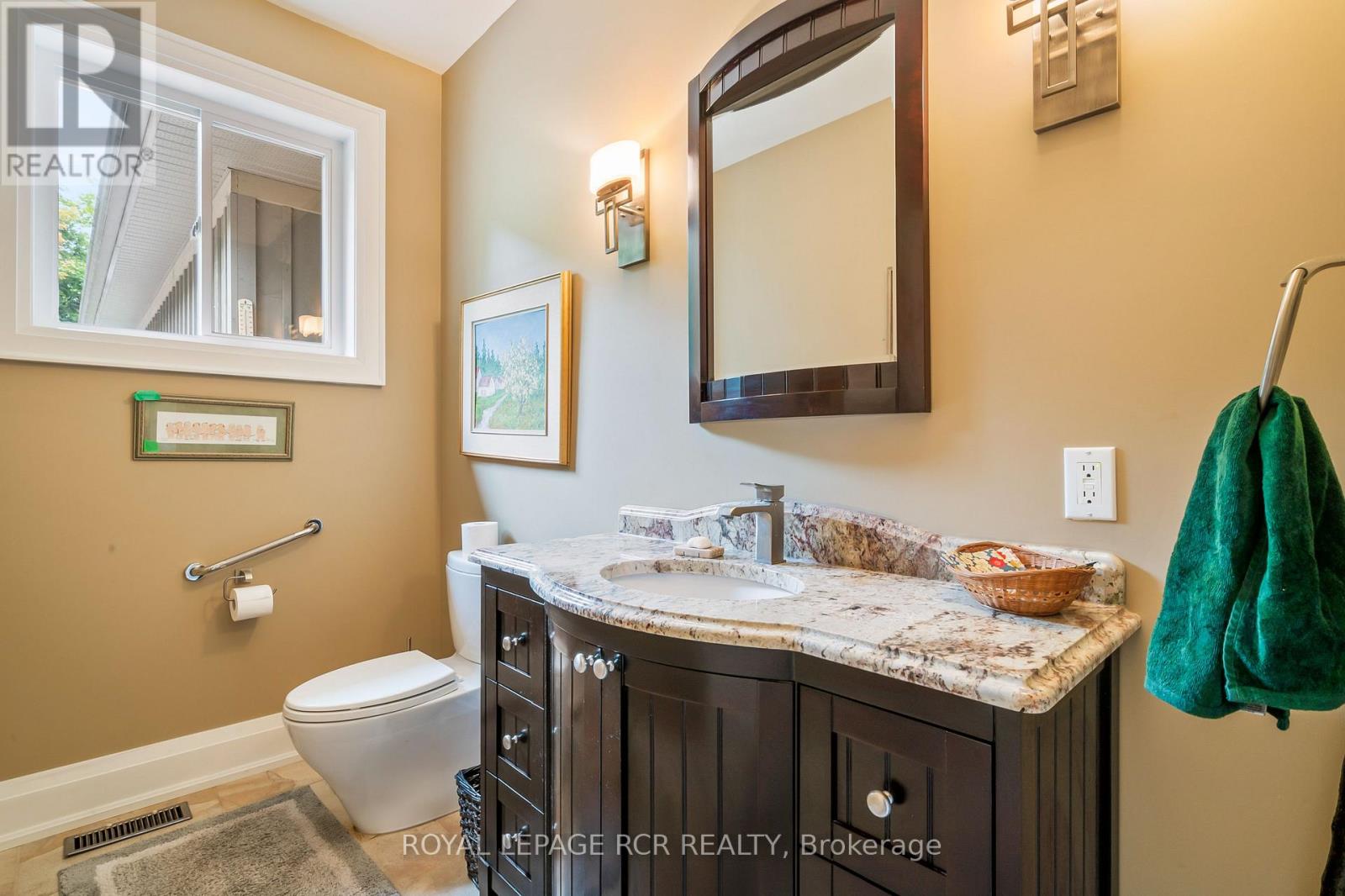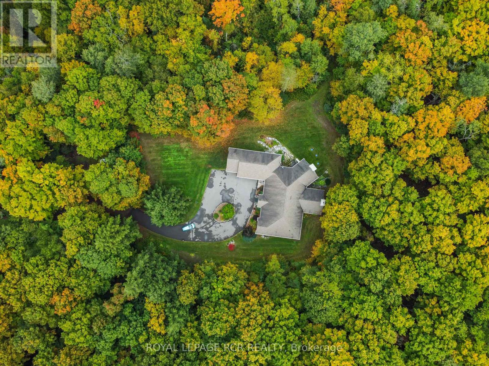Set on 44.49 acres of rolling land with trails, a spring-fed pond, and the Eramosa Creek running through, this custom-built residence is a rare retreat where quality and comfort meet the beauty of nature. Thoughtfully designed with over 4,500 square feet of total living space, it offers 3 bedrooms, 3 bathrooms, and an oversized 3-car garage. Inside, every detail speaks to craftsmanship: hardwood and ceramic flooring, a chef's kitchen with granite counters, stainless steel appliances, custom cabinetry, and a generous centre island. The soaring great room features cathedral ceilings and a striking gas fireplace, where walls of windows bring the outdoors in and frame panoramic views. A highlight of the home is the expansive screened-in sunroom, complete with its own fireplace, a perfect spot to enjoy summer evenings or crisp autumn mornings surrounded by nature. The primary suite is designed as a private retreat, offering a walk-in closet and a luxurious 4-piece ensuite with a soaker tub tucked beneath corner windows, where you can unwind while gazing out at the trees and sky. The fully finished lower level provides a wealth of additional living space, warmed with in-floor heating and brightened by above-grade windows. A walkout extends the living space outdoors, offering easy access to the acreage beyond. Geothermal heating, natural gas, and efficient in-floor systems add to the home's comfort and sustainability, while a Generac backup generator provides peace of mind during any power interruption. With previous GRCA approval for a future workshop, the possibilities here are as impressive as the setting itself. (id:4555)