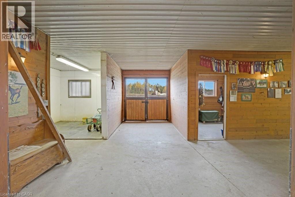 Welcome to this exceptional 35-acre equestrian property, offering the perfect blend of professional horse facilities and peaceful country living — ideally located just 8 minutes from Angelstone Events. With 18 acres of productive land currently in hay, the property provides excellent potential for agricultural income, boarding, training, or your own private hobby farm. Designed with horse enthusiasts in mind, the impressive steel 18-stall barn includes a 70’ x 120’ indoor riding arena, hot & cold wash bay, spacious tack room, and hay storage capacity for up to 2,500 bales. 8 well-maintained paddocks provide excellent turnout, making daily operations efficient and this facility truly turn-key. The charming side-split home offers comfortable family living surrounded by beautiful countryside views. Vaulted ceilings and French doors create a bright and inviting atmosphere throughout the living and dining areas, which open onto a large back deck overlooking the paddocks and inground pool — the perfect place to unwind after a day at the barn. The spacious kitchen offers abundant counter space and storage, along with double French doors leading to the backyard for seamless indoor-outdoor living. The main floor features laundry, a powder room, & a versatile bedroom currently used as an office, ideal for a home-based business or guest suite. Upstairs you’ll find three generous bedrooms, including a primary suite with walk-in closet, soaker tub, and glass shower, plus a second full bath with a large walk-in shower. The finished basement provides additional living space with a large rec room, bedroom, modern full bath, and plenty of storage. Down here you will find the generator that is wired to run the whole house if you loose power. Convince at your finger tips. Electrical upgraded in 2007. A rare opportunity to own a fully equipped horse property paired with a comfortable family home in a peaceful rural setting just minutes from town amenities. (id:4555)