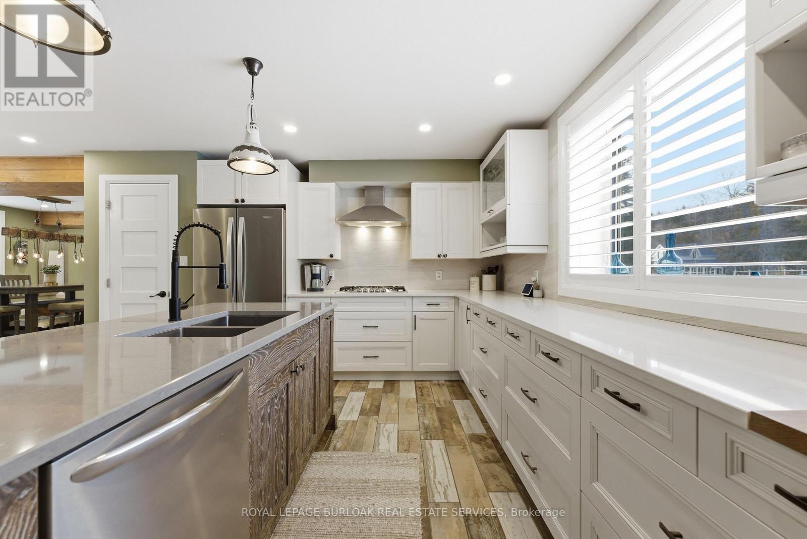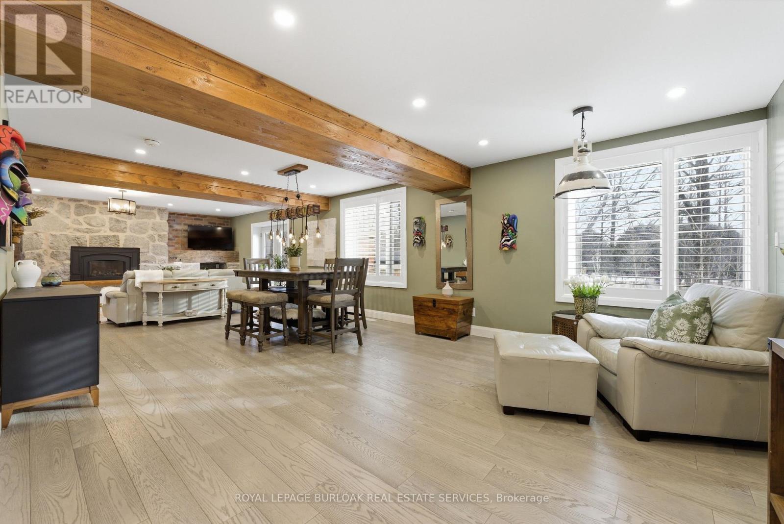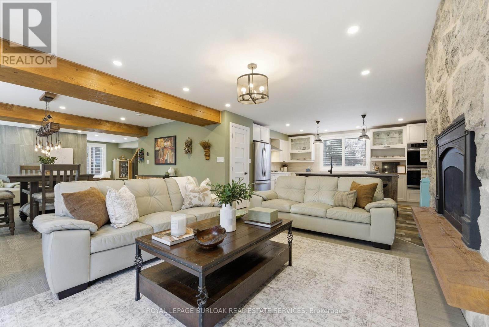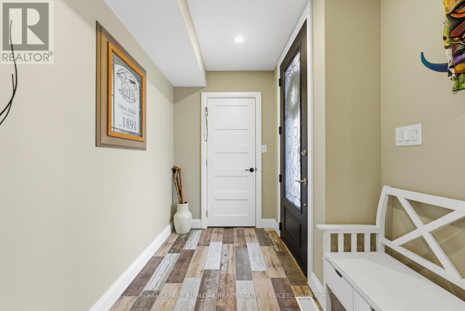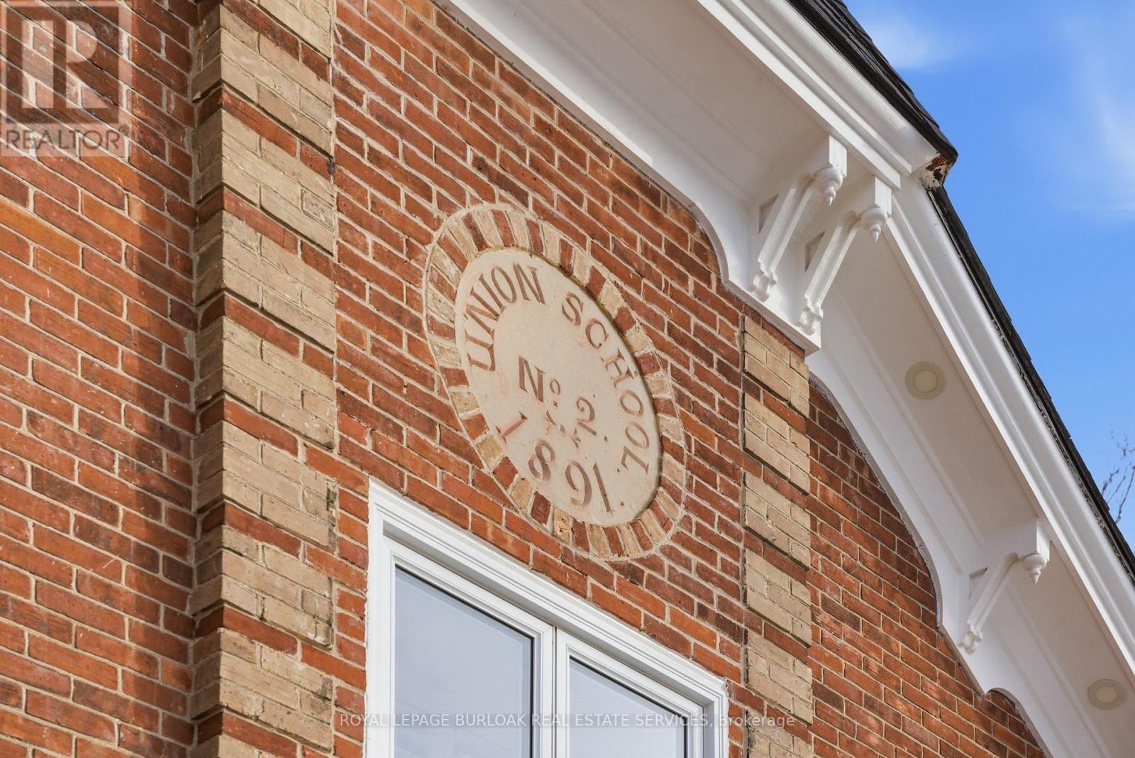 This 1891 schoolhouse in Erin is a rare offering, blending over 130 years of history with a full-scale restoration completed in 2020. Originally a one-room school for grades 1-8, the home has been fully gutted and rebuilt, preserving its historic charm while delivering modern comfort and structural integrity. The exterior showcases restored red brick, a functional rooftop school bell, and three stone patios at the front, side, and rear-ideal for outdoor dining, entertaining, or quiet mornings. Original "Boys" and "Girls" entrances remain as a nod to the home's past. Inside, the open-concept main floor features 9-ft ceilings, exposed wood beams, and a striking stone propane fireplace that anchors the space. The kitchen is designed for entertaining with white cabinetry, quartz counters, a large grey quartz island with seating for four, stainless steel appliances including a propane stove, and double wall ovens. A mudroom with wrought iron gate provides practical access to the backyard. Upstairs, six skylights flood the space with natural light, highlighting a versatile loft. The primary suite offers a remote-controlled skylight, walk-in closet, and private ensuite. All bathrooms feature heated floors, custom tile, and individual touch-control HVAC systems. Major upgrades include an owned tankless water heater, UV filtration system, new foundation and structural supports, energy-efficient windows, and a full-home Generac generator ($20,000 value), offering peace of mind year-round. Located in a close-knit community known for its skating rink, line dancing, Halloween events. Just 10 mins to Hillsburgh, 20 mins to Orangeville, Fergus, Acton & Rockwood, 30 mins to Elora & Guelph, and 1 hour to Oakville. A truly unique blend of history and modern living. (id:4555)