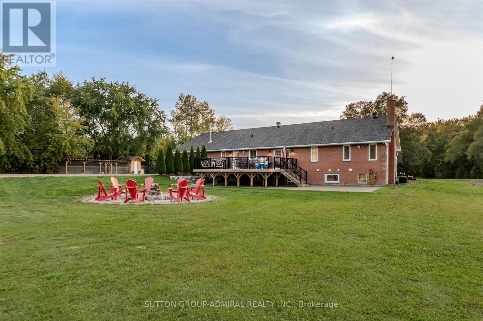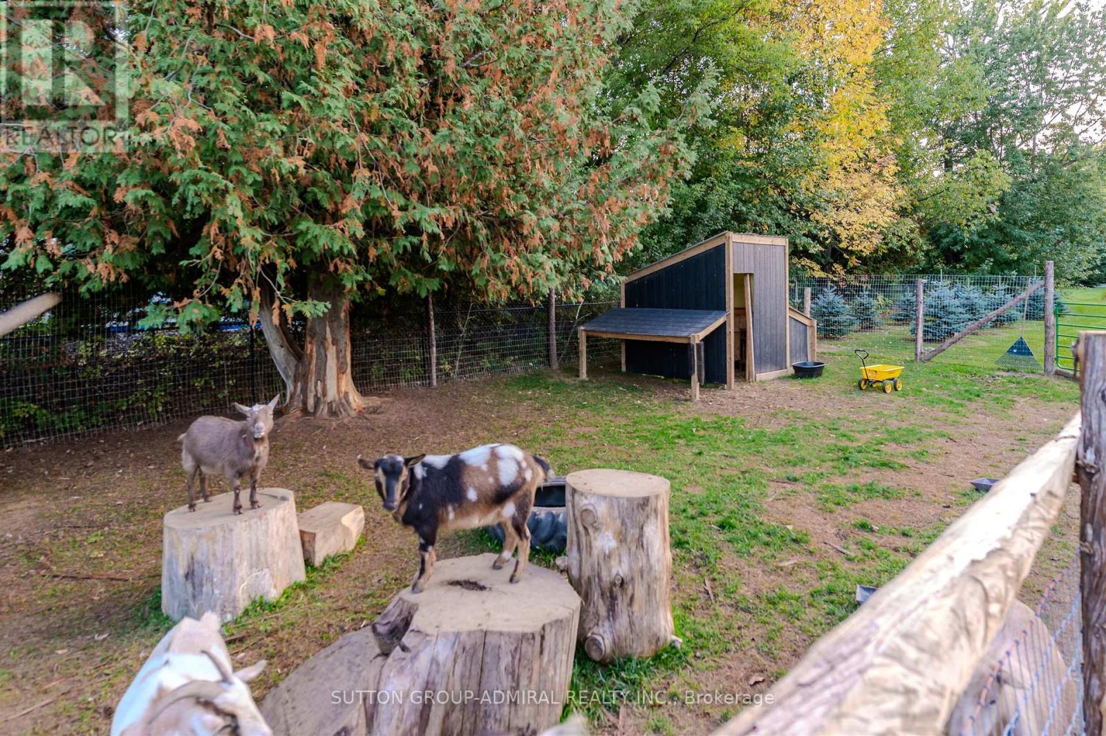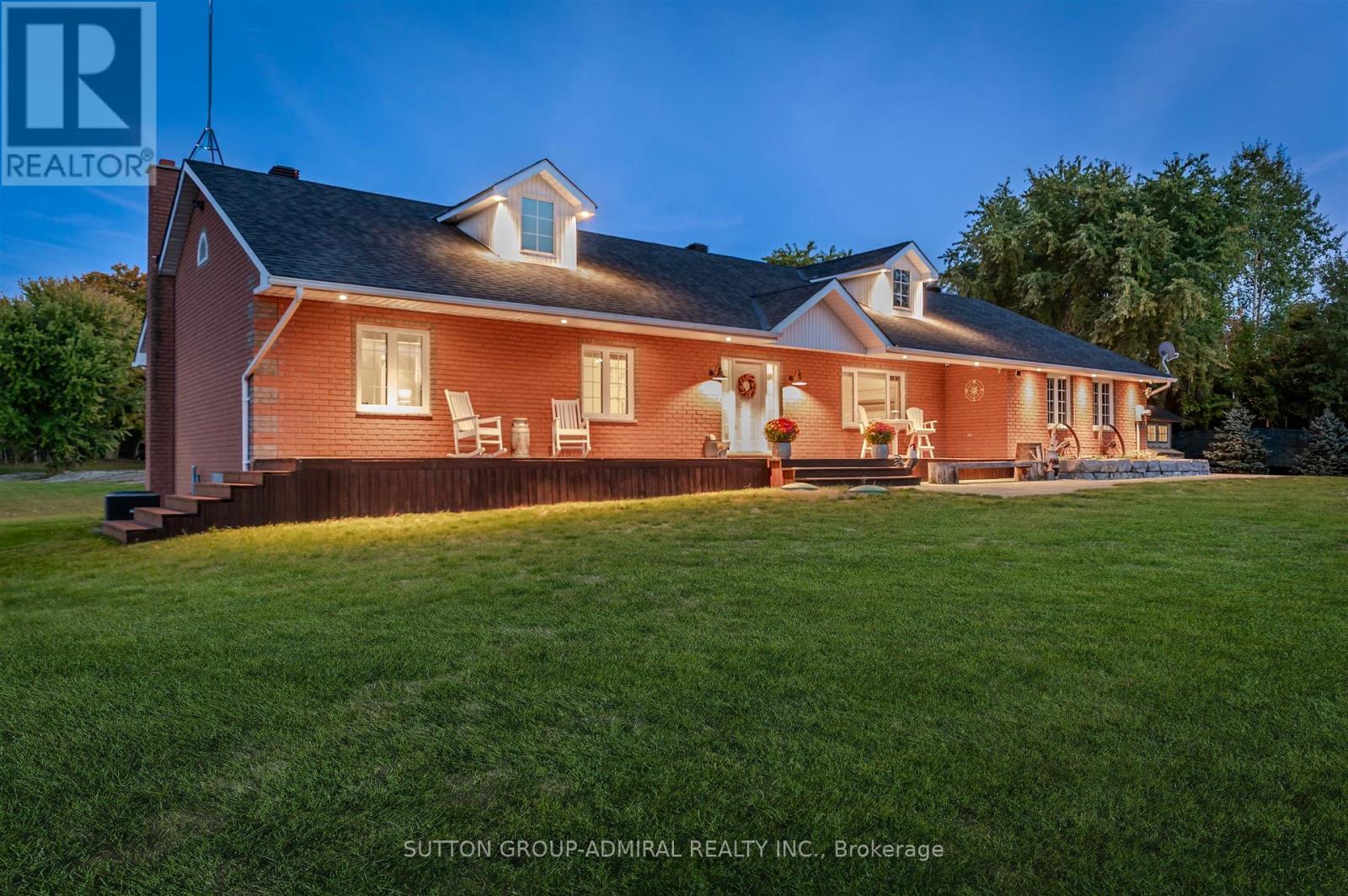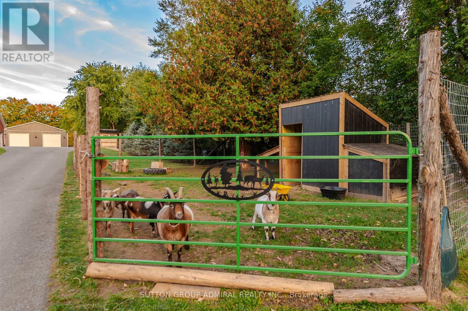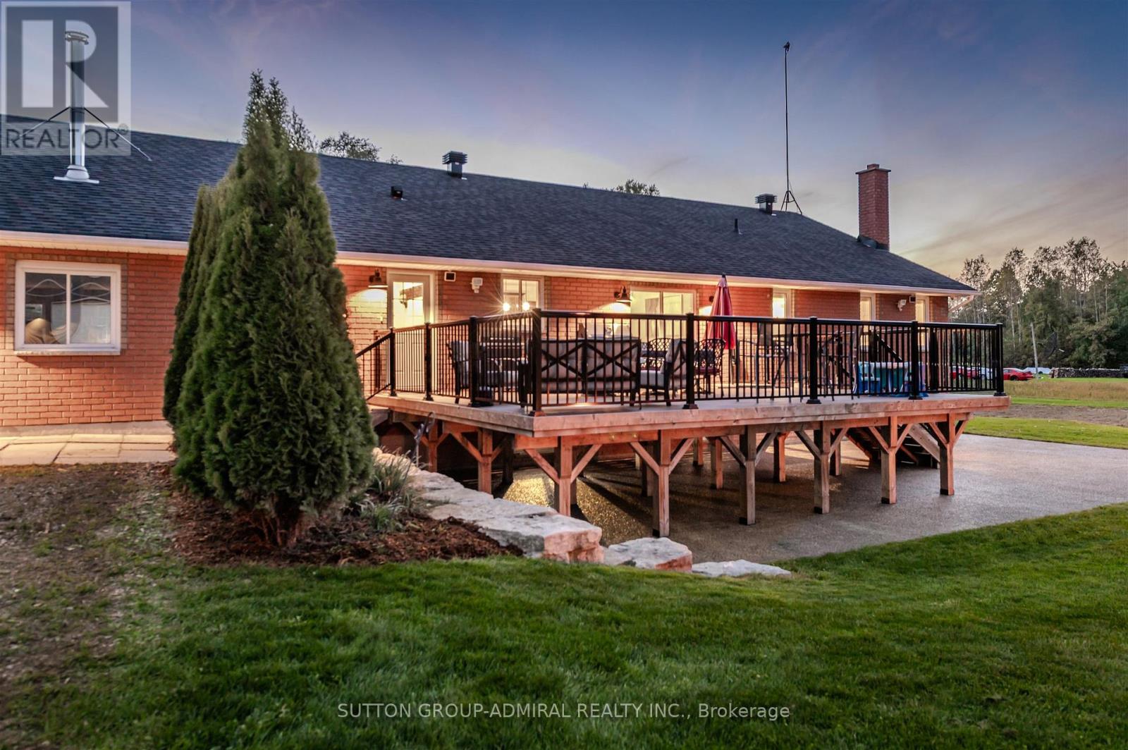 Charming Brick Bungalow on 10 Acres with Incredible Workshop & Outdoor Living, ideal for car enthusiasts, contractors or anyone craving space and privacy. This property is a rare opportunity offering both a comfortable home and a massive workshop. Professionally engineered structure with 16 ft ceilings, equipped with a 200 amp service and features 3 oversized 14' by 14' garage doors, 1 additional 10' 12' door, and 2 metal man doors. Endless potential for storage or hobby use. The interior of the home features 3 spacious bedrooms floor plus 3 fully renovated bathrooms on the main level. Open-concept family room with electric fireplace, pot lighting and hardwood floors. Generous kitchen with center island, breakfast bar, and large eating area with walk-out to deck. Partially finished lower level with additional bedrooms, 4-piece bathroom and flexible space to create a large recreational room, games area, or home gym with separate entrance via garage. Professionally landscaped with garden beds, composite deck and flagstone firepit area. Huge approx. 1200 sq.ft. aggregate concrete patio-perfect for entertaining. Interlock front walkway with 80mm pavers. Chicken coop with run & power plus goat pen with coop- ideal for a mini hobby farm. Attached double car garage and expansive asphalt driveway with ample parking for multiple vehicles. Great location, approximately 15 minute drive to highway 400! Whether you are looking for peaceful rural living or need a property with a serious workshop space, this one-of-a-kind bungalow checks all the boxes. Don't miss your chance to make this exceptional property yours! (id:4555)