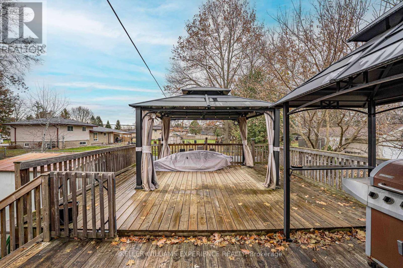 Charming Family Home in Quiet Angus Neighbourhood! Ideally situated just steps from a local park and minutes to grocery stores, restaurants, and schools, this welcoming home blends comfort, convenience, and family-friendly living. Bright, sun-filled rooms showcase hardwood floors and a functional layout. The spacious kitchen opens to the dining room and living room, with a walkout to a large deck overlooking the fully fenced backyard-perfect for kids, pets, and outdoor entertaining. A cozy family room with a wood-burning fireplace adds warmth and charm. The oversized detached garage is a standout feature, offering excellent workspace and storage for any hobbyist or handyman. With 4 generous bedrooms, 3 bathrooms, and plenty of storage, there's room for everyone to live comfortably. Recent updates include a reshingled roof (2018) and two separate sump pumps for peace of mind. Just a short drive to CFB Borden, Alliston, and Barrie, this is an ideal spot for commuters and growing families. (id:4555)