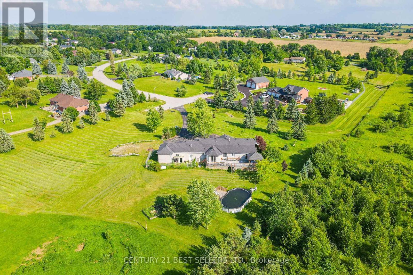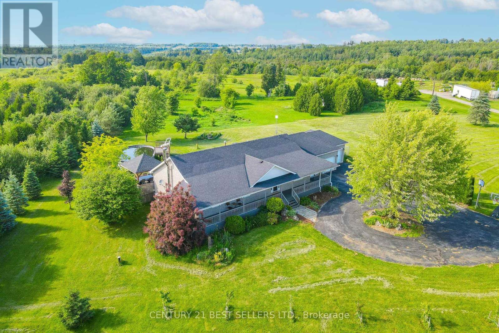 Nestled at the end of a cul-de-sac, this executive bungalow ranch sprawls over 5.4 acres of lush land, offering serene privacy amongst a country setting. There is over 3,400 sqft of finished living space, featuring 4 spacious bedrooms, 3 full baths, a fully finished basement & an open-concept design ideal for hosting & comfort. The impressive oversized 3 car garage provides inside entry & additional storage. The backyard offers a 53' x 16' expansive deck, propane hookup, gazebo & pool that sets the stage for grand outdoor entertainment or tranquil moments soaking in the scenery. An enchanting orchard & gardens promises seasonal delights, while private trails beckon for ATV, dirt bike or horseback adventures. There is also a fire pit to gather around the crackling flames for memorable evenings under the stars. This is a rare opportunity to own acreage with privacy & community connectivity, closely located to schools, shopping centers, restaurants, Barrie, HWY 400 & HWY 89.**See Video** (id:4555)