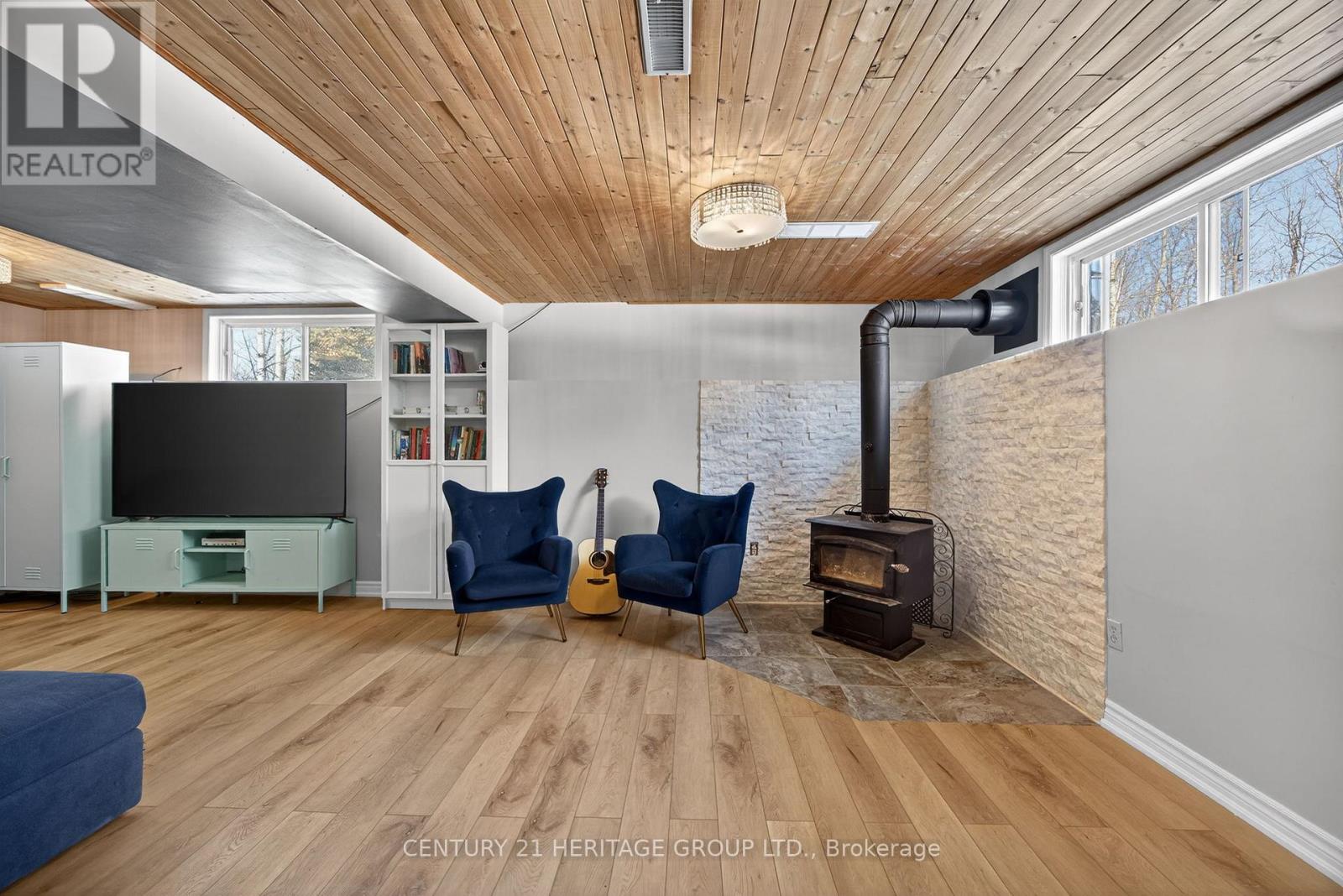 Escape to your own private retreat on picturesque Scotch Line, where peace, space, and natural beauty come together on just under 2 acres of country paradise. From the moment you arrive, the long driveway with ample parking sets the tone for the privacy and serenity this property offers, leading you to a beautifully positioned 3+1 bedroom, 2 bathroom bungalow with an attached 2-car garage tucked perfectly toward the back of the lot. Imagine unwinding each evening on the charming front patio, watching breathtaking sunsets over your blooming perennial gardens. Step inside to a bright, welcoming interior featuring rich hardwood floors throughout, a skylight entry, & fresh, modern paint that makes the home feel move-in ready. The living room is warm and inviting, complete with a wood-burning fireplace, wood accent walls, and natural light from the skylight, the perfect space to relax on cozy winter nights. The modern white kitchen offers granite countertops, backsplash, skylight, stainless steel appliances, & a sleek induction stove that will impress any home chef. The dining room seamlessly connects indoor &outdoor living with a walkout to the spacious two-tier back deck ideal for entertaining, summer BBQs, or morning coffee surrounded by nature. The primary bedroom offers a peaceful retreat with a generous layout & private 3-piece ensuite. Two additional main floor bedrooms & a 4-piece bathroom provide comfortable space for family or home office needs. Downstairs, the bright & open basement expands your living space with a large recreation room featuring a woodstove for added warmth & ambiance. A fourth bedroom is perfect for guests or family, & a spacious storage room to keep everything organized. Outside, the expansive yard offers endless opportunities for entertaining, playing, or simply enjoying the quiet beauty of mature trees and near complete privacy from neighbours. If you've been dreaming of space, privacy, & style, this property is a must-see. (id:4555)