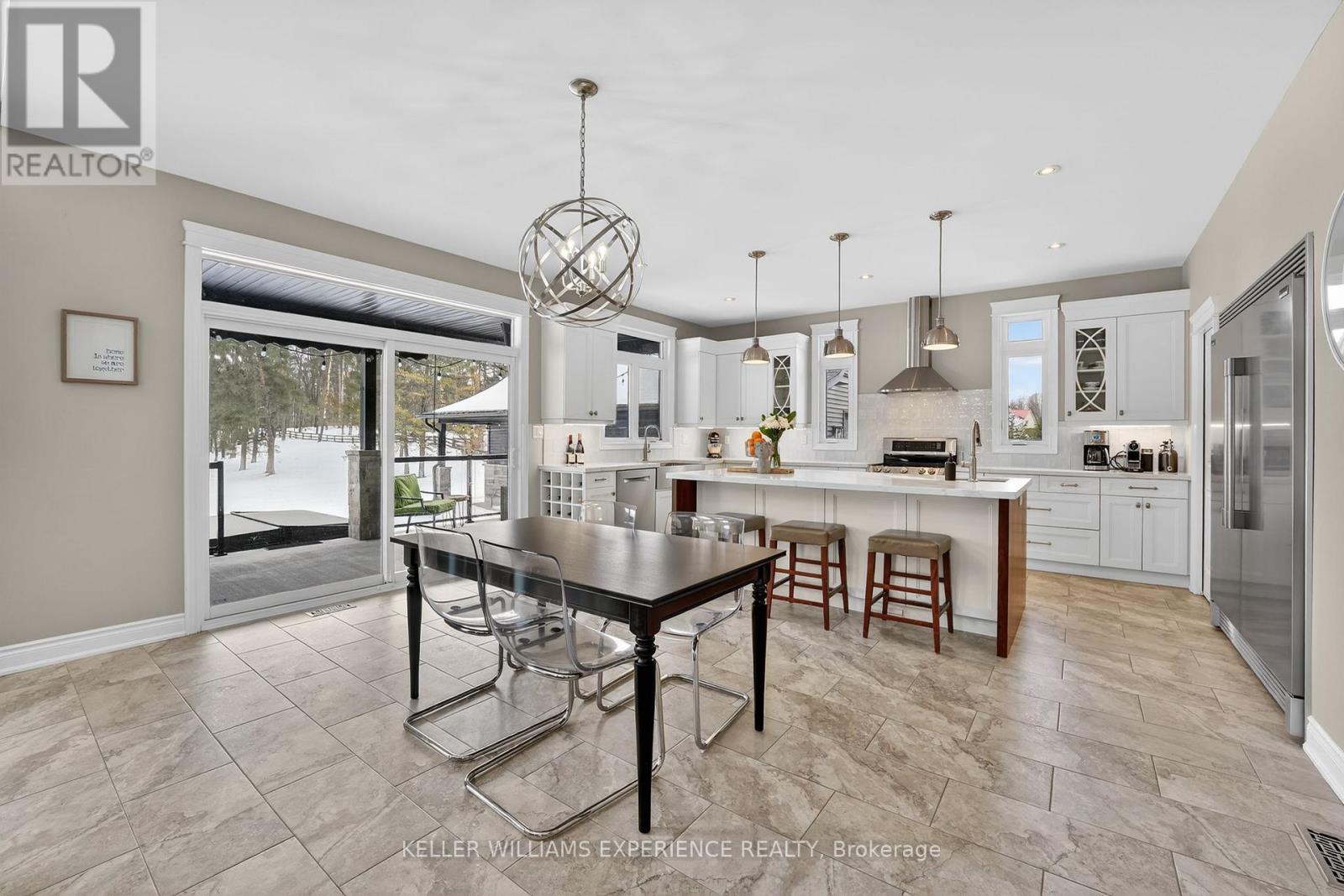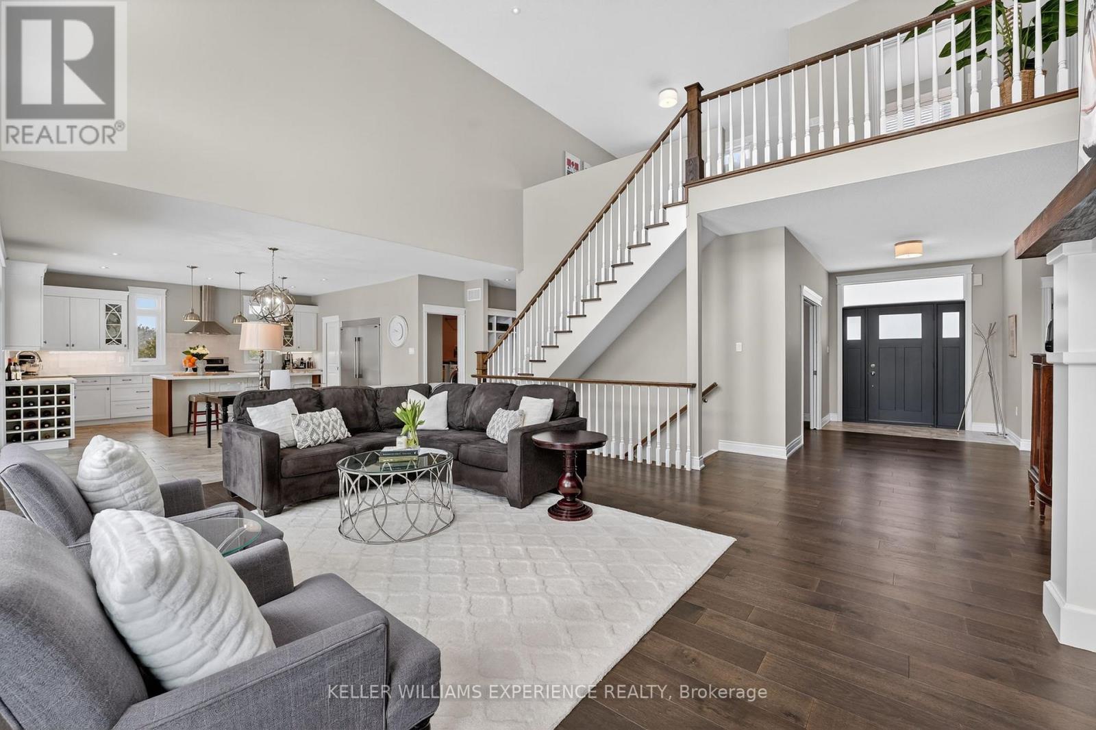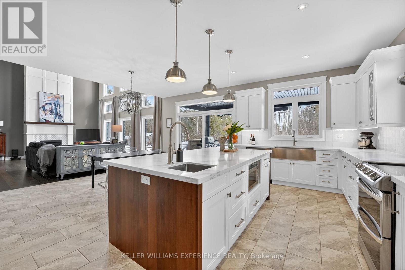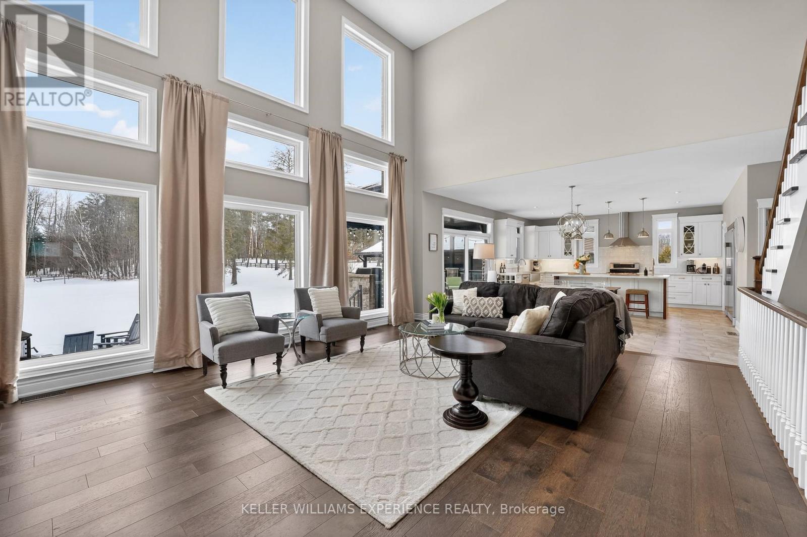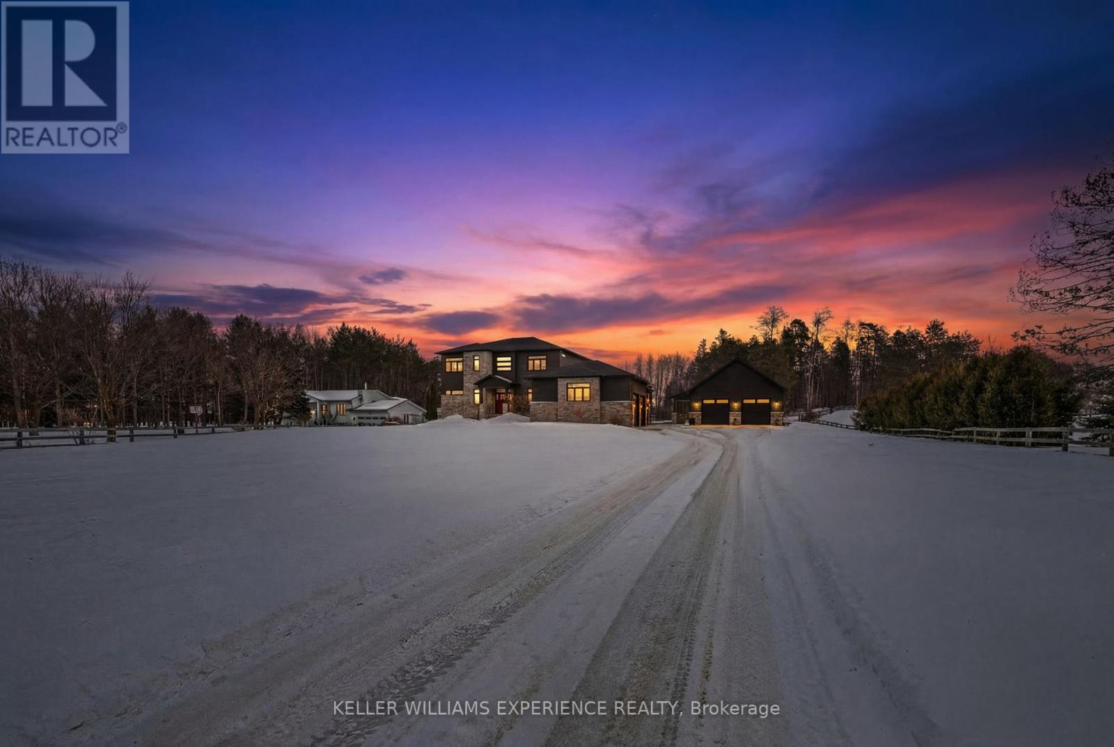 Welcome to the Homestead on the Riverbend. Set on 4 picturesque acres along the Nottawasaga River, this custom-built bungaloft estate offers a rare blend of luxury living and peaceful country lifestyle. With approximately 150 feet of river frontage and views of neighbouring horse paddocks, the property feels like a private retreat while still being just minutes from Barrie and Alliston. Thoughtfully designed with energy efficiency in mind, the home features owned solar panels with net metering that power the home while sending excess energy back to the grid, keeping utility costs remarkably low. Large picture windows capture natural light and passive solar warmth while framing beautiful views of the surrounding ravine and countryside. The property is also enrolled in a Forest Tax Incentive Program reducing Property Tax. With over 4,000 sq ft of finished living space, the home offers room for the whole family, including multi-generational living. The main floor primary suite features a spa-like ensuite, while two bedrooms upstairs and two additional bedrooms in the fully finished lower level each include walk-in closets. The chef's kitchen with large centre island and walk-in pantry opens to a covered porch overlooking the property, perfect for morning coffee or an evening soak in the hot tub. Outside, enjoy trails through the forest, peaceful moments along the river, and a charming bunkie tucked into the landscape. A separate 1,200 sq ft garage/workshop provides space for hobbies, equipment, or additional vehicles, with a 700 sq ft loft above. Serviced by Starlink internet and located just 12 minutes from Barrie or Alliston, this exceptional property offers the perfect balance of privacy, sustainability, and modern country living. (id:4555)