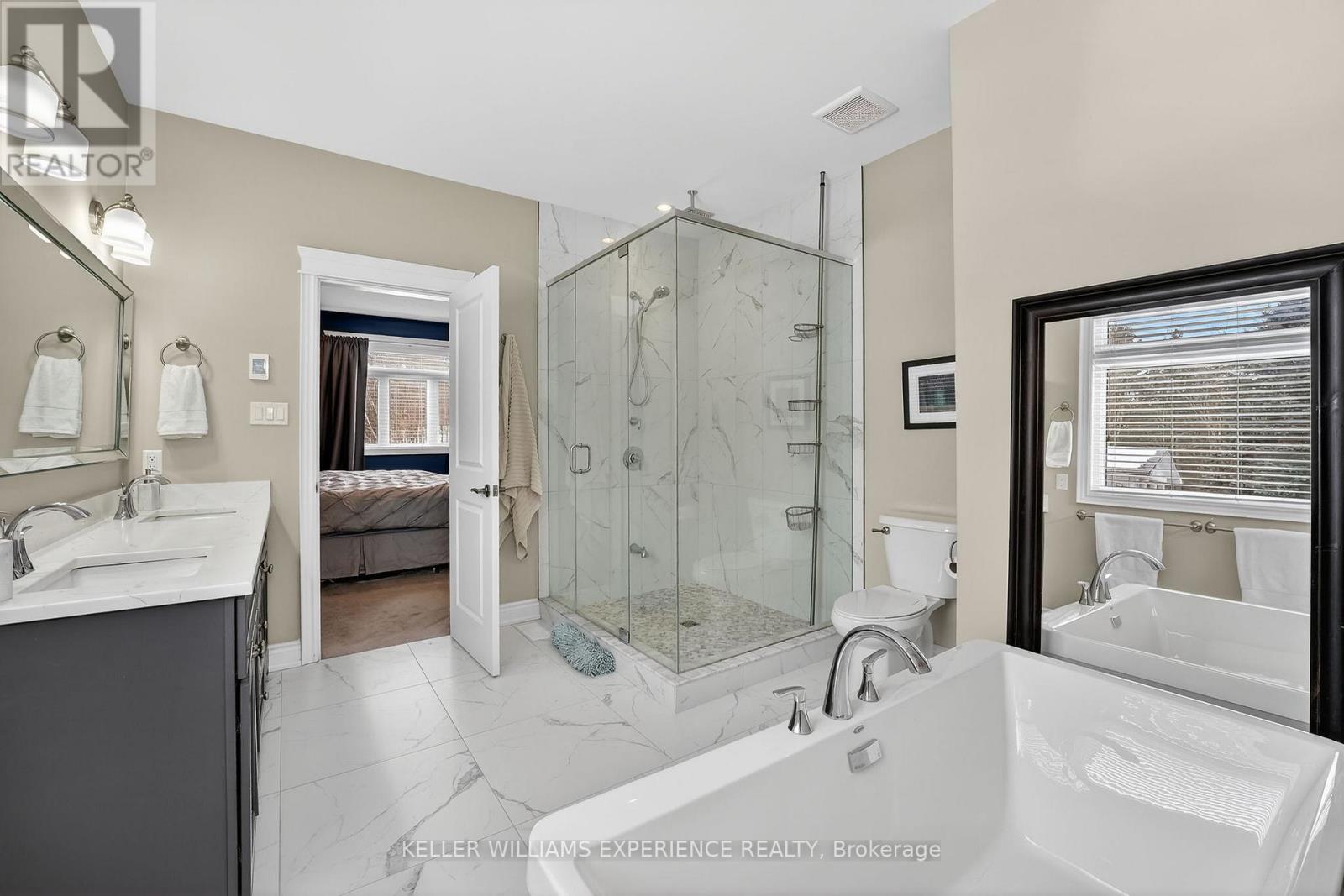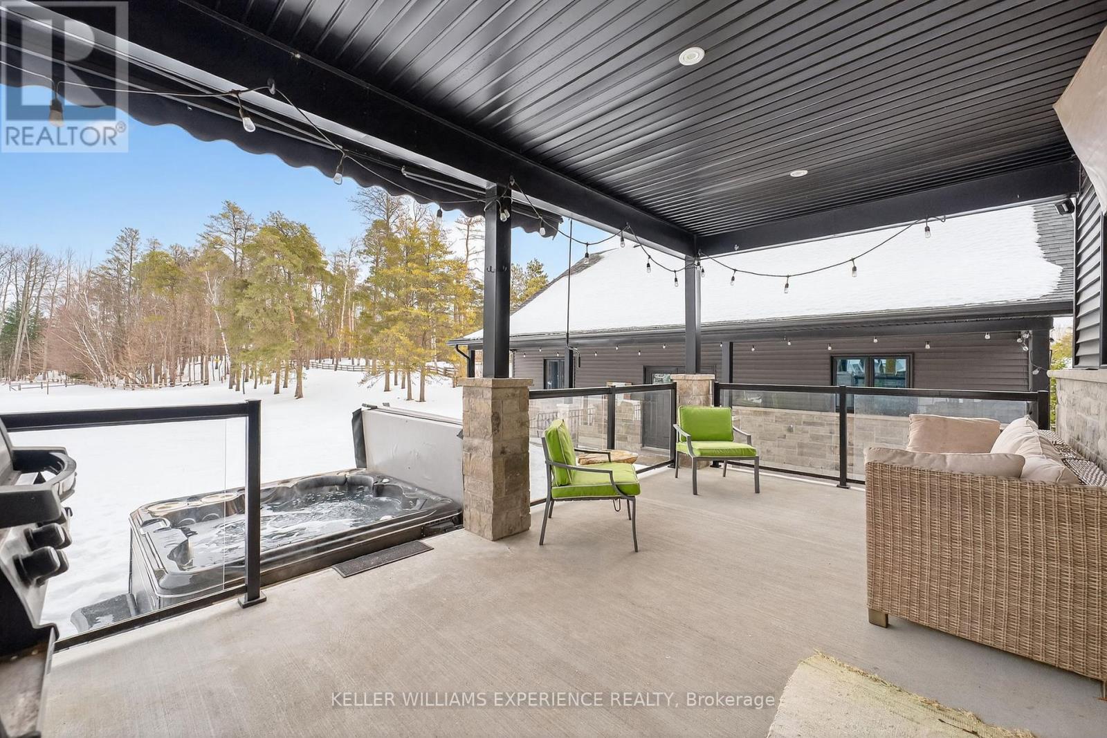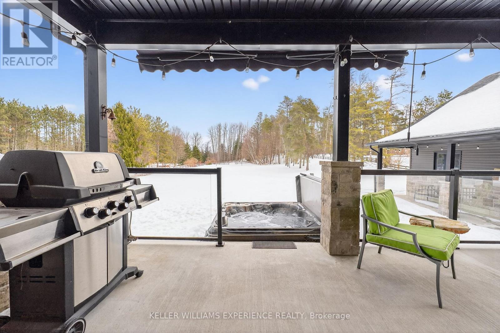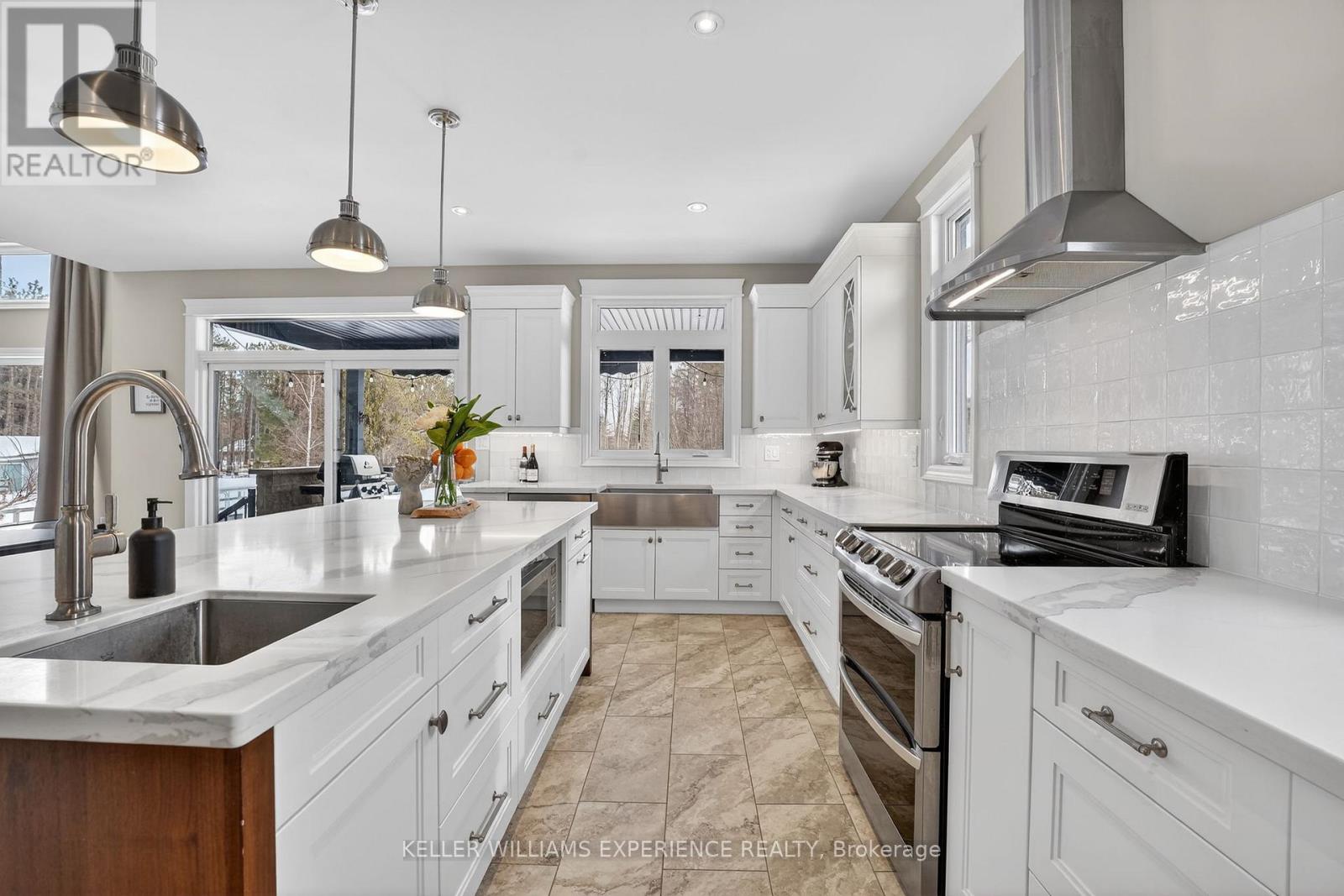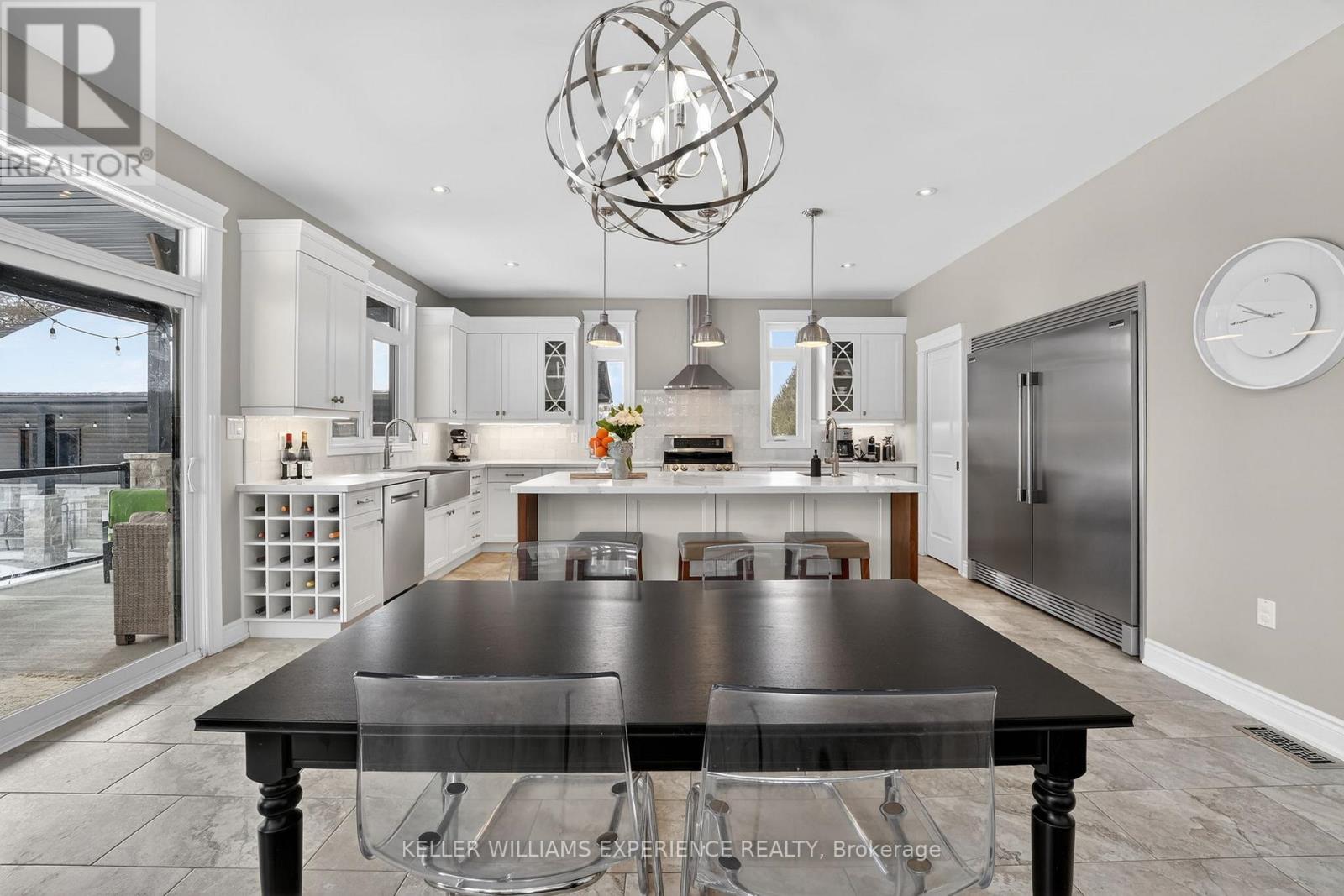 Welcome to the Homestead on the Riverbend. Set on 4 picturesque acres along the Nottawasaga River, this custom-built bungaloft estate offers a rare blend of luxury living and peaceful country lifestyle. With approximately 150 feet of river frontage and views of neighbouring horse paddocks, the property feels like a private retreat while still being just minutes from Barrie and Alliston. Thoughtfully designed with energy efficiency in mind, the home features owned solar panels with net metering that power the home while sending excess energy back to the grid, keeping utility costs remarkably low. Large picture windows capture natural light and passive solar warmth while framing beautiful views of the surrounding ravine and countryside. The property is also enrolled in a Forest Tax Incentive Program reducing Property Tax. With over 4,000 sq ft of finished living space, the home offers room for the whole family, including multi-generational living. The main floor primary suite features a spa-like ensuite, while two bedrooms upstairs and two additional bedrooms in the fully finished lower level each include walk-in closets. The chef's kitchen with large centre island and walk-in pantry opens to a covered porch overlooking the property, perfect for morning coffee or an evening soak in the hot tub. Outside, enjoy trails through the forest, peaceful moments along the river, and a charming bunkie tucked into the landscape. A separate 1,200 sq ft garage/workshop provides space for hobbies, equipment, or additional vehicles, with a 700 sq ft loft above. Serviced by Starlink internet and located just 12 minutes from Barrie or Alliston, this exceptional property offers the perfect balance of privacy, sustainability, and modern country living. (id:4555)