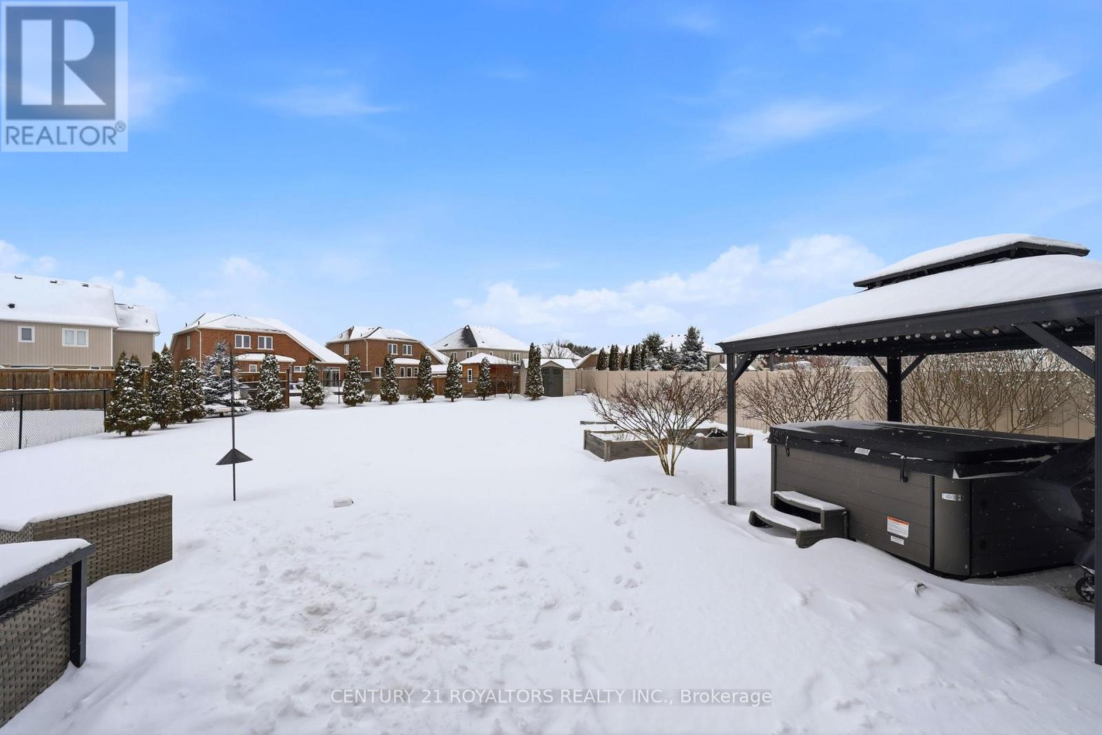 Welcome to this beautiful family home offering modern comfort and exceptional outdoor living in the growing community of Angus. Bright and spacious throughout, the home features 9-foot ceilings, elegant hardwood flooring, ceramic tile, and California shutters throughout. The inviting eat-in kitchen, a convenient breakfast bar, stove, and stainless steel appliances. Step outside to a large poured concrete patio overlooking a massive, fully fenced backyard complete with a sprinkler system and a relaxing hot tub-perfect for entertaining family and friends. Additional highlights include a top-of-the-line water filtration system, stone landscaping at the front for impressive curb appeal, main floor laundry, and inside entry to the double garage. Enjoy The Convenience Of No Sidewalk, Allowing For Extra Driveway Parking And Easier Winter Maintenance. The spacious primary bedroom retreat features a walk-in closet and a full ensuite with a luxurious soaker tub and separate shower. Three additional generously sized bedrooms provide plenty of room for a growing family. The full unfinished basement creates the perfect opportunity to design the space according to your future vision-whether it's a recreation room, home gym, theatre, or in-law suite. Located in the family-friendly community of Angus, this home is close to parks, schools, recreation facilities, and everyday amenities, while also benefiting from low property taxes-making it an outstanding opportunity for homeowners. (id:4555)