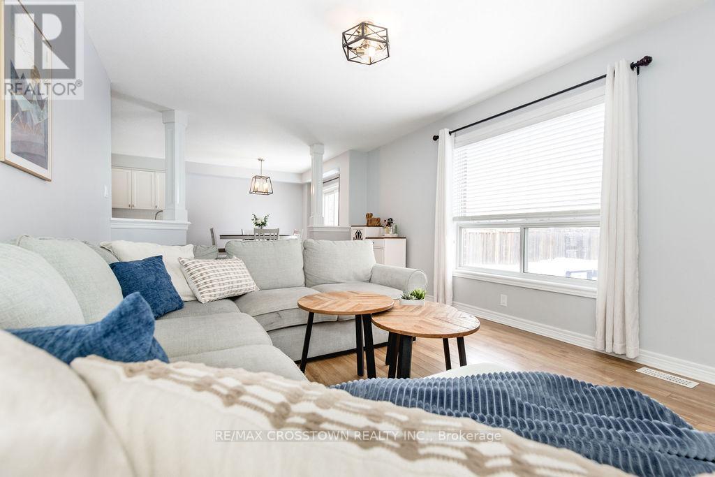 This well-appointed two-storey Devonleigh home is move-in ready and located in the desirable community of Angus, just minutes from Base Borden and close to all everyday amenities. With schools, parks, and shopping nearby, it offers the perfect blend of comfort and convenience for families. The home features three spacious bedrooms, providing comfortable living for families of all sizes. A bright second-floor loft filled with natural light creates the ideal space for a home office or reading nook. The updated kitchen showcases stylish cabinetry, a crisp white backsplash, newer countertops, and stainless steel appliances. Overlooking the dining room and large great room, the layout creates a bright open-concept space that is perfect for both everyday living and entertaining. Step outside to enjoy summer evenings on the patio or deck in the fully fenced backyard, complete with a resin garden shed, ideal for relaxing or hosting family and friends. The partially finished basement is already framed and includes a rough-in for an additional full bathroom, offering excellent potential to expand your living space. (id:4555)