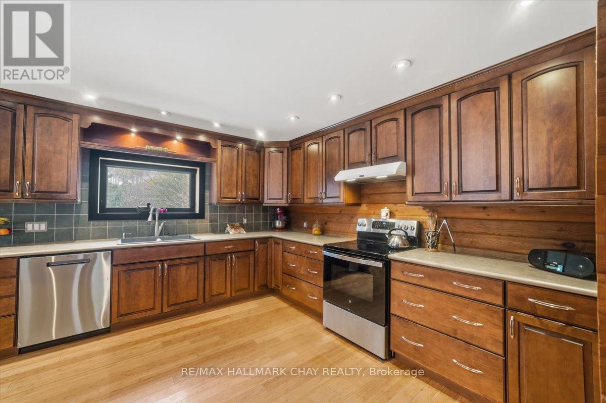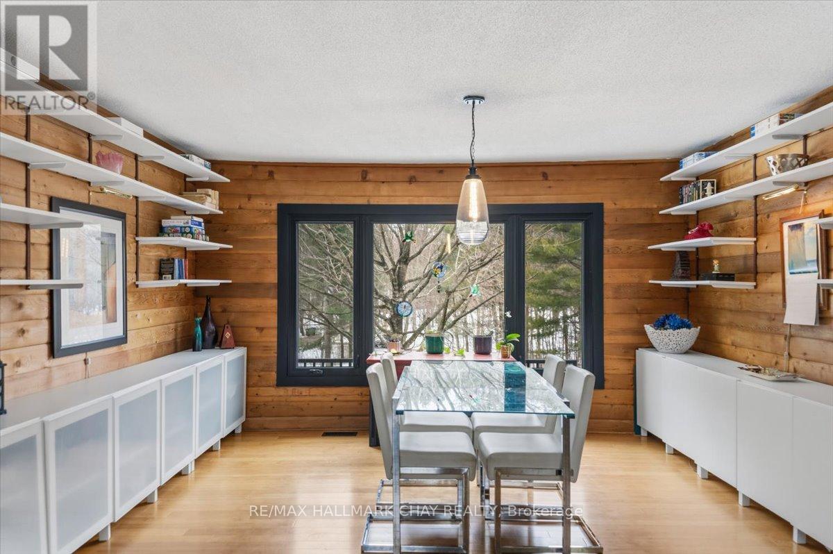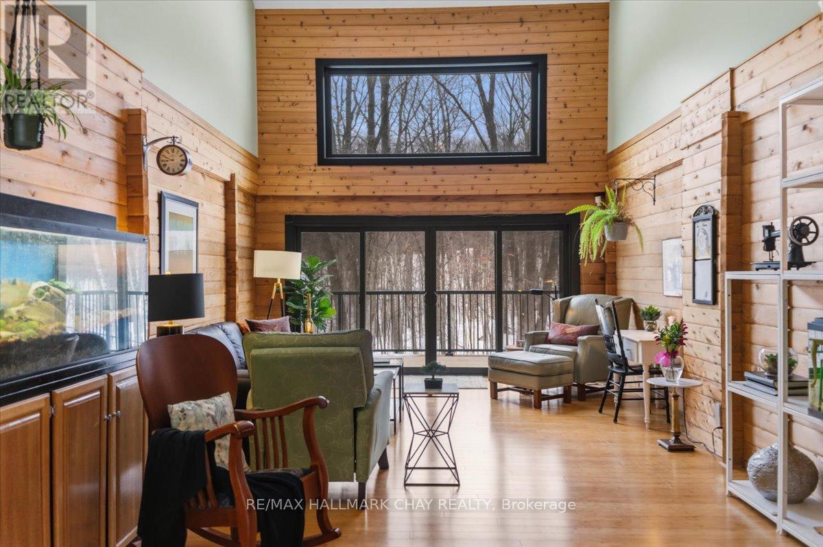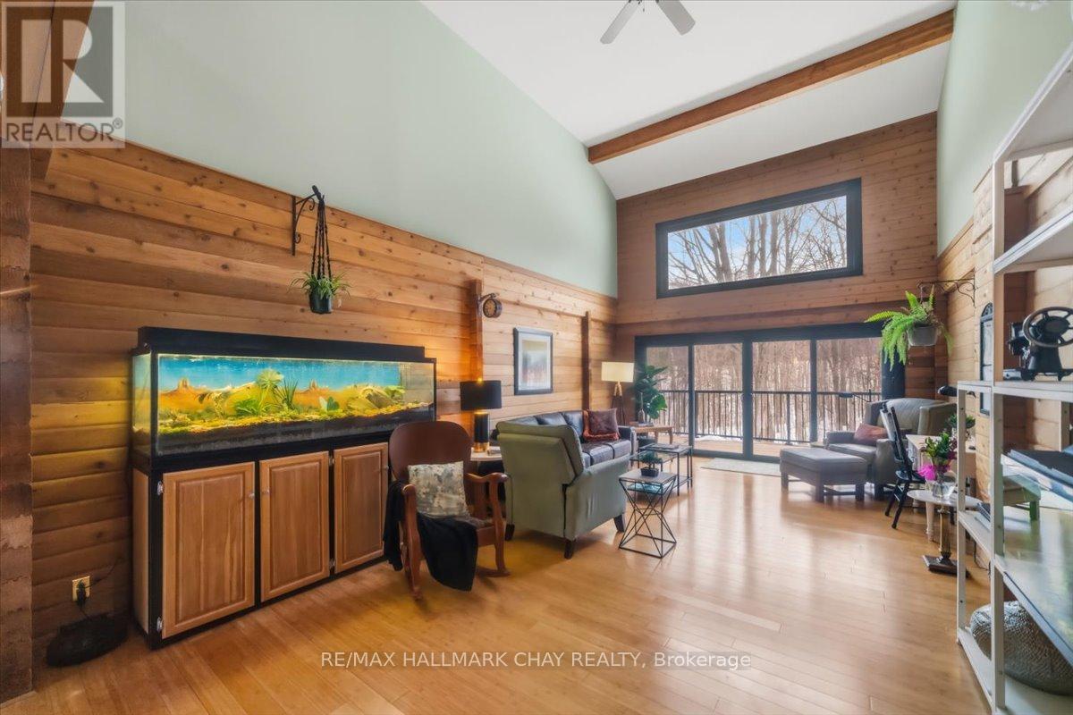 Opportunity for family living in the country but not in the sticks. This unique Pan-Abobe style log home with over 4000S/F has space for everyone. Bamboo hardwood, massive kitchen for the chef, views from the newer windows overlooking the beautifully landscaped 1 acre fully fenced yard. After a day of entertaining retire to the expansive primary suite with spa like ensuite. Watch the stars and wildlife from the screened gazabo or have early morning coffee on one of the decks. Minutes from Barrie, Shopping, Schools, Top Tear Golf, parking inside for the avid car collector. Take time to see this home today, may save you unnecessary trips elsewhere. (id:4555)