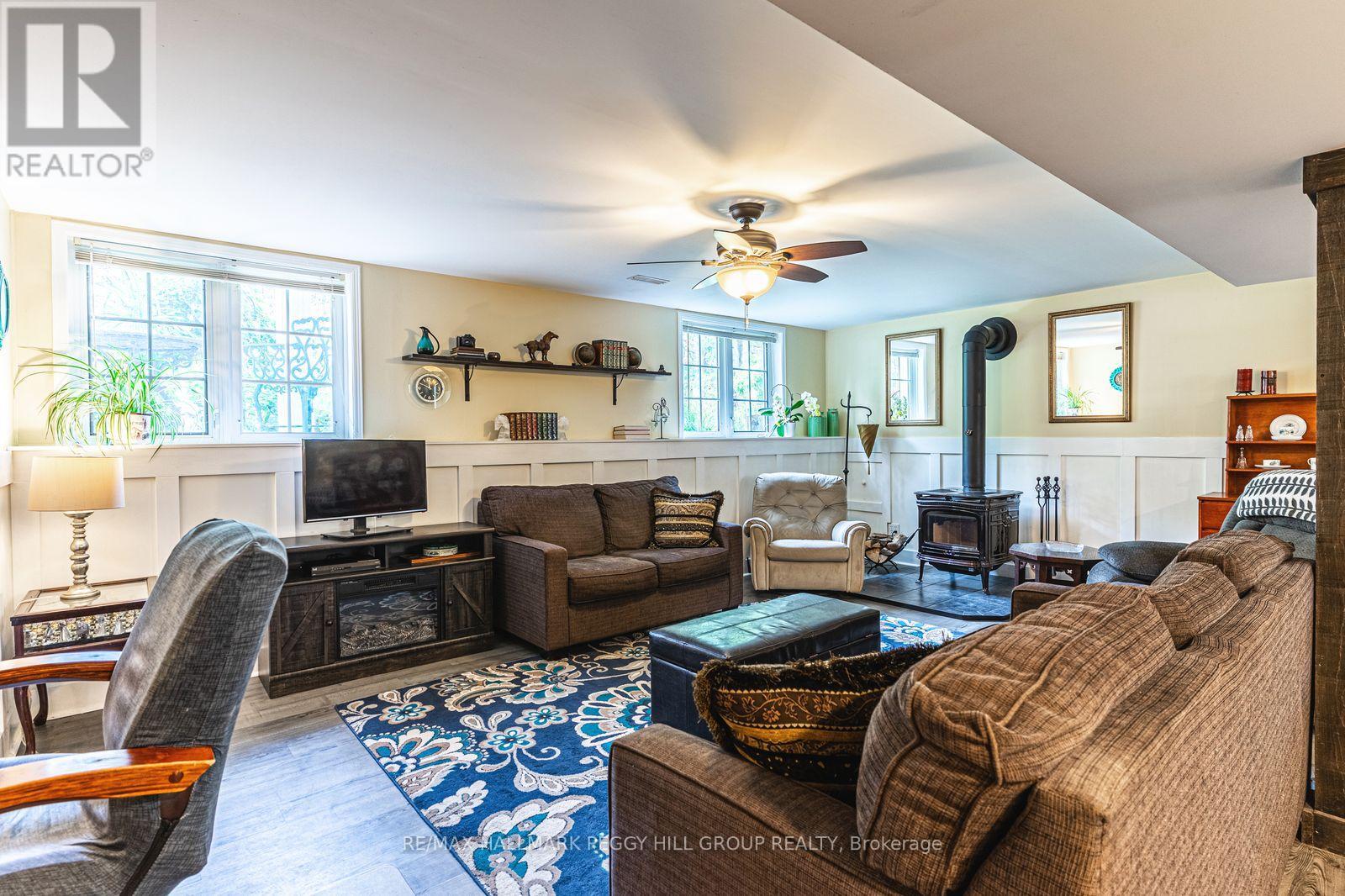 MULTI-GENERATIONAL LIVING ON 3.92 ACRES OF NATURAL BEAUTY SET ALONG THE NOTTAWASAGA RIVER! This property doesn't whisper potential, it shouts it from the treetops, across the river and over the pond. Sitting on 3.92 private acres with 152 feet of frontage on the Nottawasaga River, this raised bungalow is surrounded by towering trees, forest views, and endless natural beauty. A peaceful private pond with lily pads, a wooden footbridge, and visiting wildlife sets the scene for skating in winter, paddle boating in summer, and quiet evenings by the fire pit. The beautifully landscaped grounds also include lush perennial gardens, vegetable beds, and an outbuilding with barn-style stalls. The exterior charms with shutters, a covered front entrance framed by stately columns, a newer front door, and a steel roof. An attached 2-car garage with a newer door and inside entry pairs with a driveway that easily fits 10 or more vehicles. Inside offers over 2,500 finished square feet with two completely separate living areas, ideal for multi-generational families or in-law potential. The main level features crown moulding, hardwood flooring, and a kitchen with granite counters, tiled backsplash, newer appliances, two-toned cabinetry, and modern hardware. The kitchen opens to a sunroom with skylights, backyard views, and a walkout, making it the ideal spot for morning coffee. The primary bedroom offers a modernized 3-piece ensuite and double closet, while two additional bedrooms share the main 4-piece bathroom. The finished basement is bright and welcoming with wainscotting, a full kitchen, a family room with a fireplace, two bedrooms, a full bathroom, and a private entrance. Located close to schools, parks, dining, daily essentials, the Angus Rec Centre, Canadian Forces Base Borden, and just 20 minutes to Barrie. Let the stillness settle in, listen to the river, and you'll understand why this #HomeToStay stands apart. (id:4555)