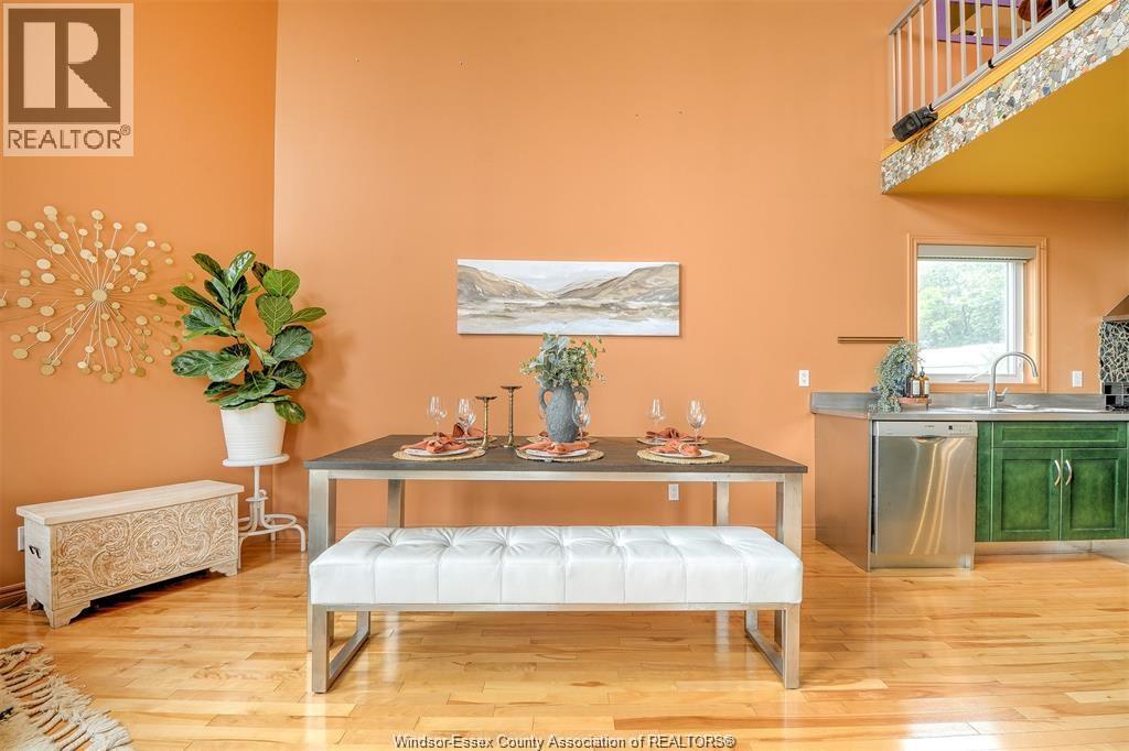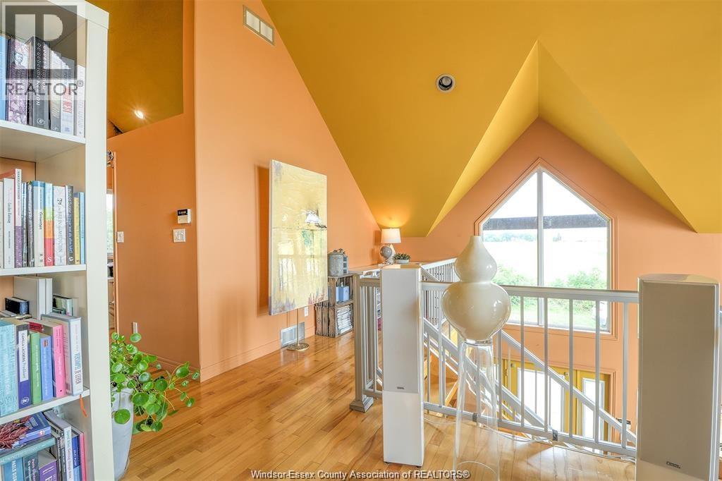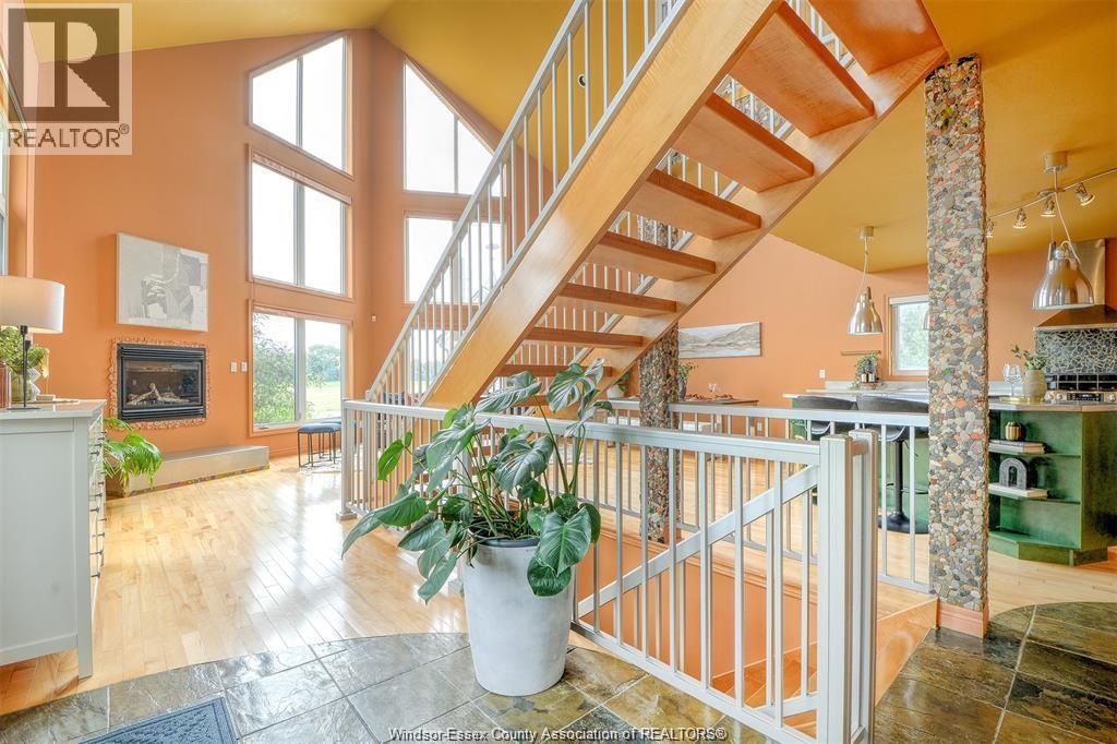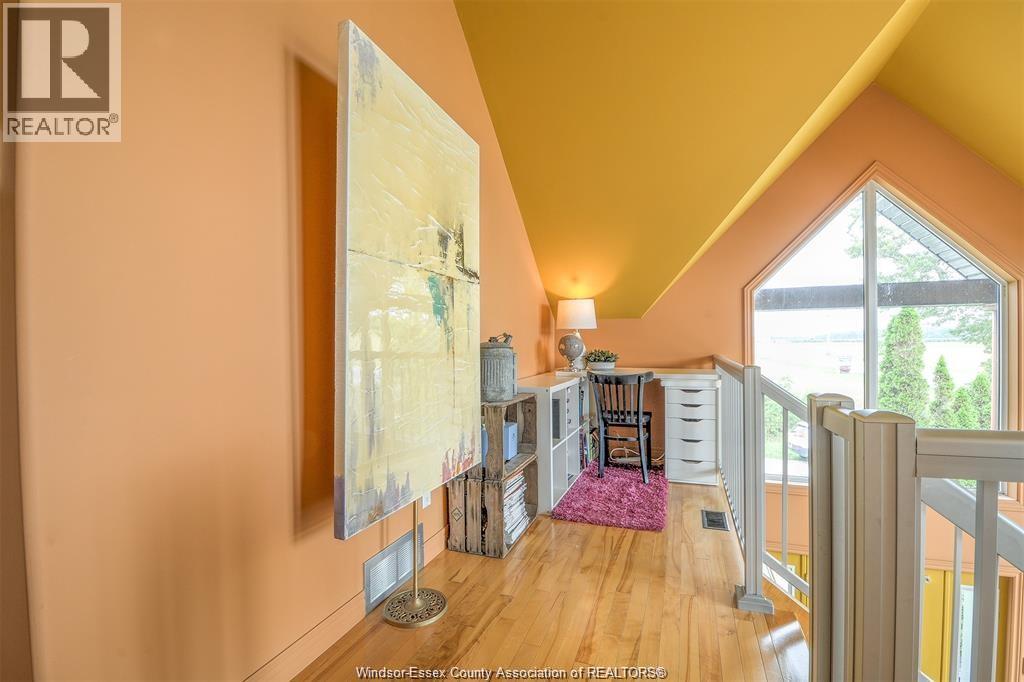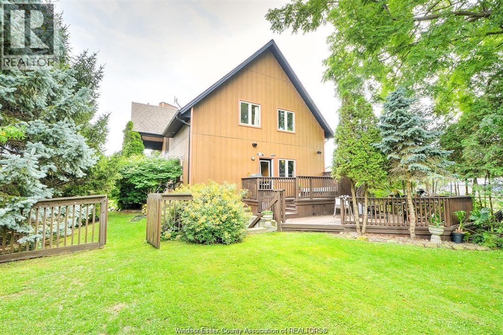 LOOKING FOR A UNIQUE HOME? THIS IS IT! CUSTOM BUILT A-FRAME NESTLED IN THE CHARMING TOWN OF COLCHESTER, NEAR LAKE ERIE BEACH & BEAUTIFUL LOCAL VINEYARDS. BOASTING 2+1 BEDROOMS, 2 FULL BATHS & FINISHED LOWER LEVEL W/ HEATED FLOORS. MAIN FLOOR FEATURES SOARING CEILING, AN OPEN CONCEPT LIVING RM W/ A GAS FP, DINING AREA & A KITCHEN W/ STAINLESS STEEL ACCENTS. PLENTY OF NATURAL SUNLIGHT THROUGHOUT. MAIN FLOOR INCLUDES A BEDROOM (CURRENTLY USED AS AN OFFICE) 4PC BATH, AND LAUNDRY. STUNNING OPEN TIGER-OAK STAIRCASE LEADS TO THE UPPER FLOOR. RELAX IN THE DEN THAT OVERLOOKS THE LOWER LEVEL. ELEVATE YOUR SENSES WITH ENDLESS INDOOR & OUTDOOR VIEWS FROM THE FLR TO CEILING WINDOWS. SPACIOUS PRIMARY BEDROOM FEATURES A 3PC ENSUITE GLASS BLOCK WALK-IN SHOWER. LOWER LEVEL HAS HEATED FLOORS, 3RD BDRM, FAMILY RM, GARAGE ACCESS AND A GRADE ENTRANCE THAT LEADS TO A FENCED YARD COMPLETE W/ DEACK & HOT TUB. CONNECTED TO MUNICIPAL SANITARY SEWER FOR YOUR CONVENIENCE. WILL LOOK AT OFFERS ANYTIME. (id:4555)
