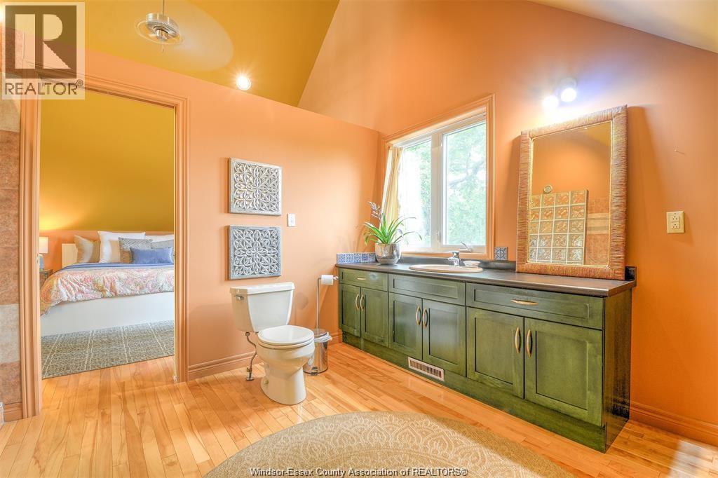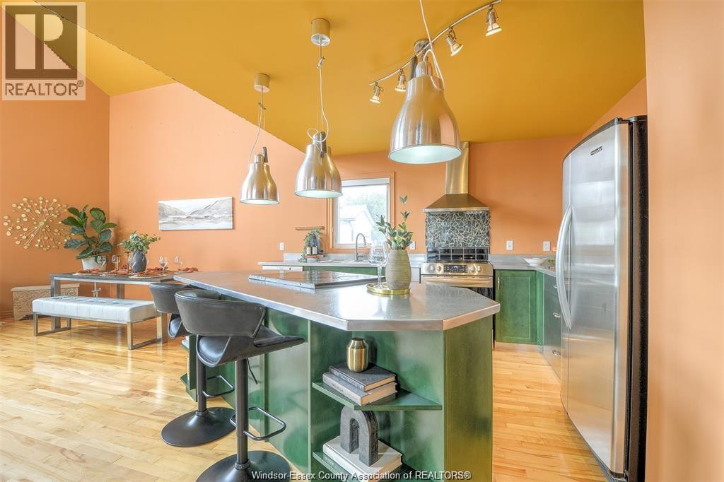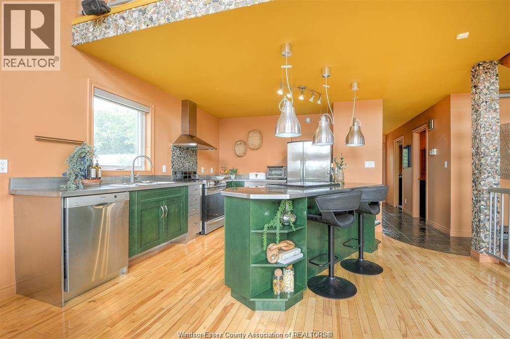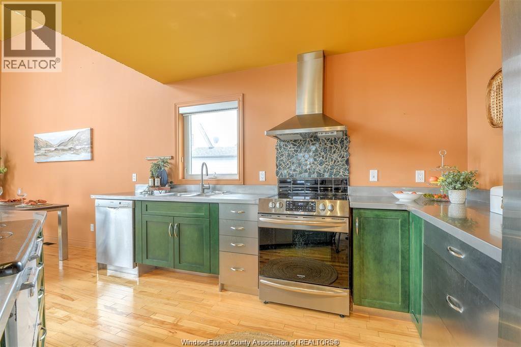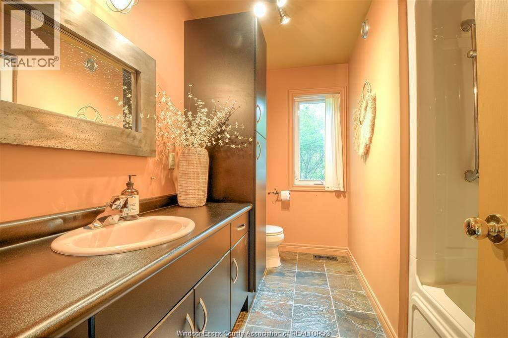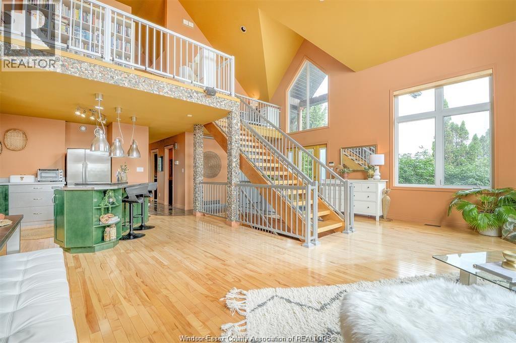 LOOKING FOR A UNIQUE HOME? THIS IS IT! CUSTOM BUILT A-FRAME NESTLED IN THE CHARMING TOWN OF COLCHESTER, NEAR LAKE ERIE BEACH & BEAUTIFUL LOCAL VINEYARDS. BOASTING 2+1 BEDROOMS, 2 FULL BATHS & FINISHED LOWER LEVEL W/ HEATED FLOORS. MAIN FLOOR FEATURES SOARING CEILING, AN OPEN CONCEPT LIVING RM W/ A GAS FP, DINING AREA & A KITCHEN W/ STAINLESS STEEL ACCENTS. PLENTY OF NATURAL SUNLIGHT THROUGHOUT. MAIN FLOOR INCLUDES A BEDROOM (CURRENTLY USED AS AN OFFICE) 4PC BATH, AND LAUNDRY. STUNNING OPEN TIGER-OAK STAIRCASE LEADS TO THE UPPER FLOOR. RELAX IN THE DEN THAT OVERLOOKS THE LOWER LEVEL. ELEVATE YOUR SENSES WITH ENDLESS INDOOR & OUTDOOR VIEWS FROM THE FLR TO CEILING WINDOWS. SPACIOUS PRIMARY BEDROOM FEATURES A 3PC ENSUITE GLASS BLOCK WALK-IN SHOWER. LOWER LEVEL HAS HEATED FLOORS, 3RD BDRM, FAMILY RM, GARAGE ACCESS AND A GRADE ENTRANCE THAT LEADS TO A FENCED YARD COMPLETE W/ DEACK & HOT TUB. CONNECTED TO MUNICIPAL SANITARY SEWER FOR YOUR CONVENIENCE. WILL LOOK AT OFFERS ANYTIME. (id:4555)