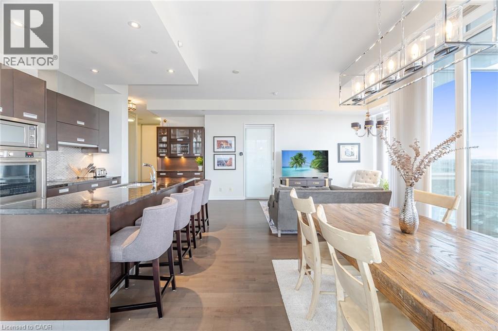 Remarkable Luxury Living in this incredibly spacious condo offering almost 1,900 sqft of interior living space plus 300sqft of wrap-around terrace and second balcony. A truly expansive lifestyle experience featuring 3 large bedrooms + enclosed den and 3 bathrooms. Enjoy floor-to-ceiling windows, 10-foot ceilings, and custom Hunter Douglas remote-controlled window coverings that frame panoramic city and lake views. The large open-concept layout is complemented by custom cabinetry, a walk-in laundry room, and a separate walk-in pantry/storage room-all designed for convenience and modern living. The residence includes two luxurious 5-piece bathrooms adorned with marble finishes and a 2-piece powder room. The unit has been freshly painted. Enjoy the convenience of 2 (side-by-side) parking with a fully installed EV charger, plus one locker for even more storage. Residents enjoy access to over 30,000 sqft of resort-style amenities, including indoor and outdoor pools, hot tubs, a state-of-the-art fitness centre, basketball/pickleball court, party rooms, billiards, a lounge, 24-hour concierge, free visitor parking, and much more. A rare opportunity to own one of the largest and most desirable suites in the building-offering unparalleled space, style, and amenities in an unbeatable location. (id:4555)