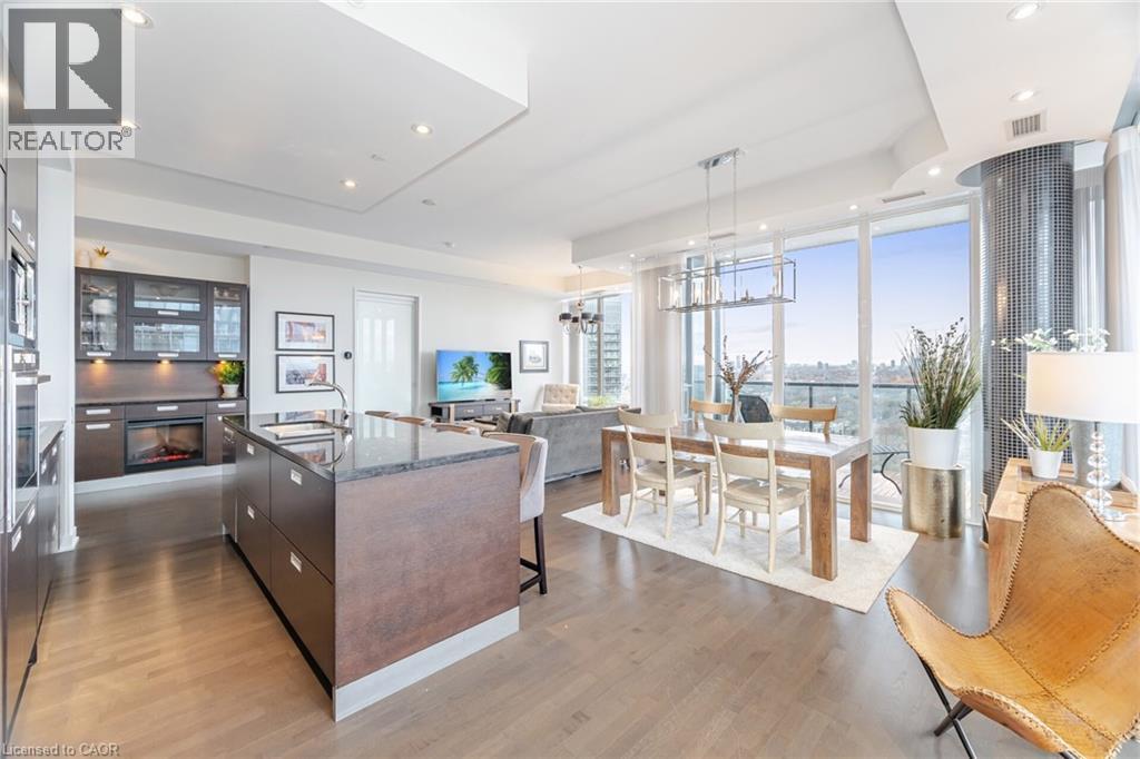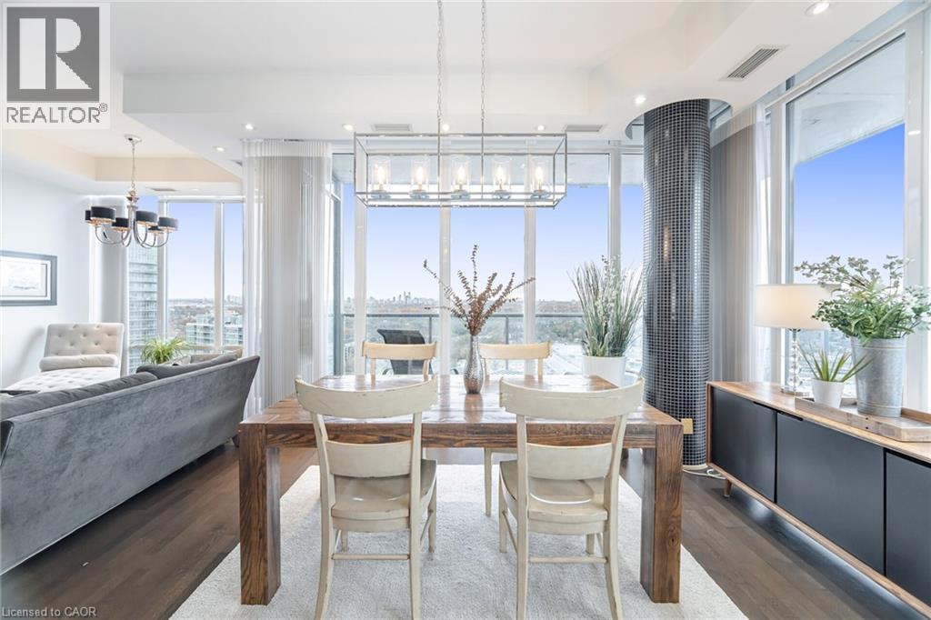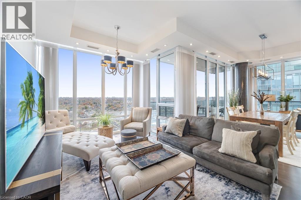 Remarkable Luxury Living in this incredibly spacious condo offering almost 1,900 sqft of interior living space plus 300sqft of wrap-around terrace and second balcony. A truly expansive lifestyle experience featuring 3 large bedrooms + enclosed den and 3 bathrooms. Enjoy floor-to-ceiling windows, 10-foot ceilings, and custom Hunter Douglas remote-controlled window coverings that frame panoramic city and lake views. The large open-concept layout is complemented by custom cabinetry, a walk-in laundry room, and a separate walk-in pantry/storage room-all designed for convenience and modern living. The residence includes two luxurious 5-piece bathrooms adorned with marble finishes and a 2-piece powder room. The unit has been freshly painted. Enjoy the convenience of 2 (side-by-side) parking with a fully installed EV charger, plus one locker for even more storage. Residents enjoy access to over 30,000 sqft of resort-style amenities, including indoor and outdoor pools, hot tubs, a state-of-the-art fitness centre, basketball/pickleball court, party rooms, billiards, a lounge, 24-hour concierge, free visitor parking, and much more. A rare opportunity to own one of the largest and most desirable suites in the building-offering unparalleled space, style, and amenities in an unbeatable location. (id:4555)